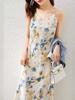 Vestido con escote en V y tirantes de color agua Splash Ink para mujer, novedad de verano 2024, falda recta holgada retro