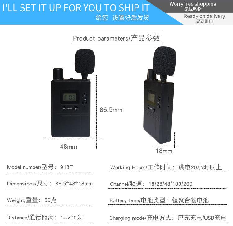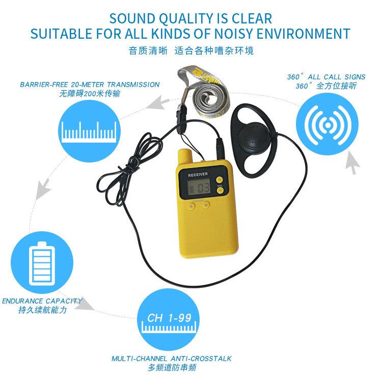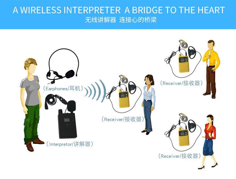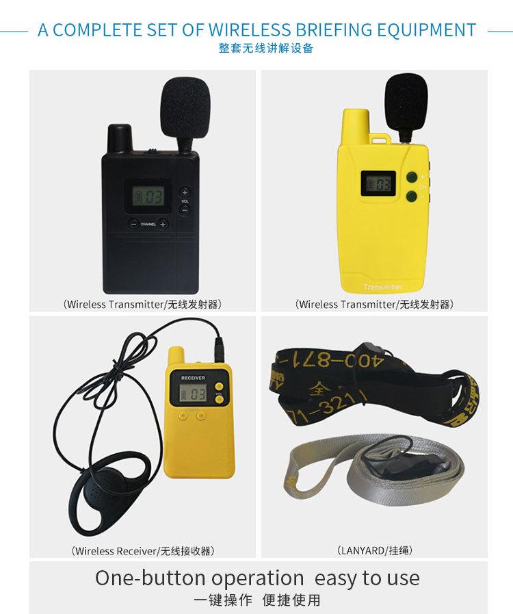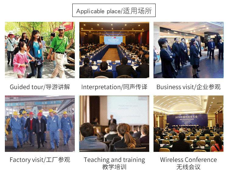 Sistema de interpretación simultánea de uno a muchos, conferencia gubernamental, visita a fábrica, recepción, capacitación, guía turístico, grupo, intérprete inalámbrico