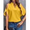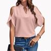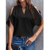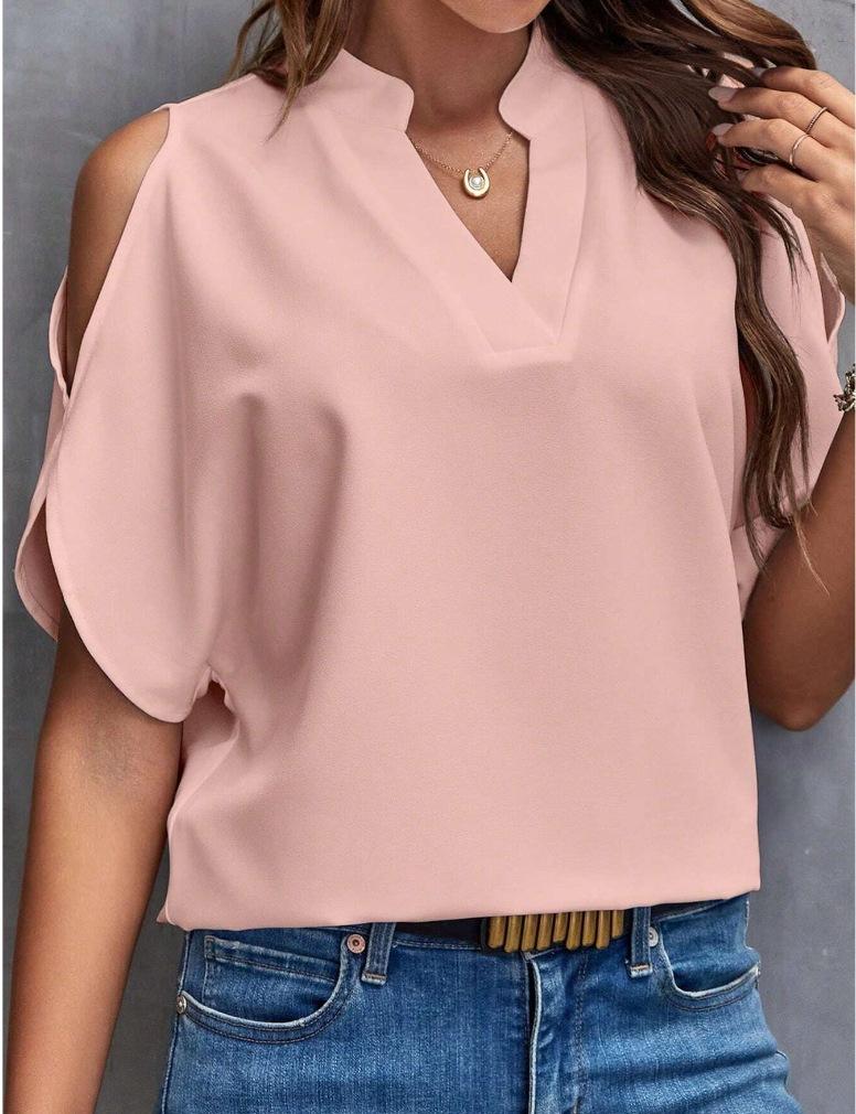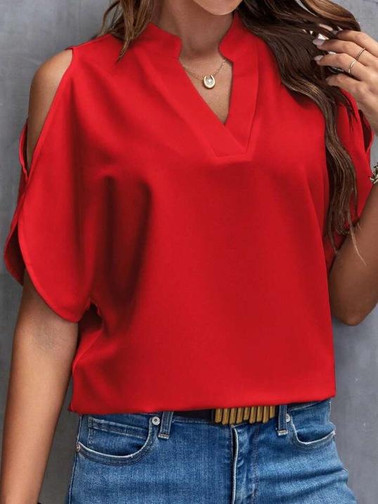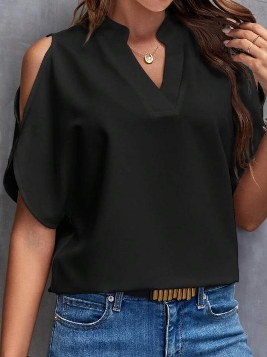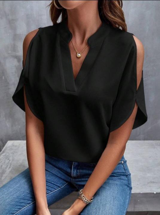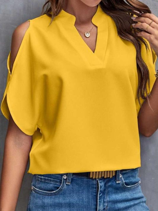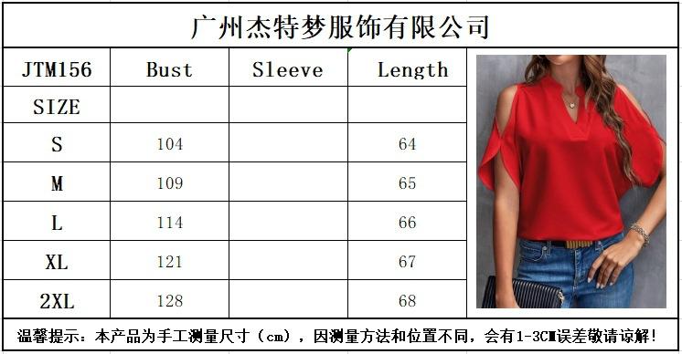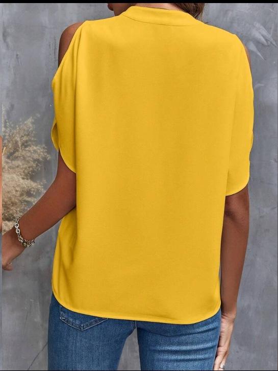 Camisa de gasa holgada con hombros descubiertos y cuello en V de color liso para mujer, novedad de verano 2024, comercio exterior transfronterizo de Amazon Europa y Estados Unidos