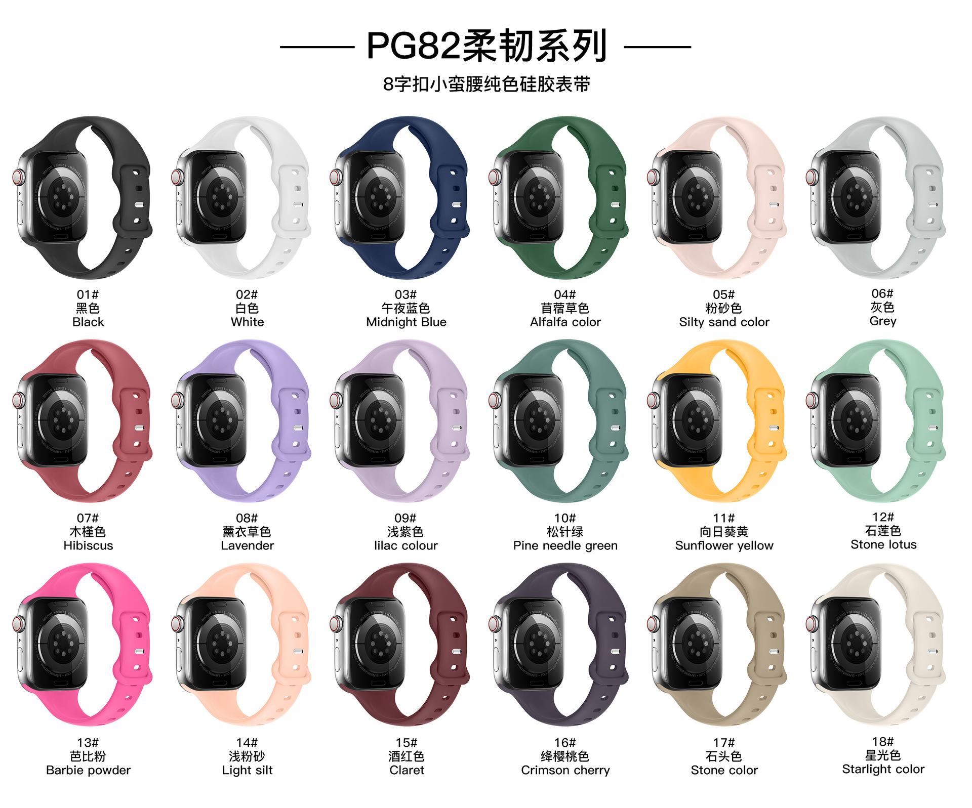Nombre del producto: PG82 Serie Flexible Hebilla en forma de 8 Cinturón de silicona de color sólido para cintura delgada