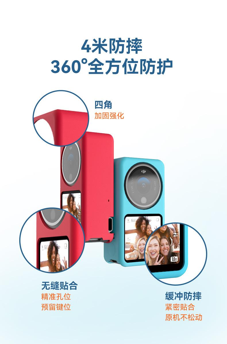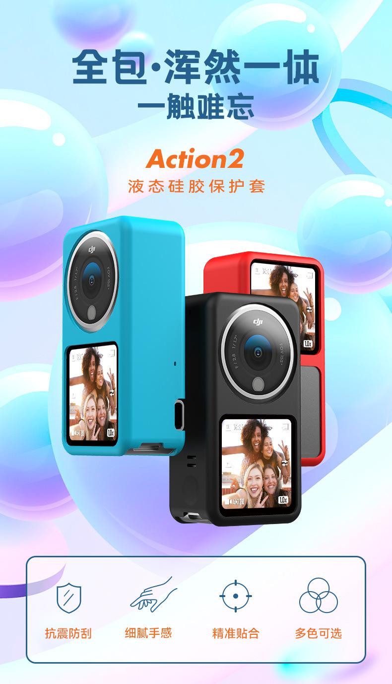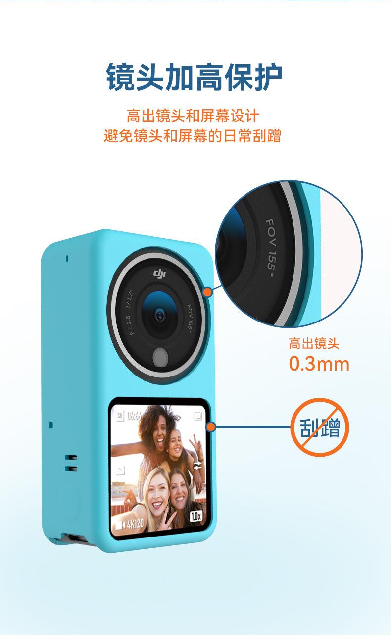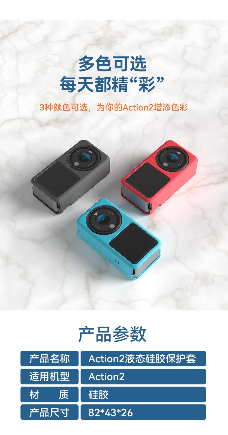5. La cubierta protectora de silicona es rápida y fácil de instalar, se ajusta a la cámara y está especialmente diseñada para DJI Action 2.