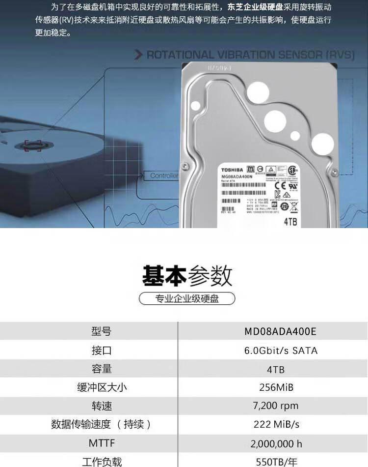 Toshiba 4tb 7200 to 256m sata vertical mechanical hard drive (md08ada400e)