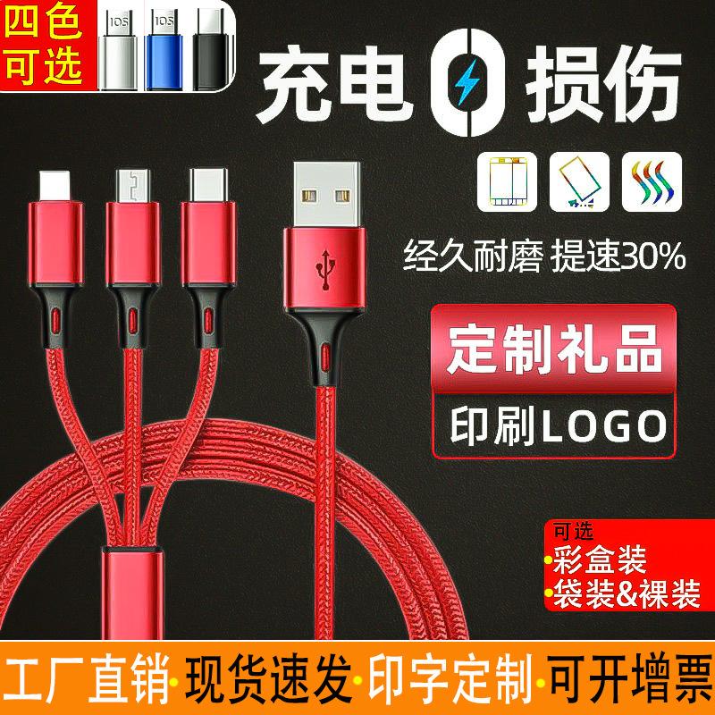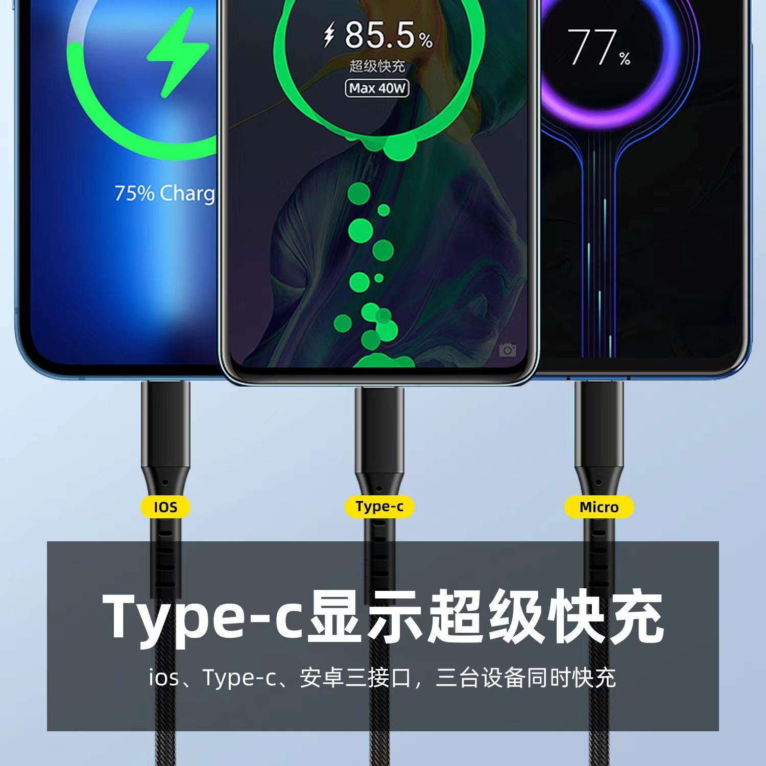 Cable de datos para teléfono móvil de uno a tres Cable de carga Adecuado para Android Huawei Tipo-C Apple Cable de datos Cable USB de carga rápida 3