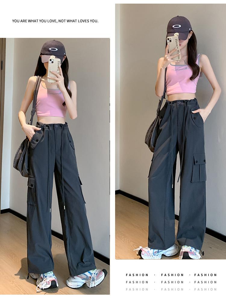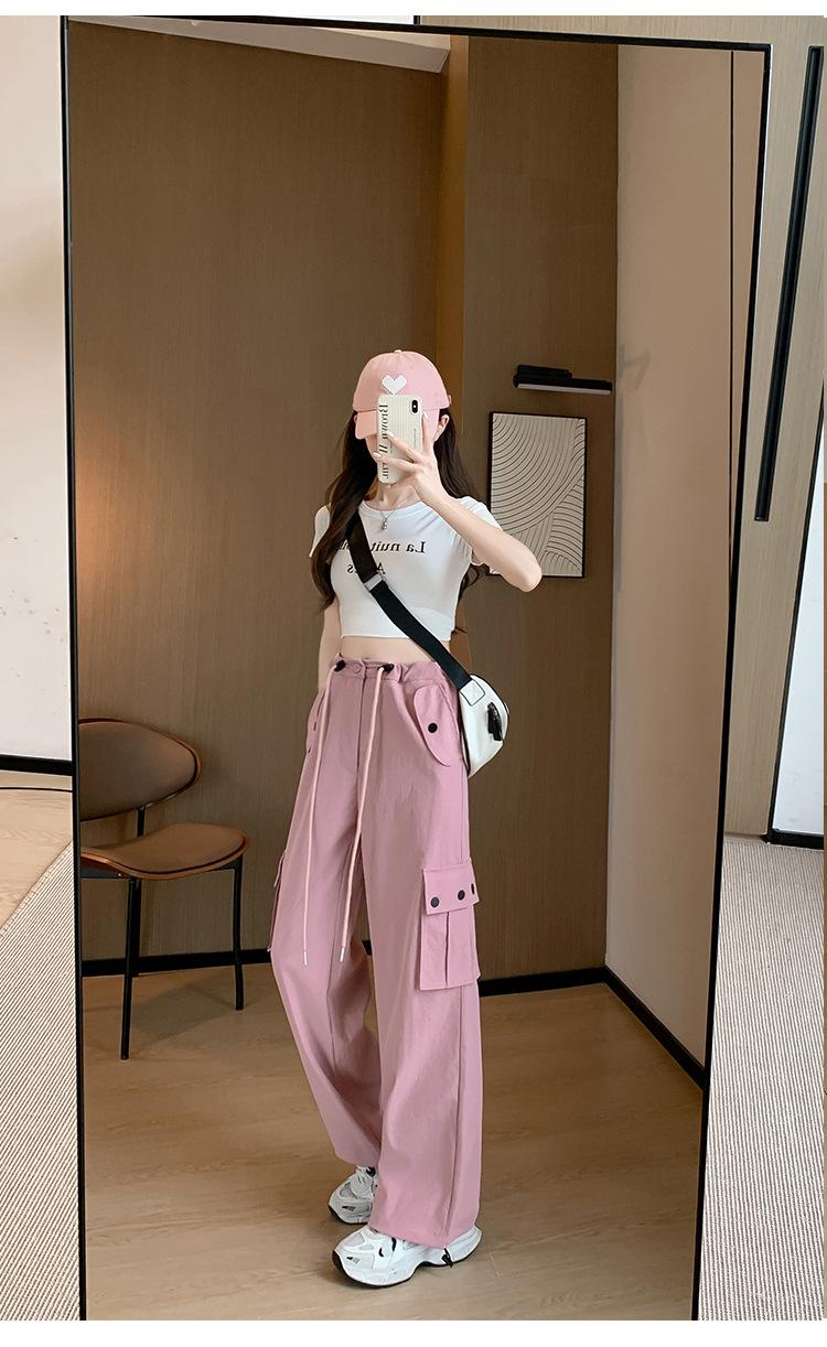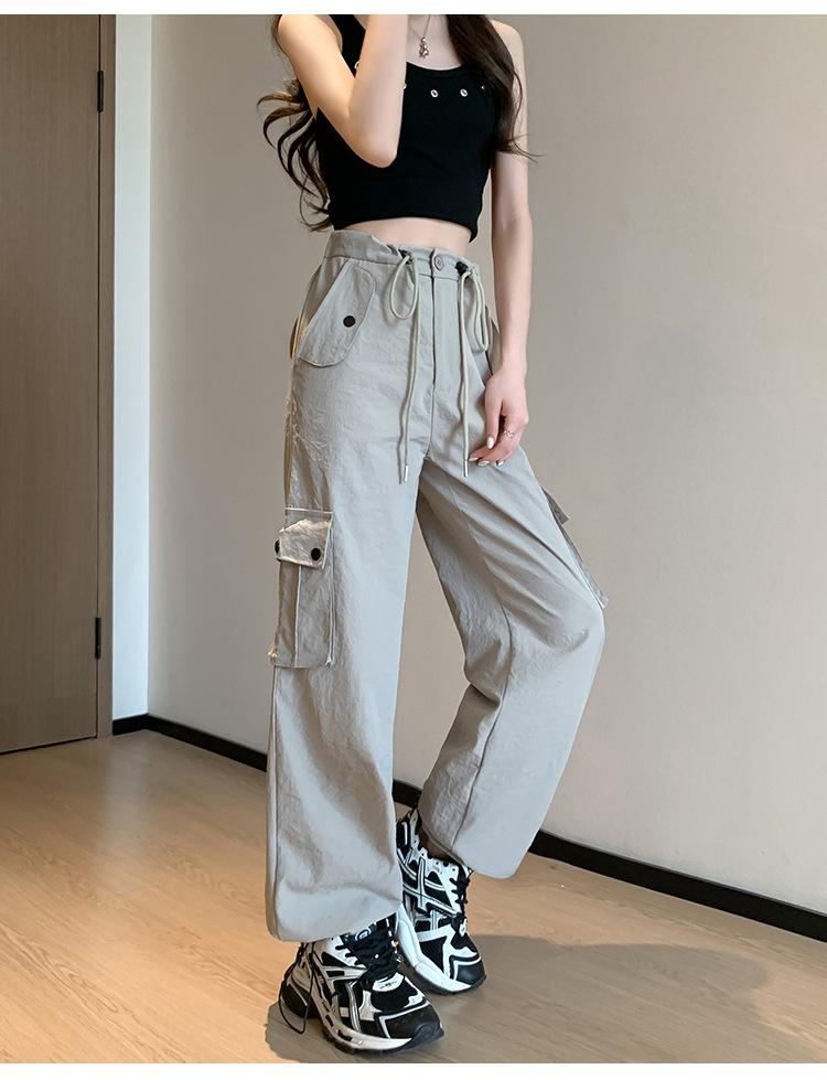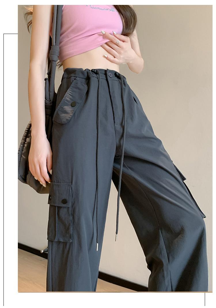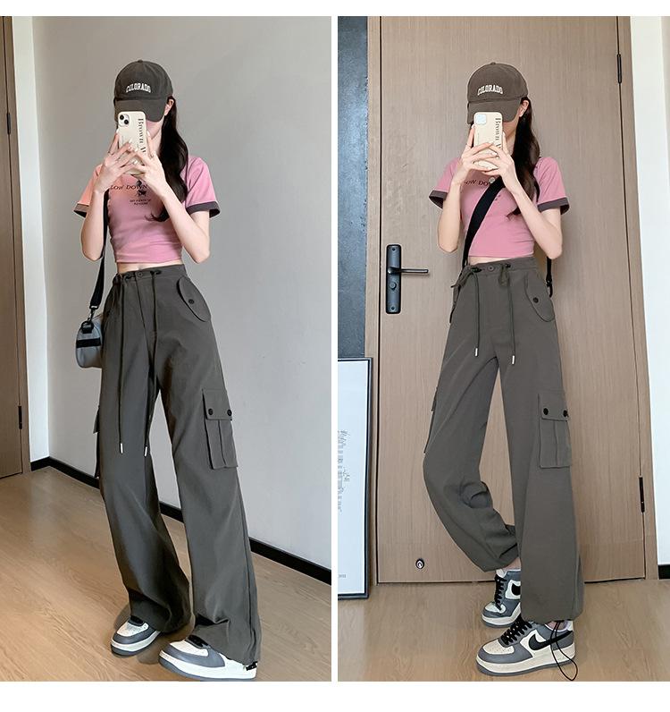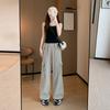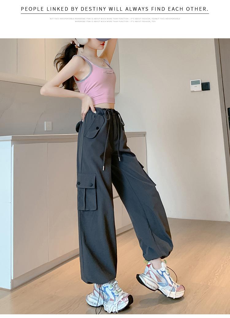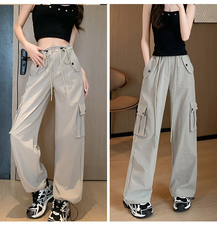 Pantalones de pierna ancha para mujer, estilo nuevo de verano, adelgazantes, estilo retro europeo y americano, deportivos, con cordón, cintura alta, informales