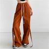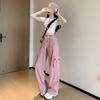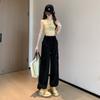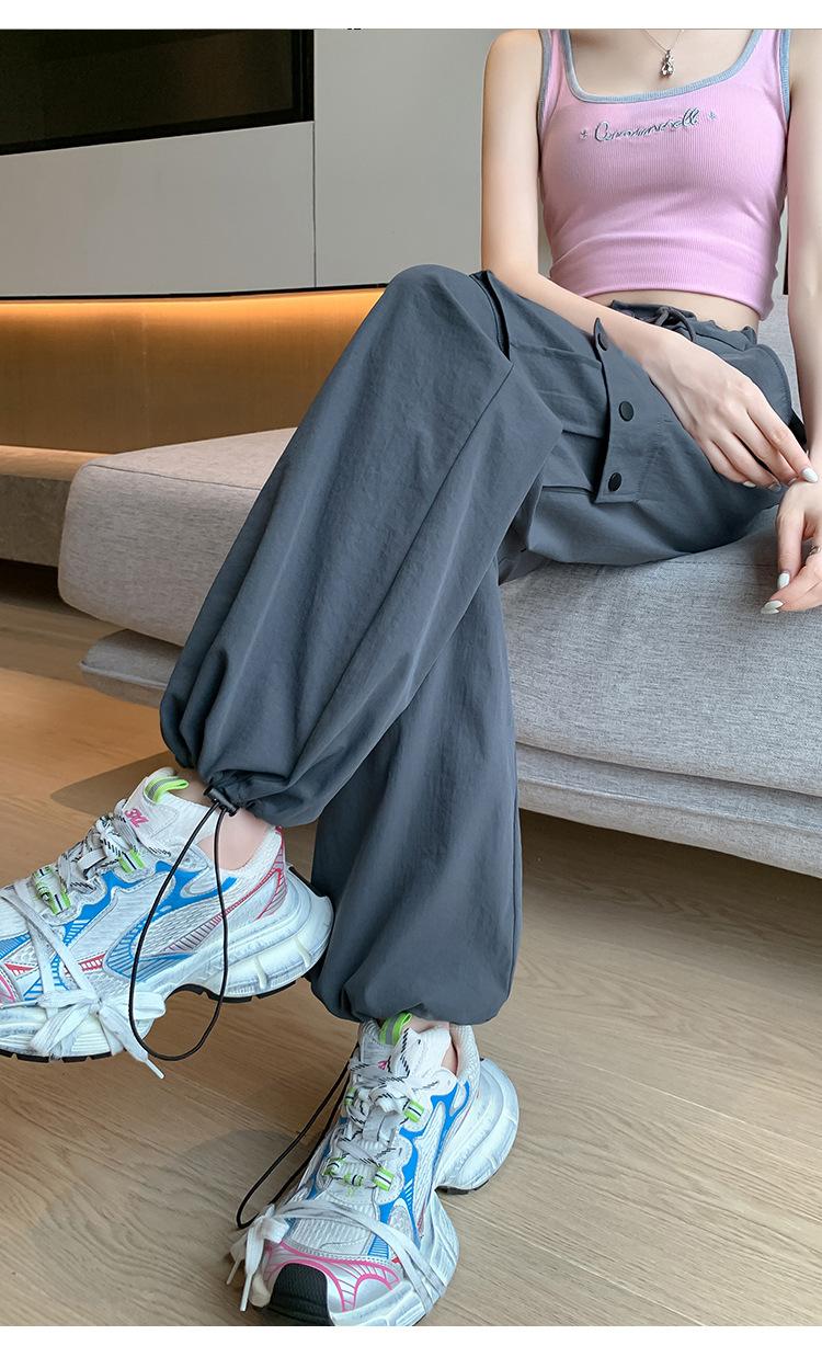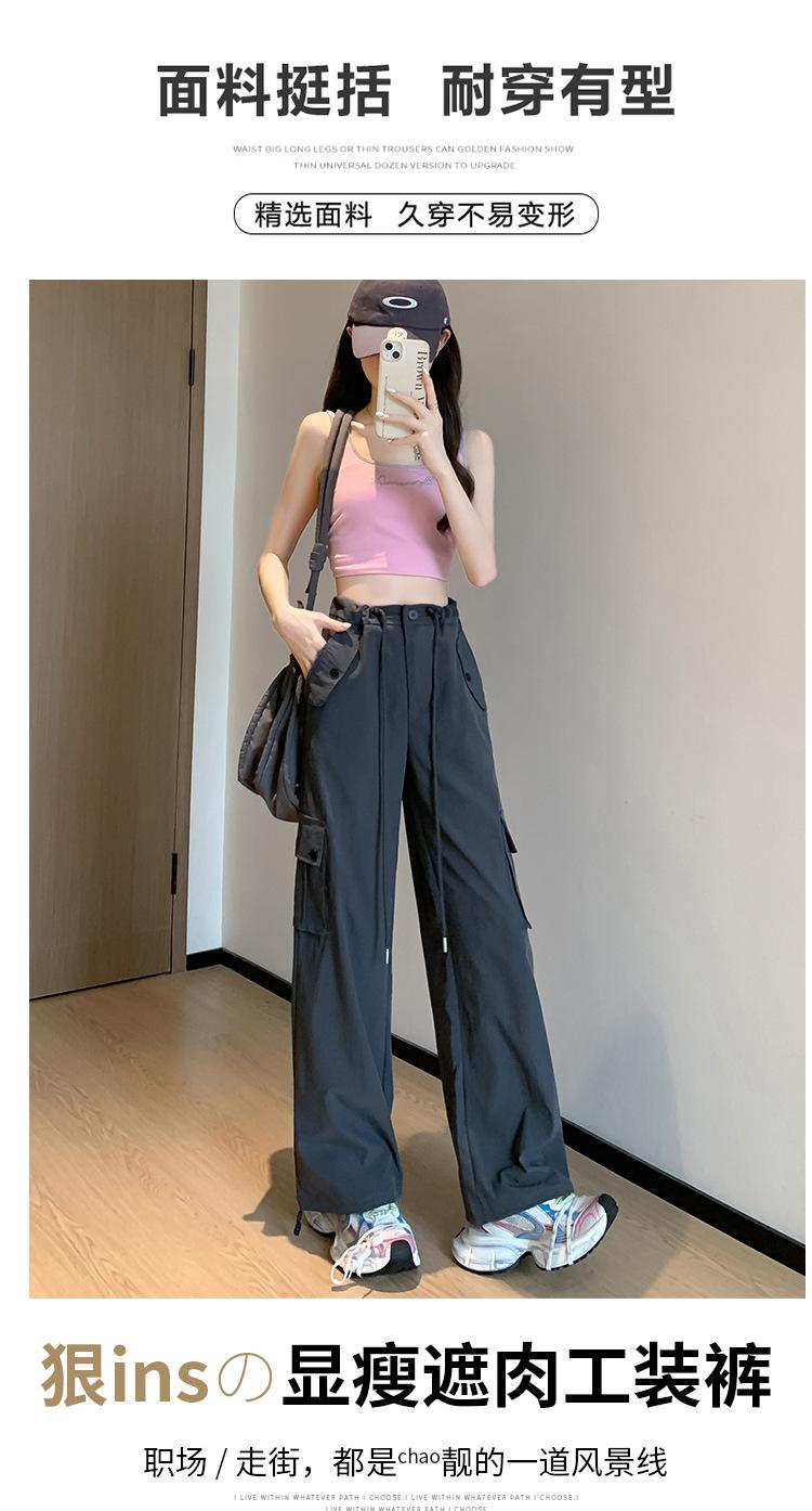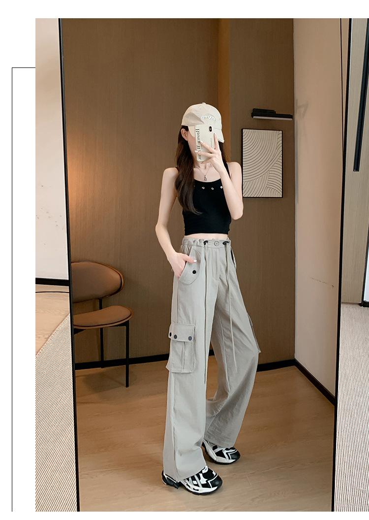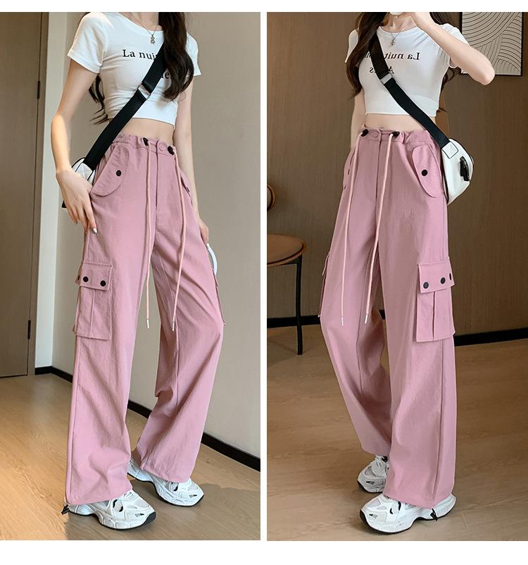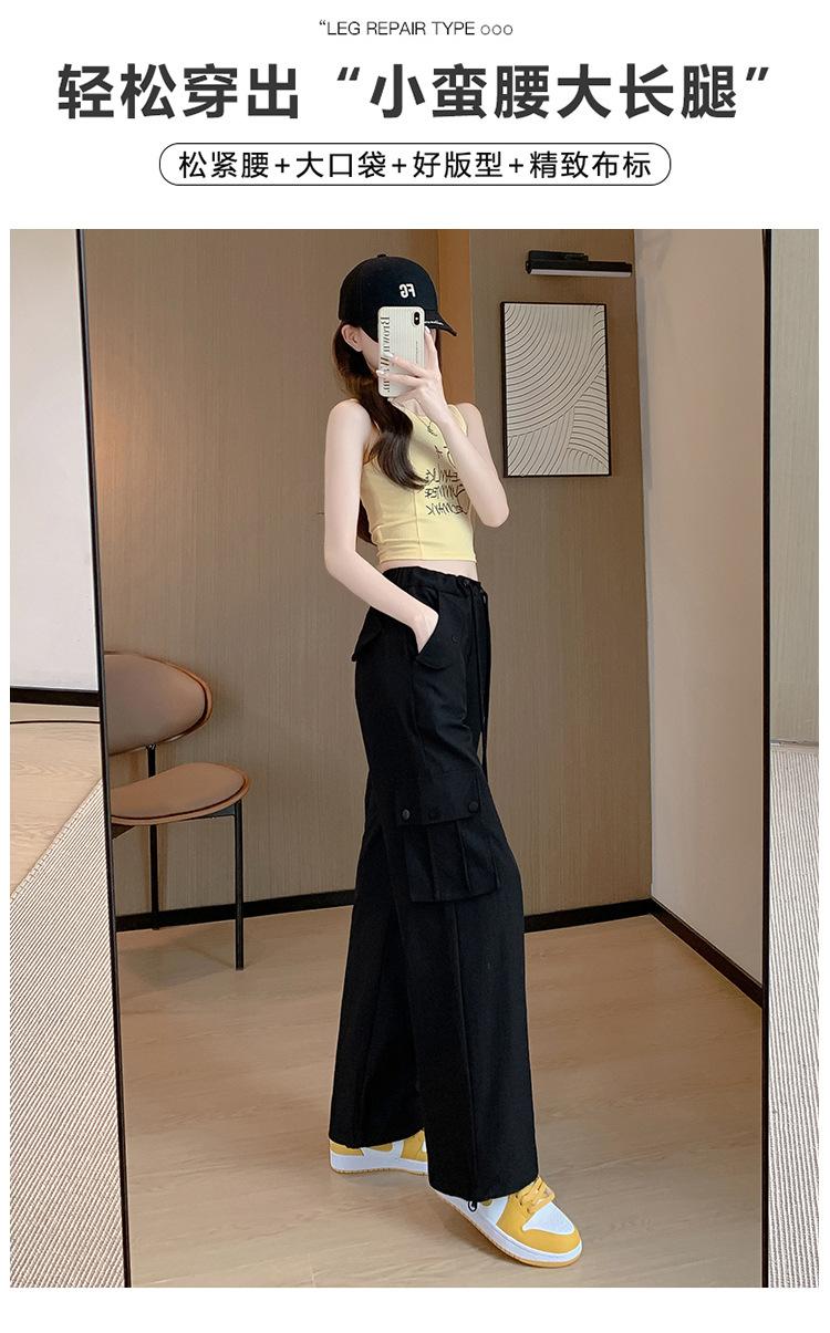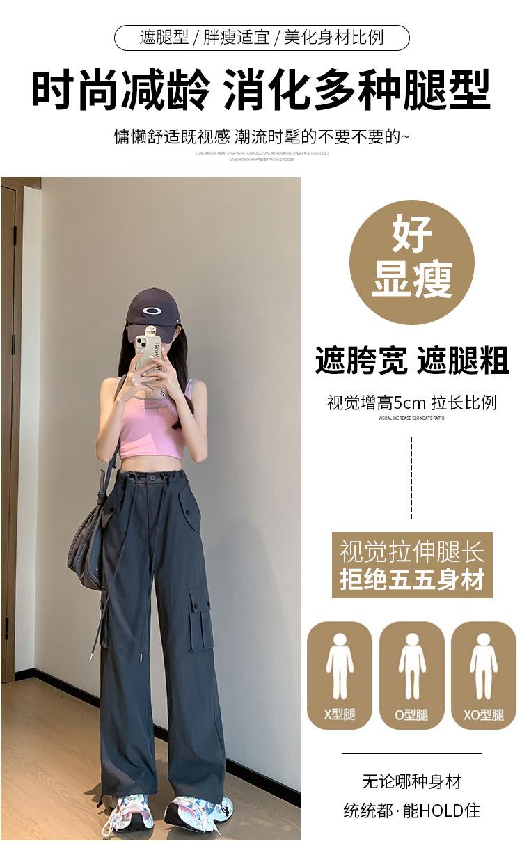 Pantalones de pierna ancha para mujer, estilo nuevo de verano, adelgazantes, estilo retro europeo y americano, deportivos, con cordón, cintura alta, informales