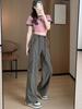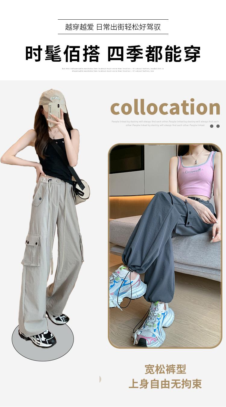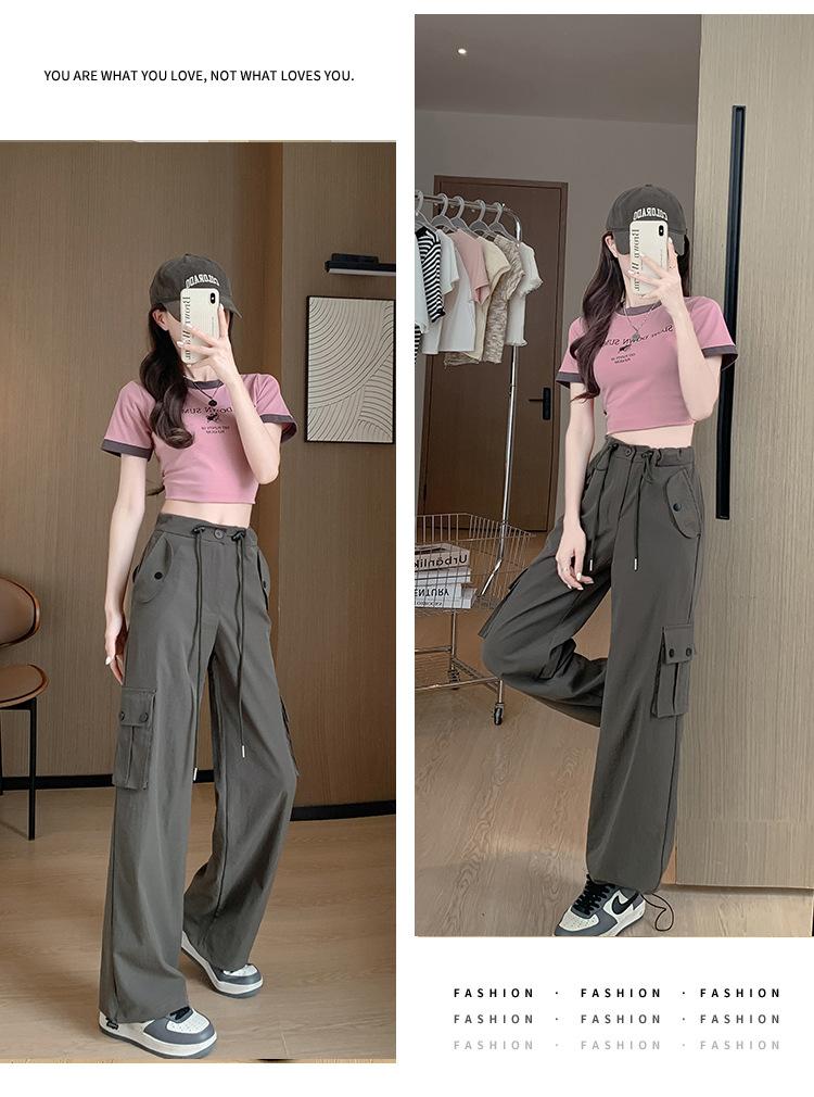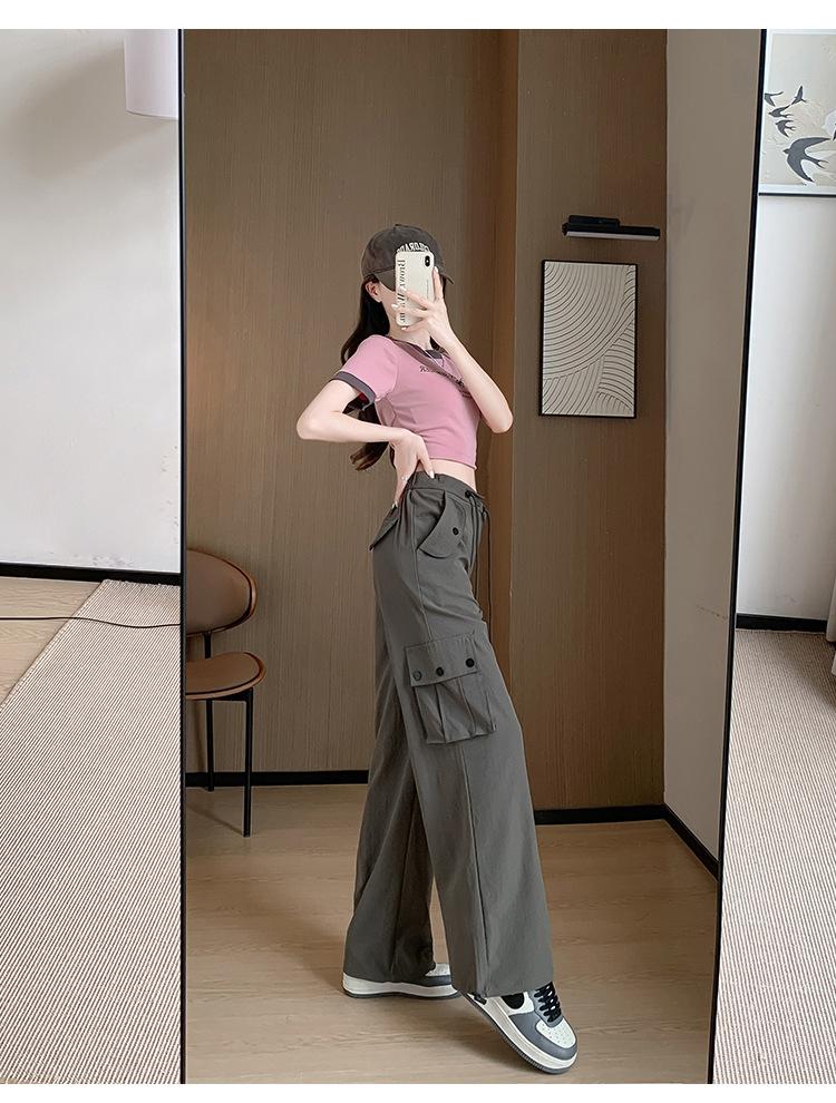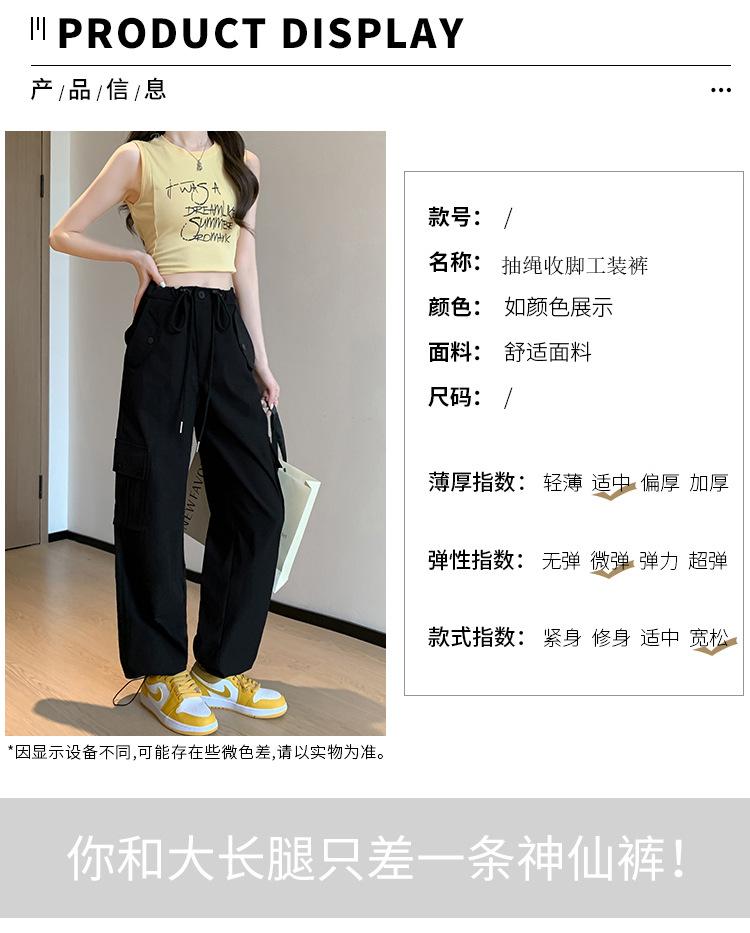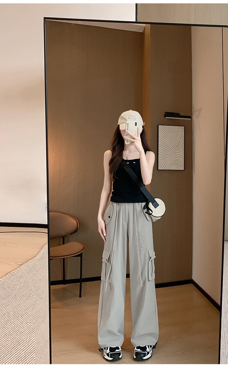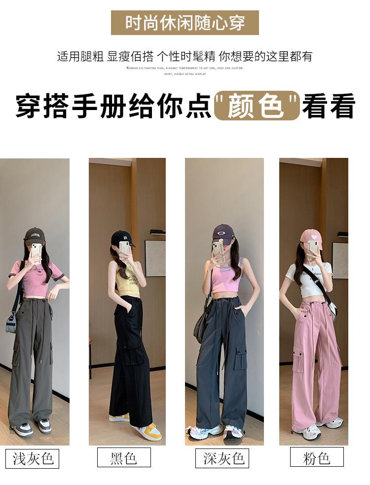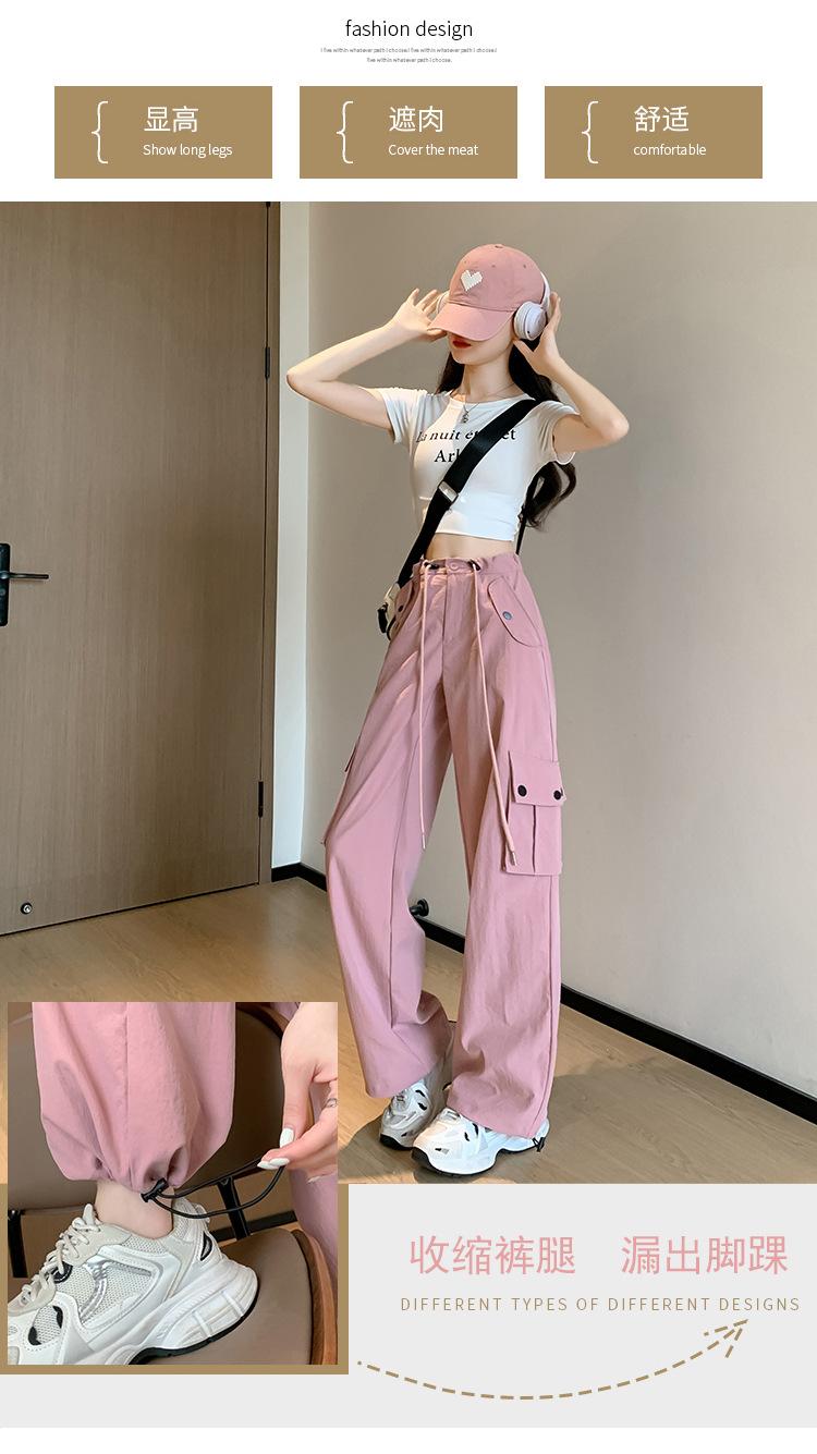 Pantalones de pierna ancha para mujer, estilo nuevo de verano, adelgazantes, estilo retro europeo y americano, deportivos, con cordón, cintura alta, informales