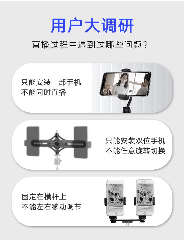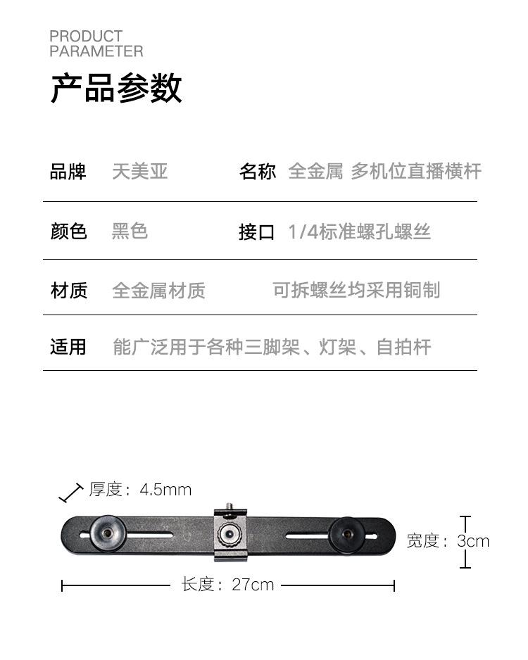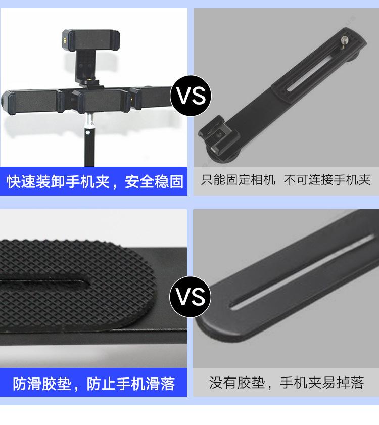 Soporte de transmisión en vivo multiposición de cuatro posiciones totalmente metálico, juego de clips para accesorios, barra transversal, estabilidad de dos posiciones