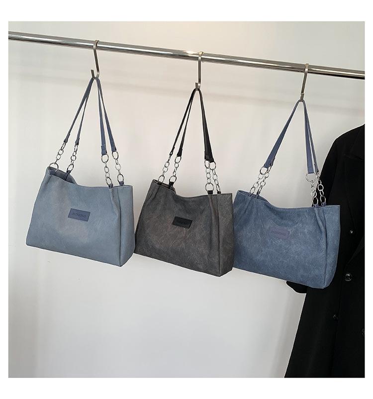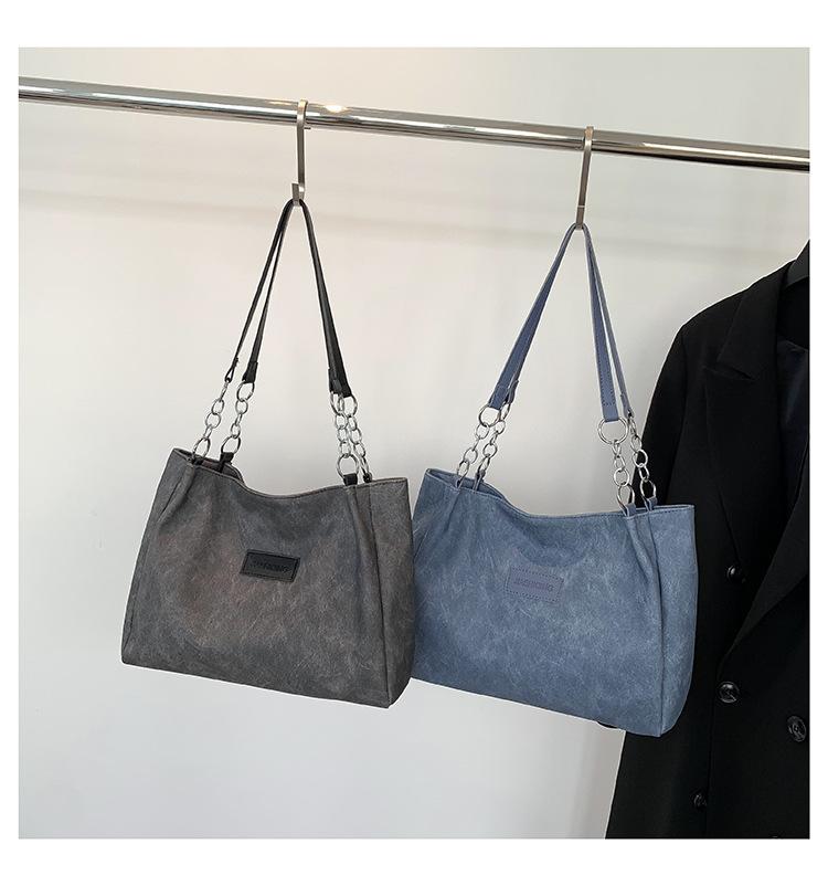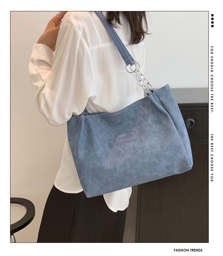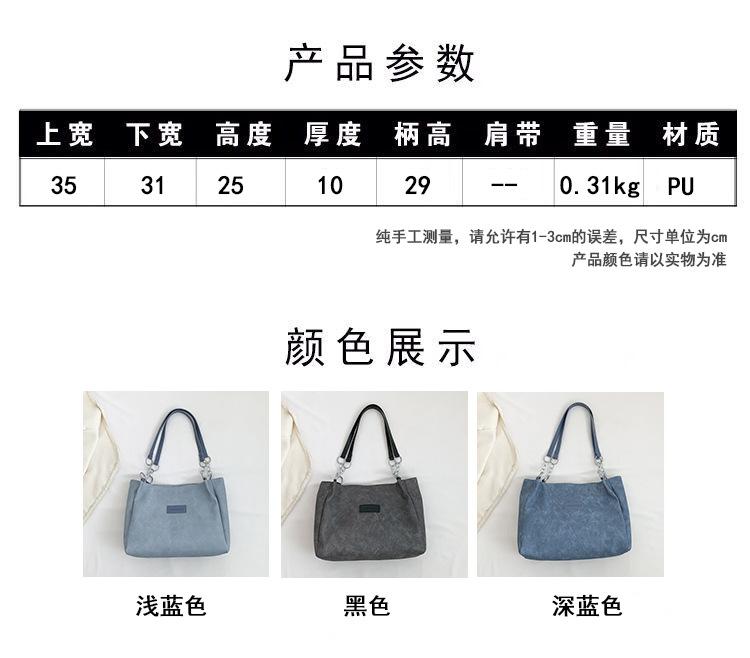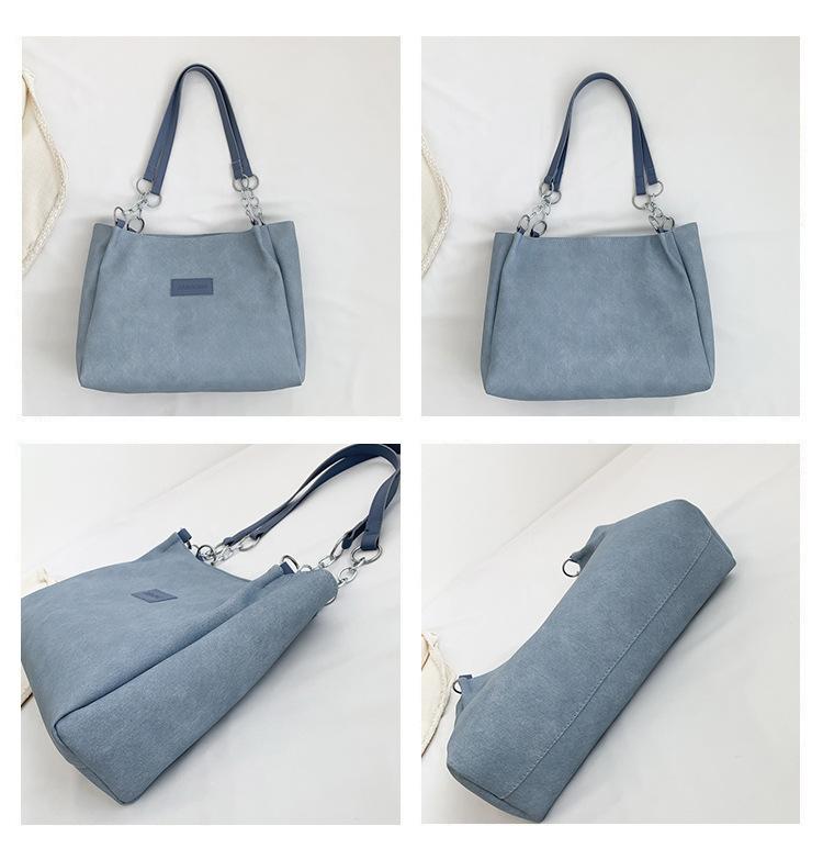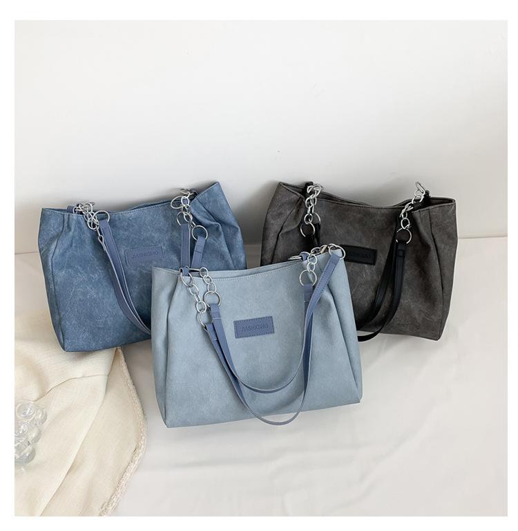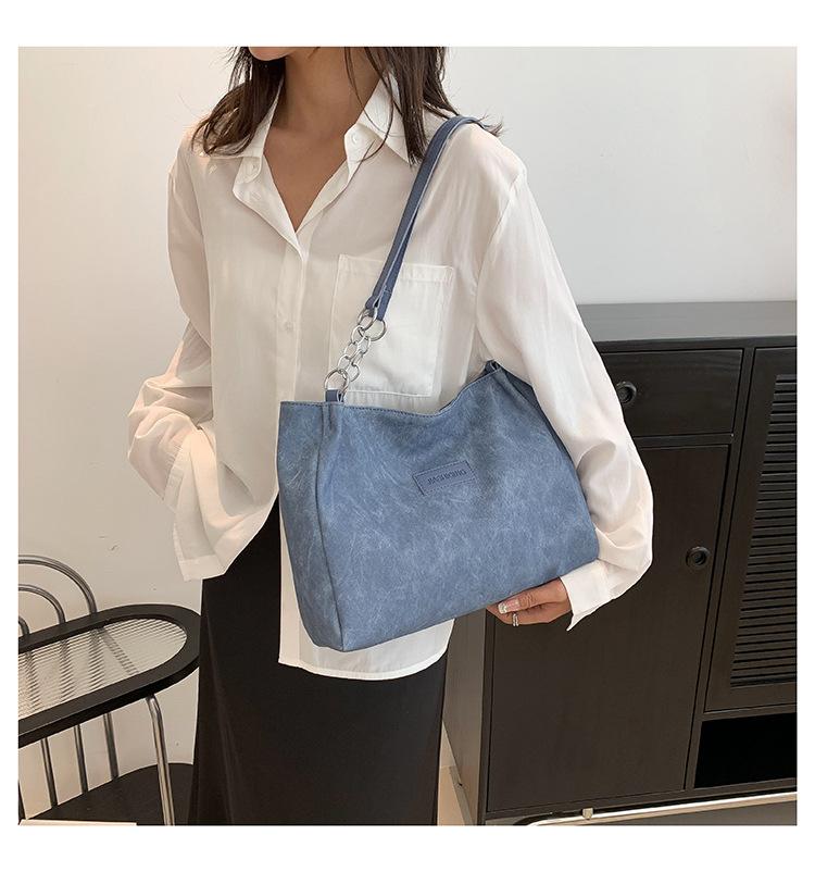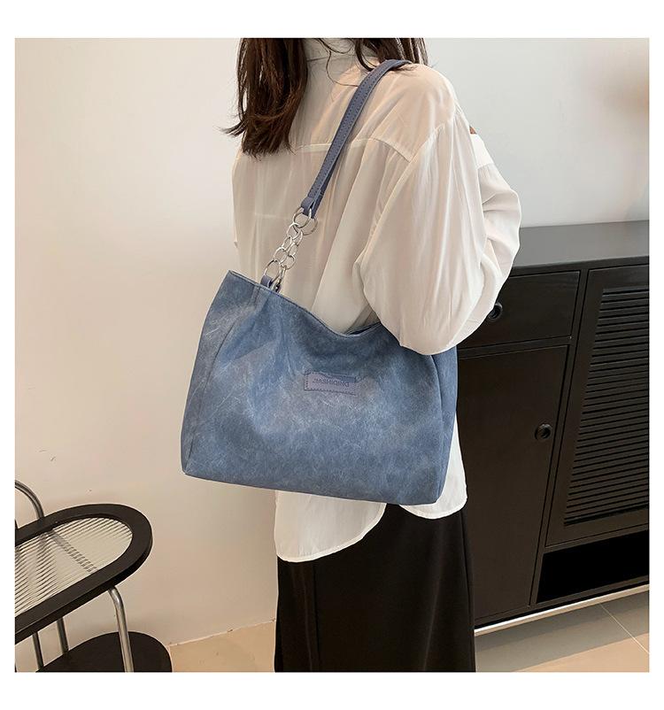 Bolso azul retro de gran capacidad para mujer, bolso tote con textura esmerilada, bolso de hombro tipo cubo, verano 2023