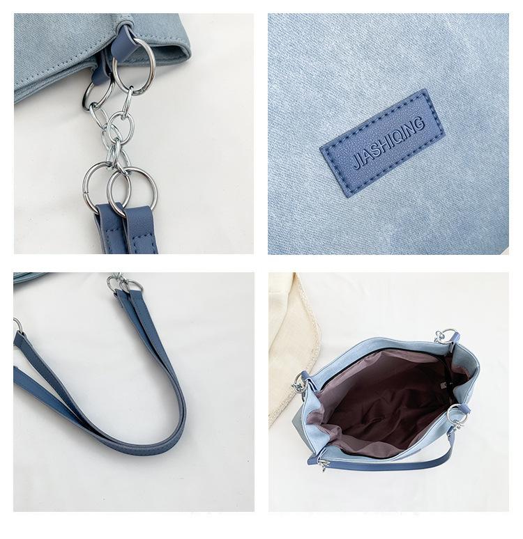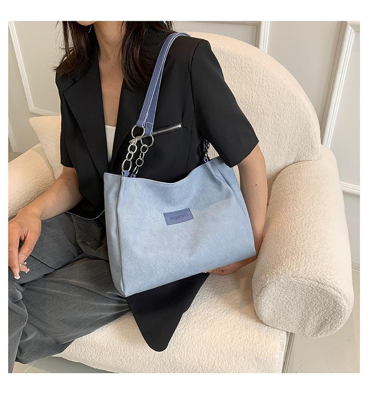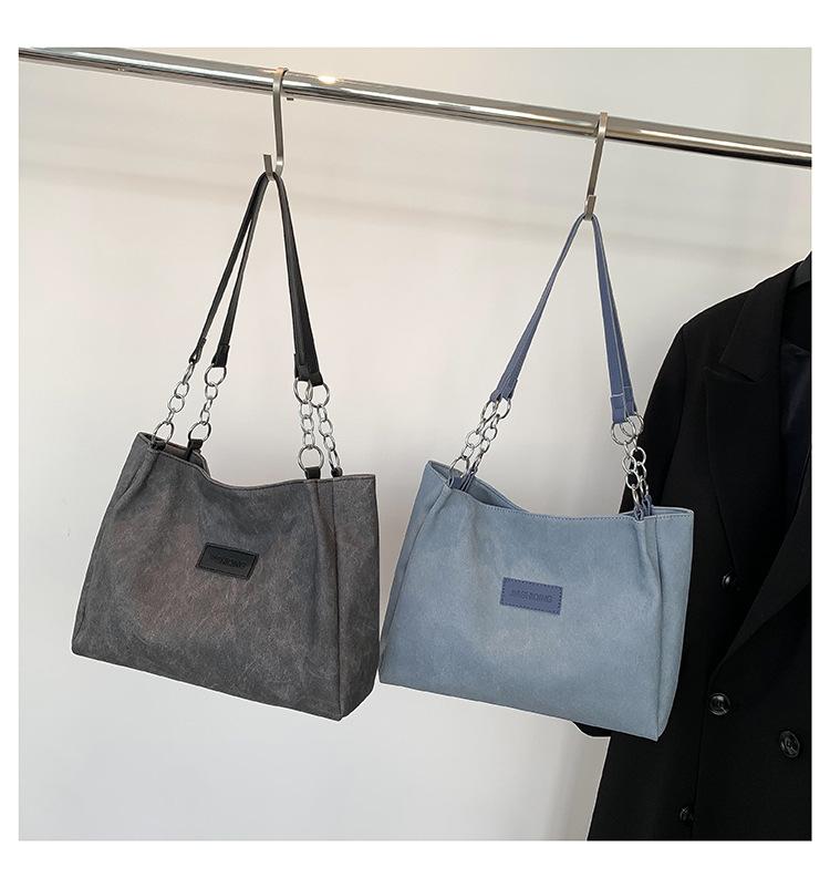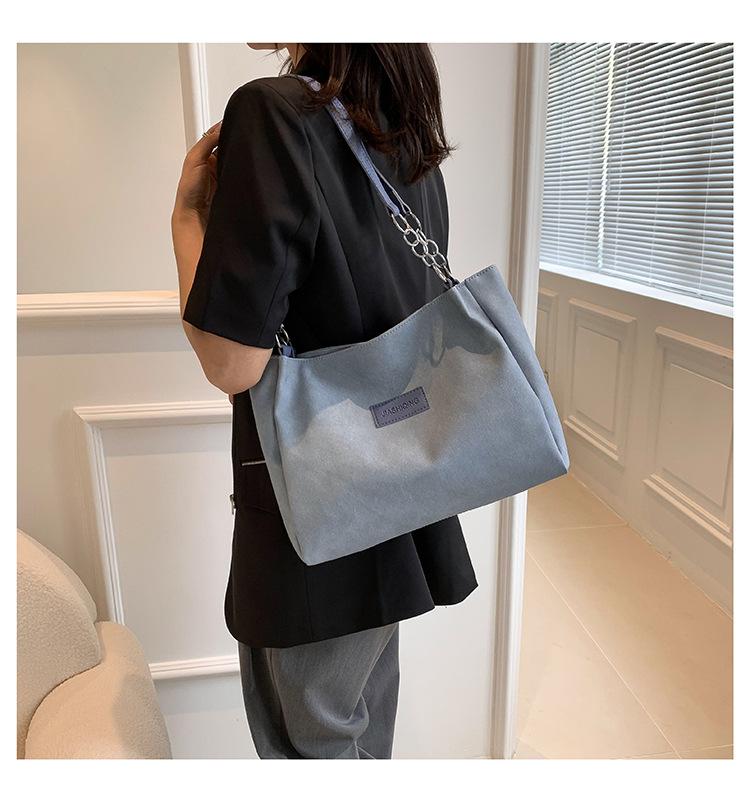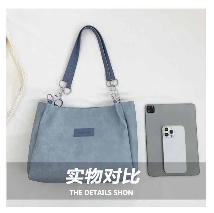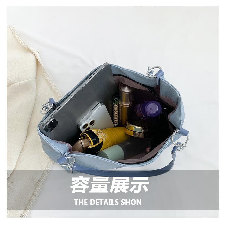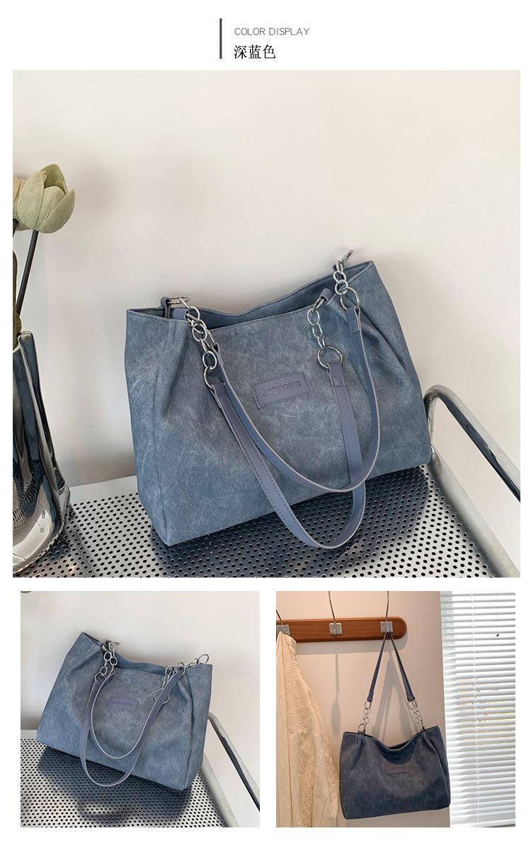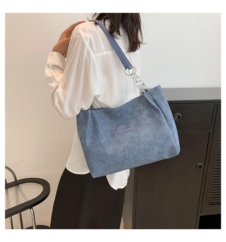 Bolso azul retro de gran capacidad para mujer, bolso tote con textura esmerilada, bolso de hombro tipo cubo, verano 2023