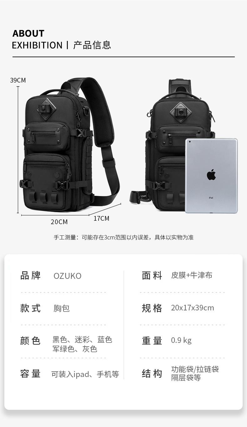 OZUKO (Jian Neng) es una marca de moda de Junye Luggage Group especializada en bolsos casuales para hombre y mujer. Fue fundada en 2003 por Nicky, un diseñador de bolsos nacional de renombre. Actualmente, hemos reclutado un sólido equipo de diseño compuesto por diseñadores nacionales e internacionales de alto nivel para centrarnos en productos de gran éxito internacional. OZUKO (Jianneng) encarna plenamente los estándares estéticos internacionales de Nicky, integra a la perfección la creatividad única y la exquisita artesanía, y se compromete a crear una marca que combine belleza y practicidad.OZUKO (Jianneng) ha registrado marcas en 65 países de todo el mundo y sus productos se exportan a más de 100 países y regiones. Cuenta con más de 150 patentes de productos y no tiene riesgo de infracción. Se pueden autorizar marcas globales, con especial atención a AliExpress, Amazon, eBay, Wish, Shopee, Lazada y tiendas independientes. Nuestra tienda ofrece un conjunto completo de paquetes de imágenes y videos de productos. Los clientes internacionales pueden contactar con el servicio de atención al cliente para obtener paquetes de datos en varios idiomas. Nuestra empresa cuenta con un área de almacenamiento de 3600 metros cuadrados y un inventario de más de 300 000 artículos.El suministro es suficiente y estable. Se lanzan al menos 5 o 6 modelos nuevos cada mes y no hay existencias disponibles para ventas de prueba. Garantizamos la devolución o el cambio ante cualquier problema de calidad. ¡Nuestro servicio integral le garantiza la tranquilidad!