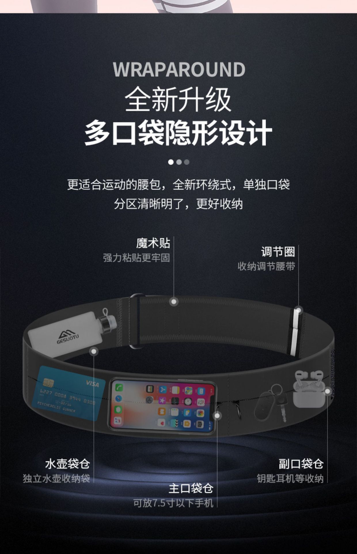 Bolsa para Teléfono para Correr, Riñonera para Mujer con Velcro, Cinturón Deportivo Multifuncional para Fitness, Maratón, Equipo Deportivo, Bolsa Pequeña Impermeable