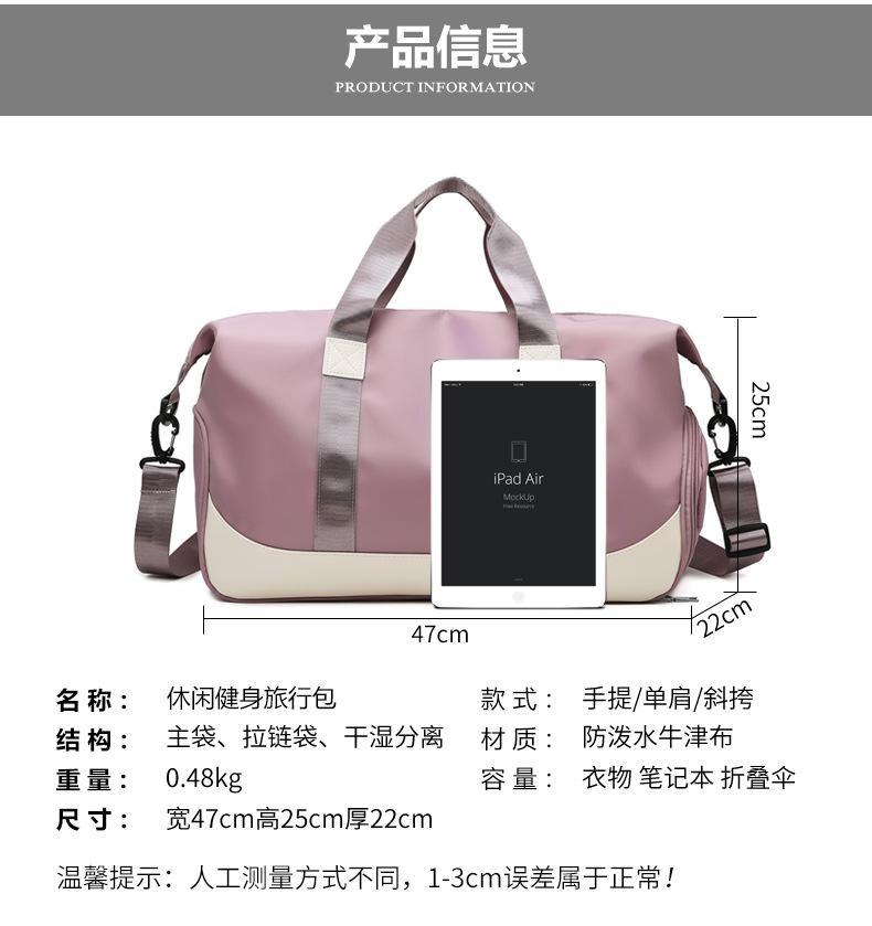 Bolsa de Fitness de gran capacidad con separación húmeda y seca, bolsa deportiva para yoga, natación, viajes de negocios, almacenamiento de equipaje pendiente, bolsa de viaje para corta distancia