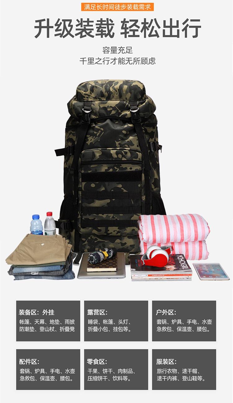 Mochila táctica de 70 litros para deportes al aire libre, montañismo, senderismo, camping, para hombre y mujer.