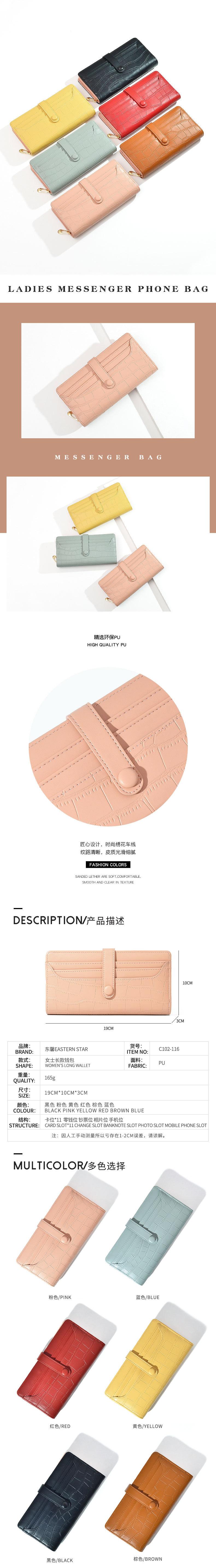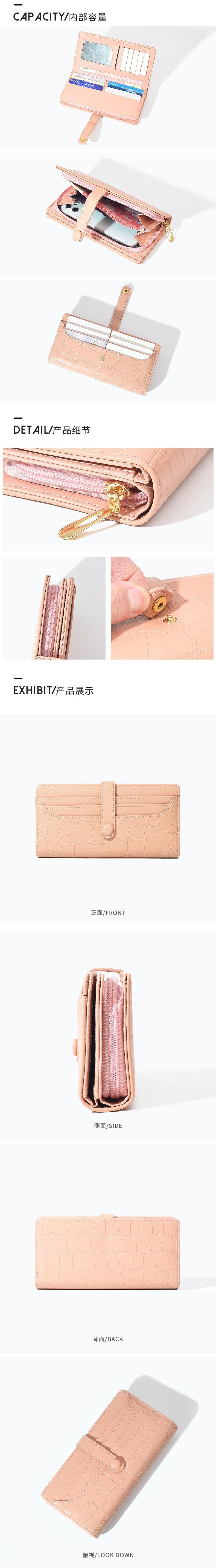 Cartera de estilo coreano para mujer, nueva, con hebilla larga, cremallera, tarjetero, gran capacidad, bolso de mano para estudiante con estampado de piedras