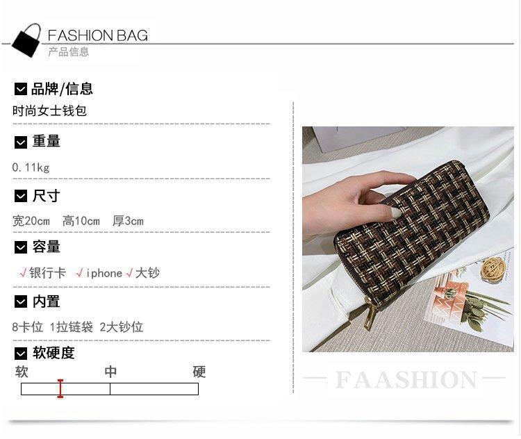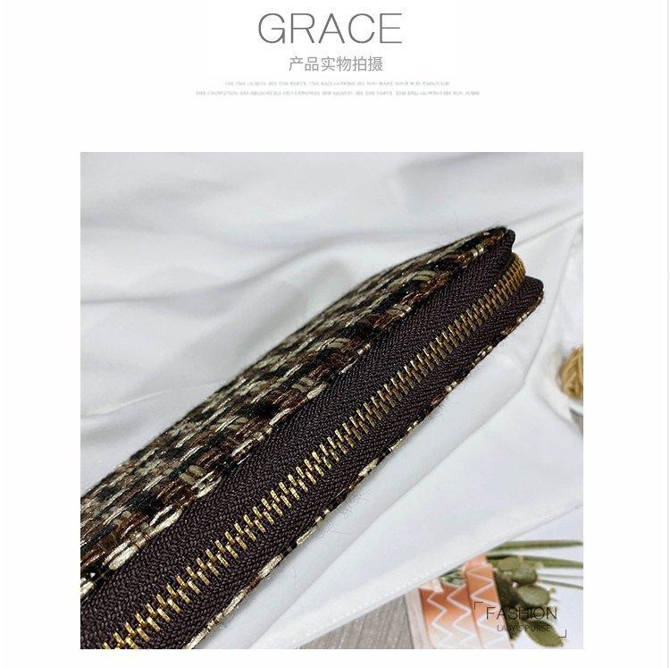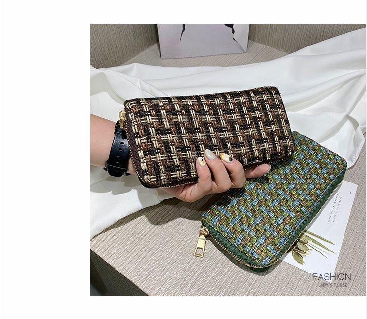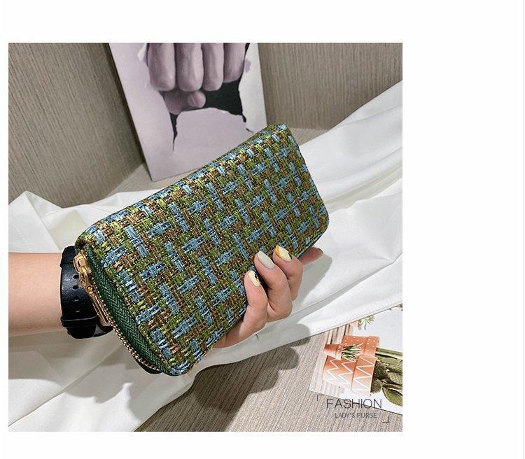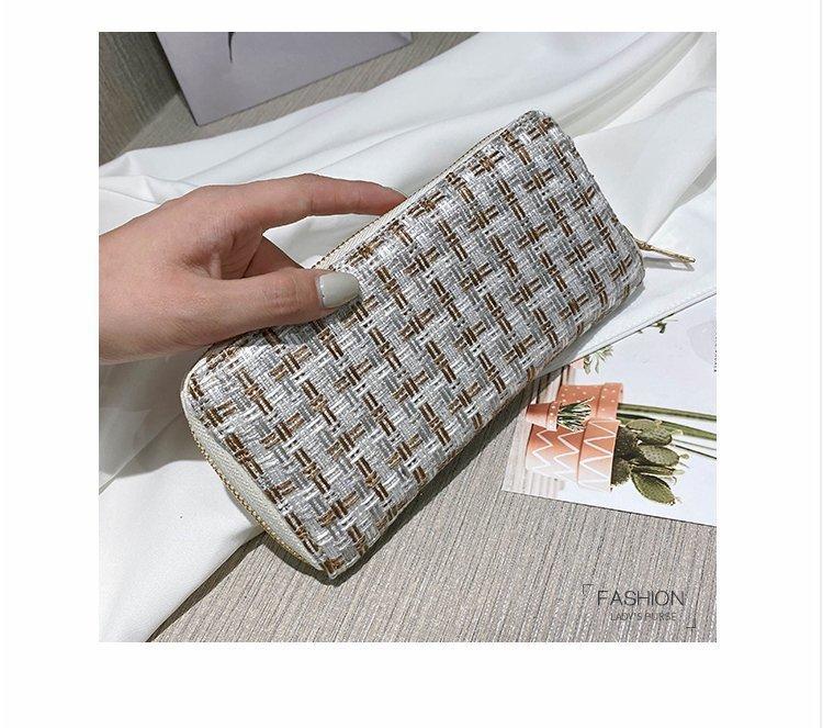 Cartera trenzada para mujer, cartera larga con cremallera, estilo europeo y americano, cartera de algodón y lino de comercio exterior, versión coreana 2020 nueva