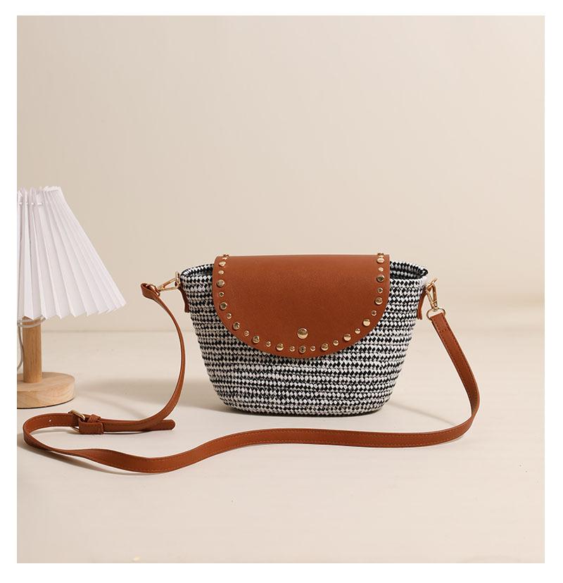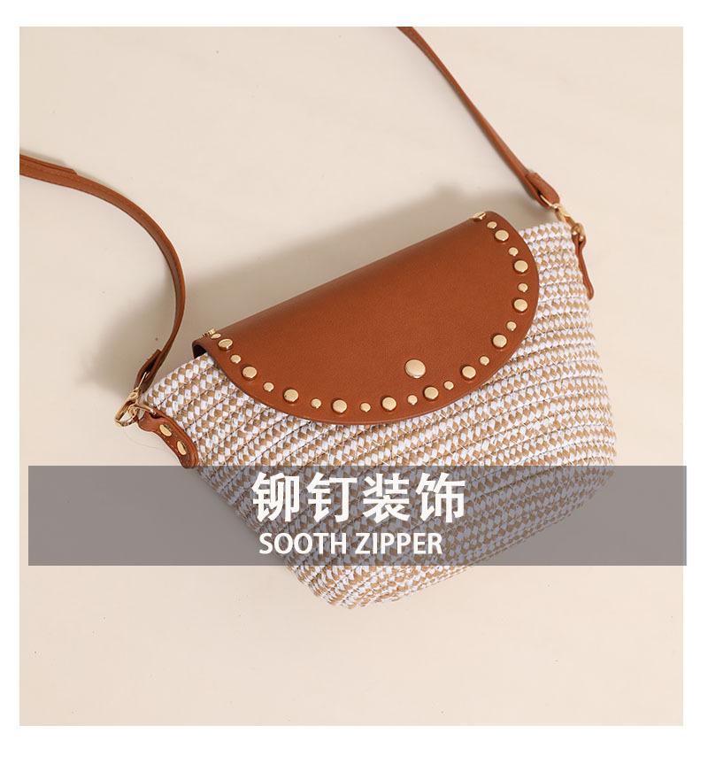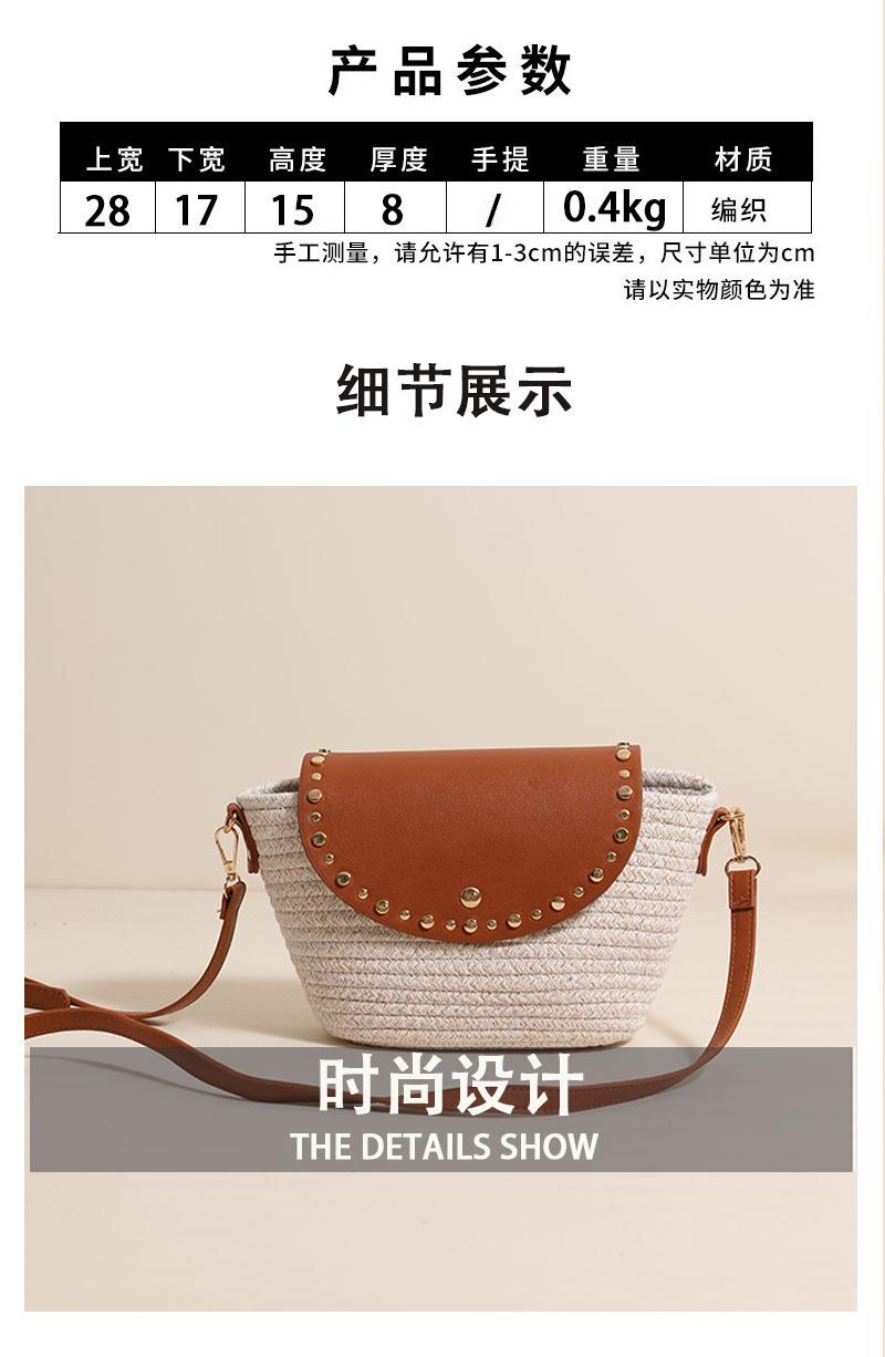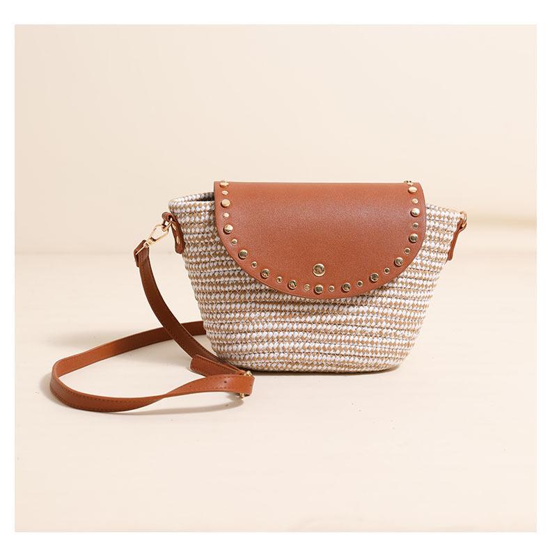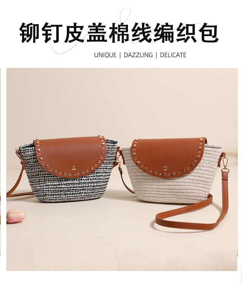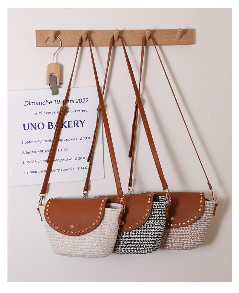 Compra Bolso bandolera con remaches de moda, nuevo bolso de hombro tejido de paja con costuras de PU, bolso de playa para mujer, bolso tejido de algodón al por mayor en Joom.pro