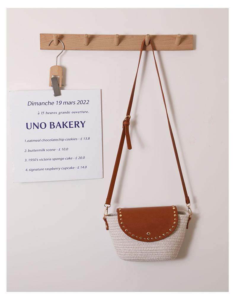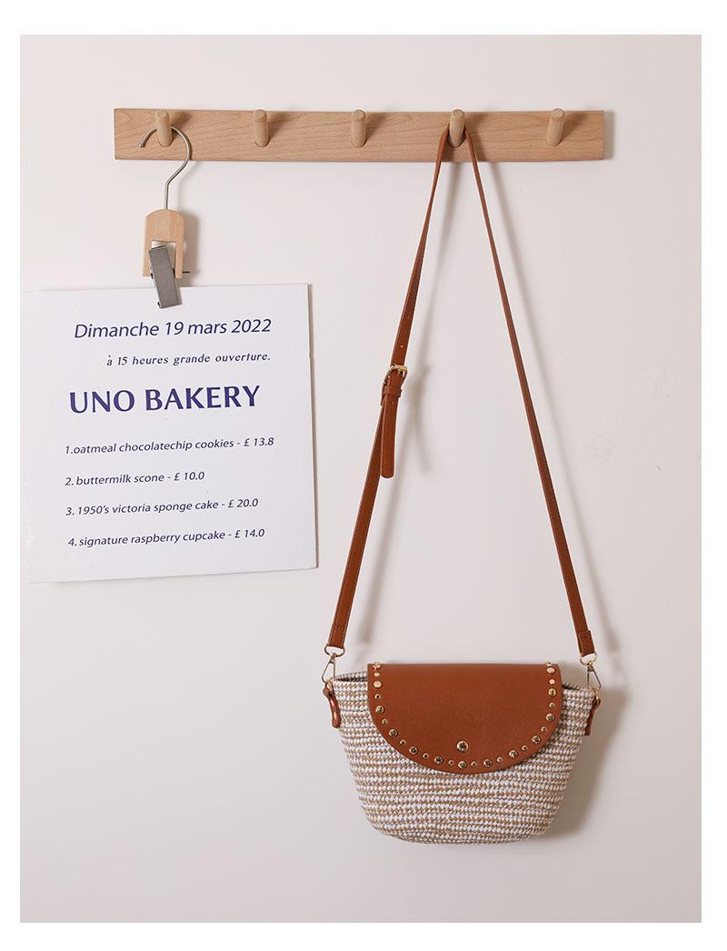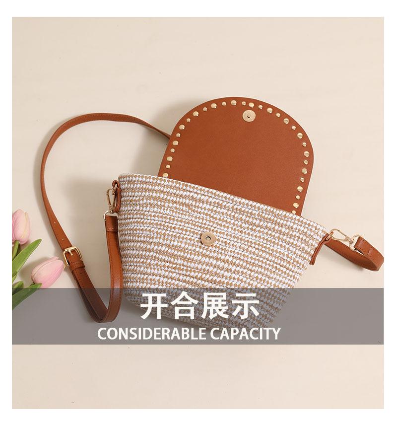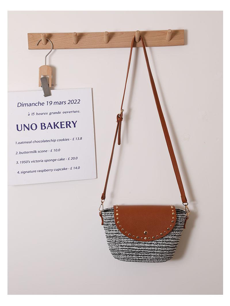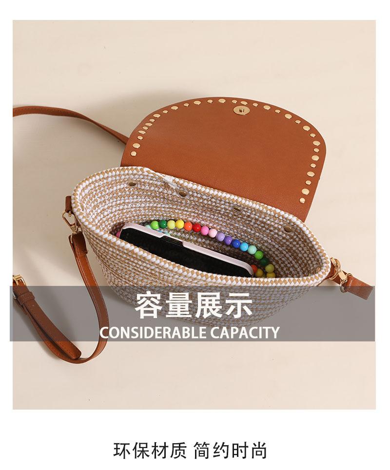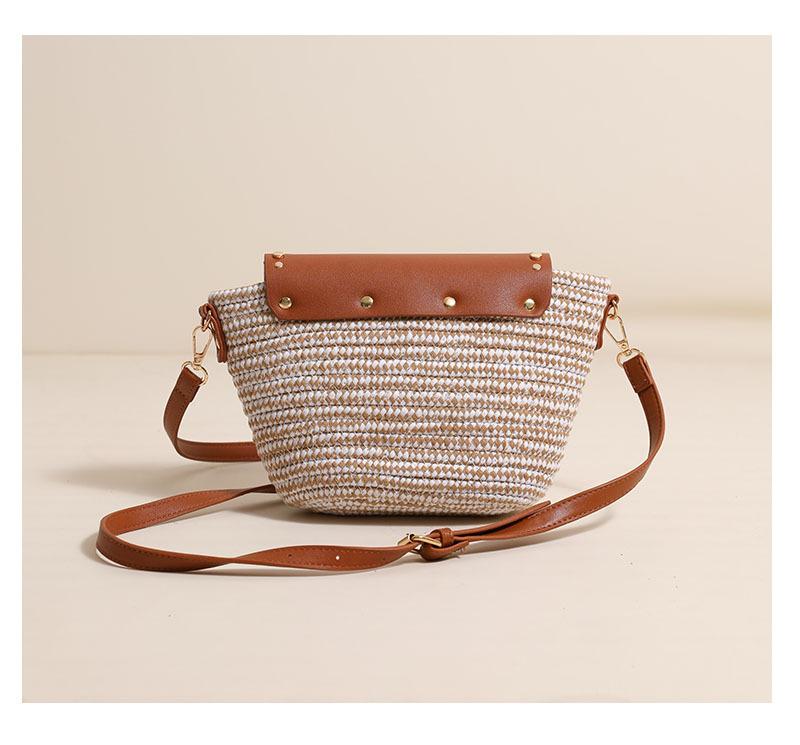 Compra Bolso bandolera con remaches de moda, nuevo bolso de hombro tejido de paja con costuras de PU, bolso de playa para mujer, bolso tejido de algodón al por mayor en Joom.pro
