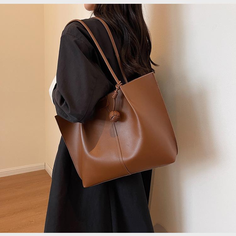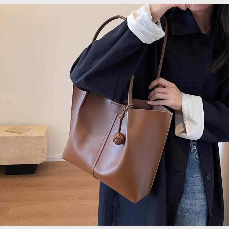 Bolso grande de estilo coreano popular de este año para mujer, nuevo bolso de hombro tipo cubo de alta gama retro combinable para otoño e invierno 2024