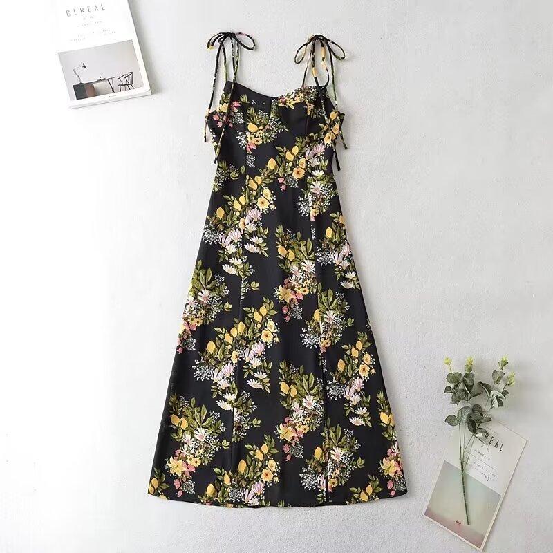 Vestido con abertura y cordones, estampado ligero y maduro, estilo transfronterizo europeo y americano, primavera 2024, w091 1891
