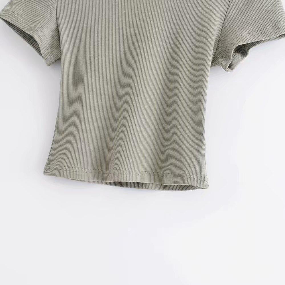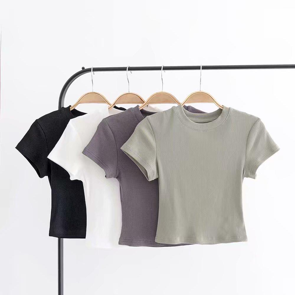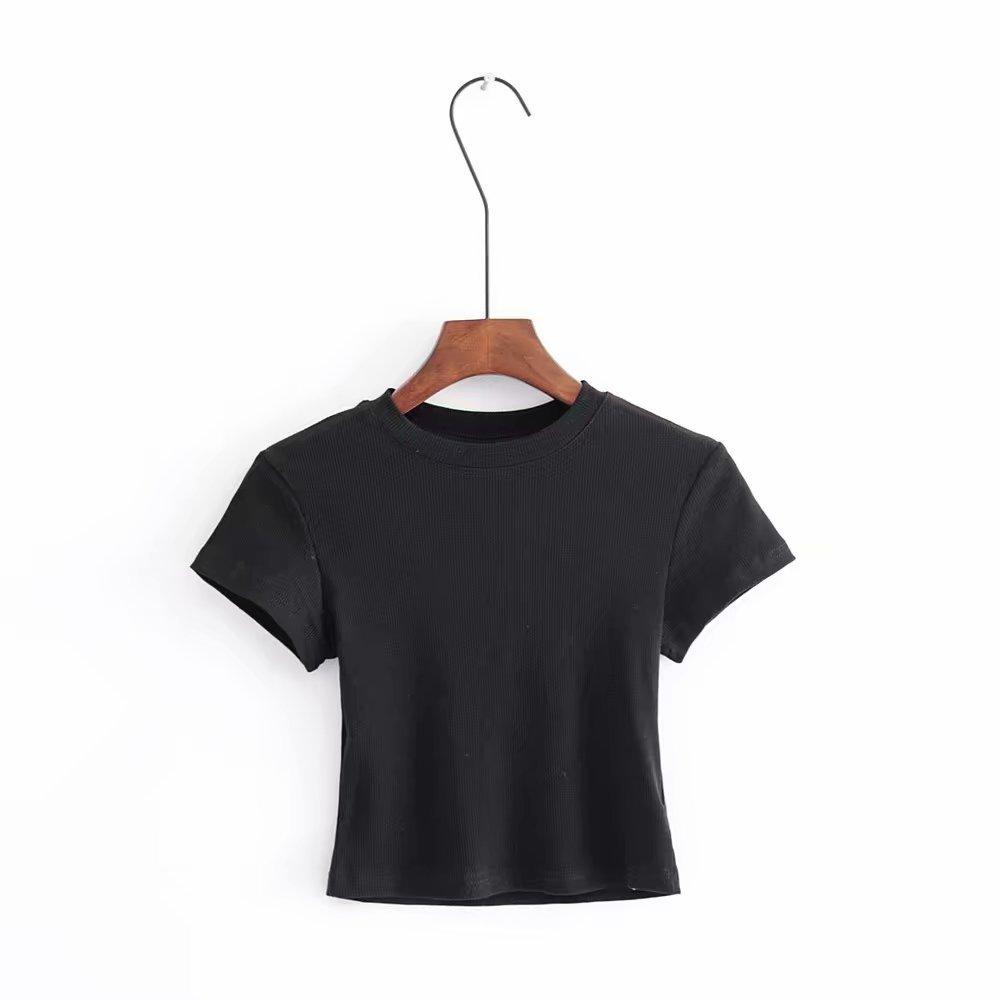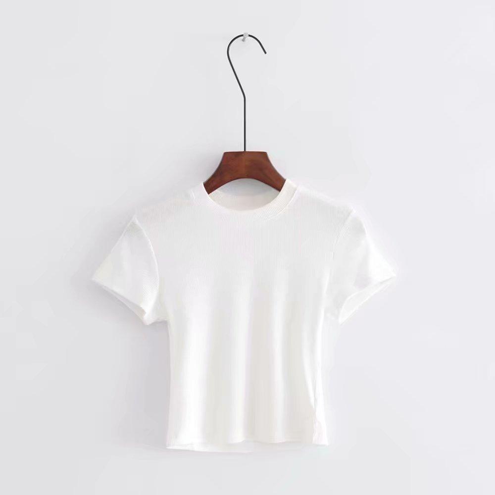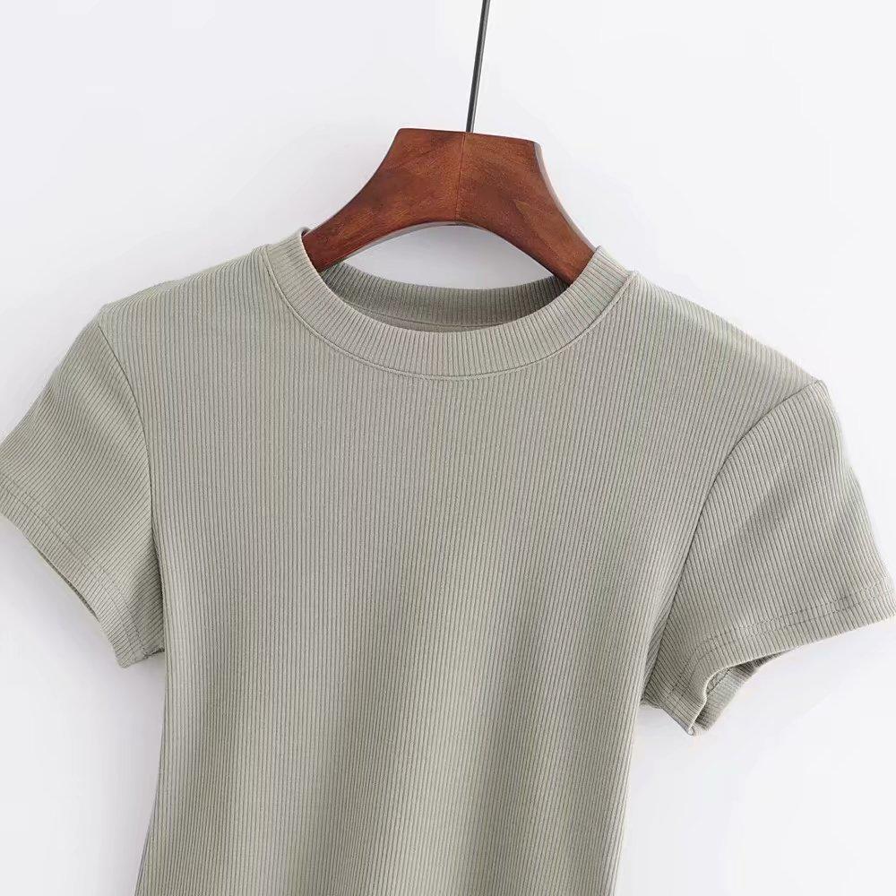 Camiseta básica de manga corta de color liso para mujer de AliExpress Foreign Trade, camiseta sexy de verano europea y americana con cuello redondo y ajustada.