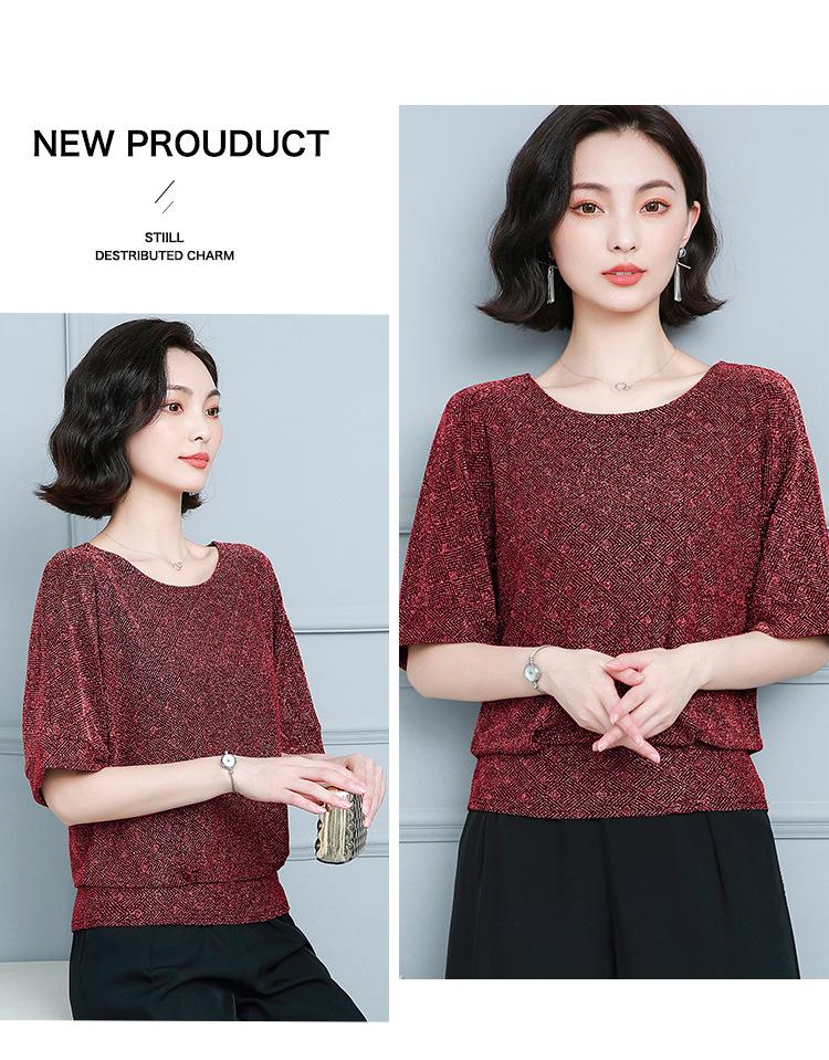 Ropa de Tallas Grandes para Mujer 2023 Verano Nuevo Estilo Esposa Rica Aspecto Adelgazante Camiseta Básica Camiseta de Manga Corta Top para Mamá Ropa para Mujer