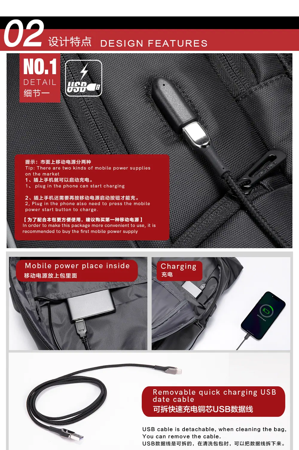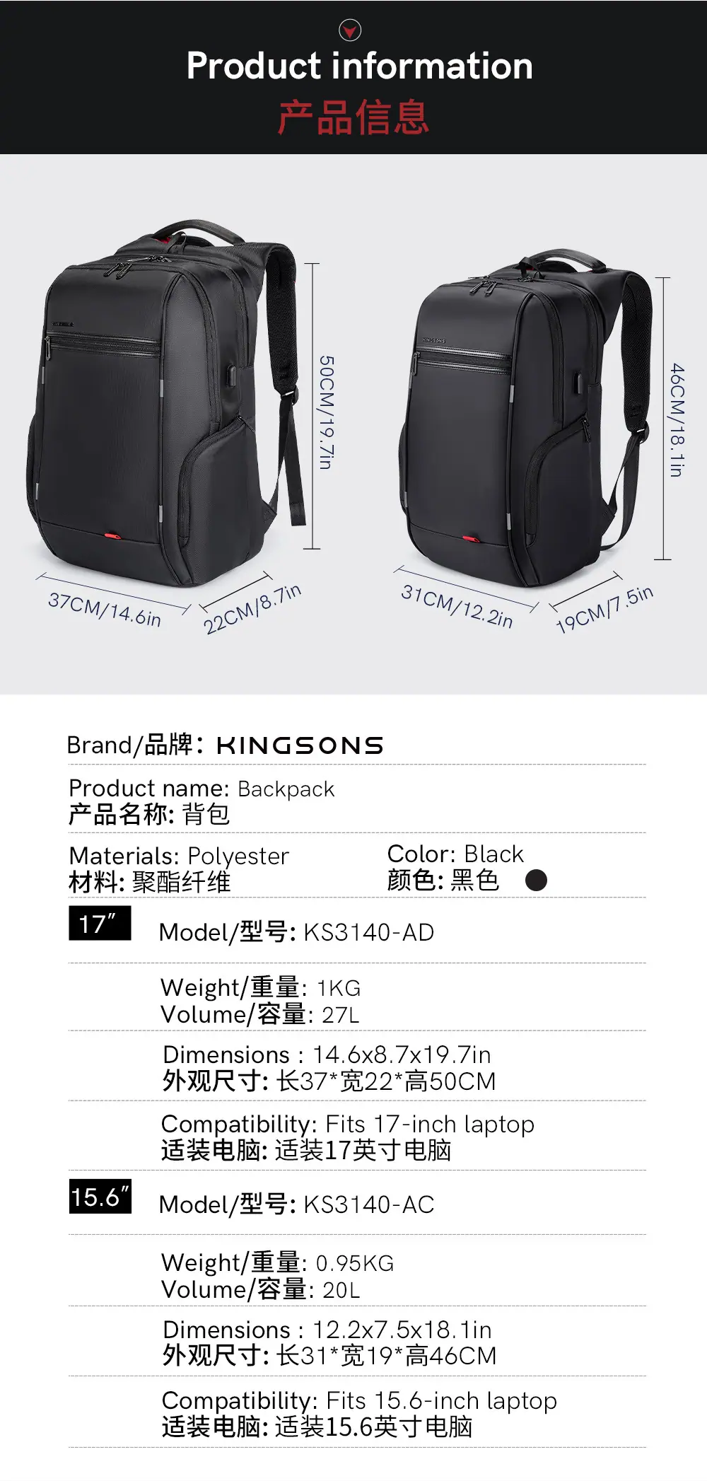 Jinshengsi Mochila Simple de Viaje de Alta Calidad USB Transfronteriza para Estudiantes Mochila de Poliéster para Portátil Mochila para Hombre