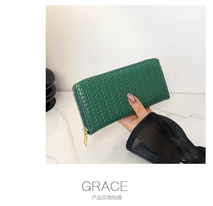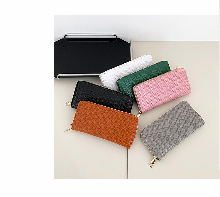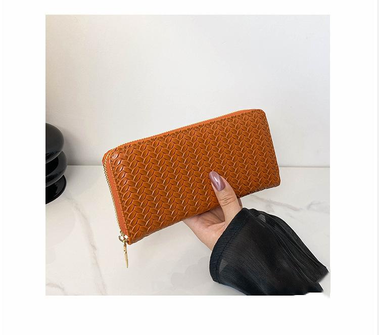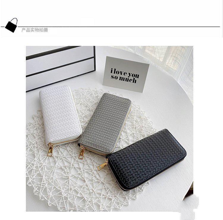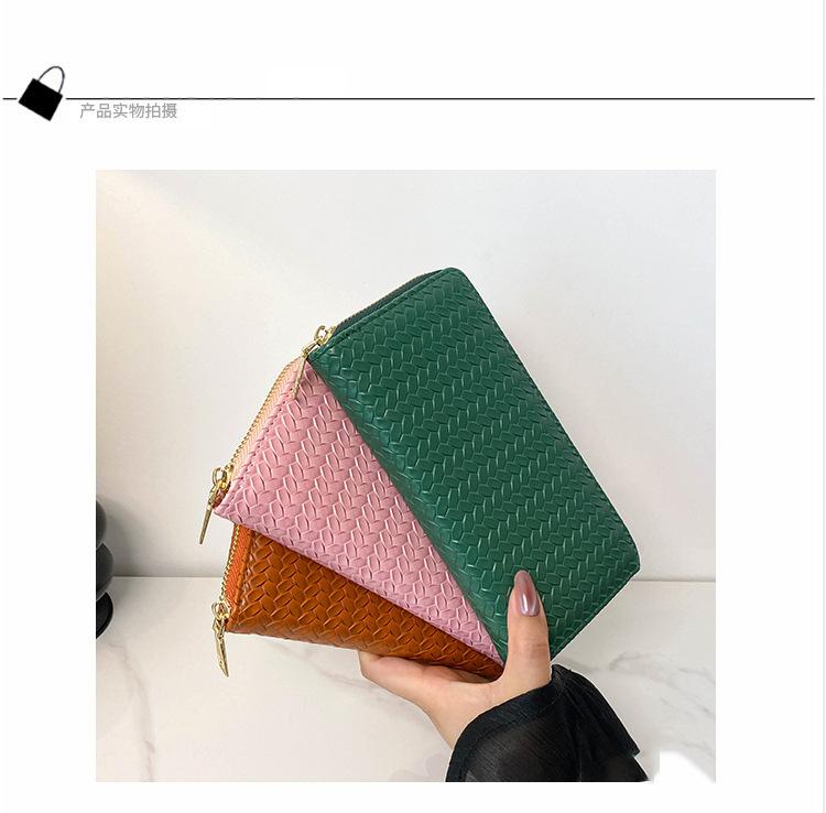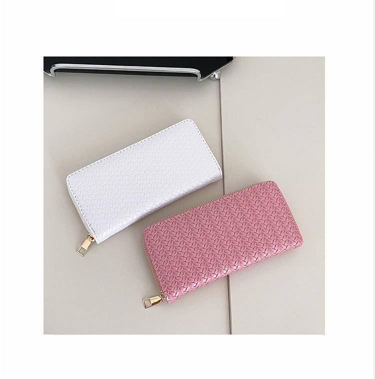 Nueva cartera de mujer de longitud media con cremallera, estilo europeo y americano, de moda de comercio exterior, de cuero PU, monedero tejido