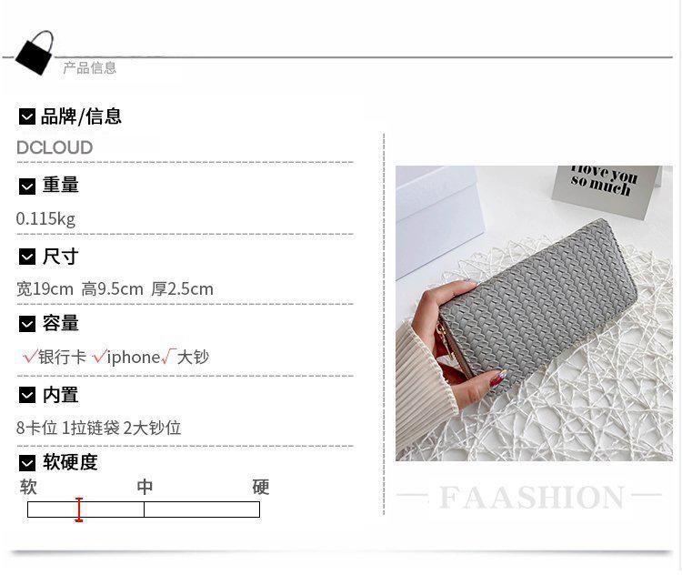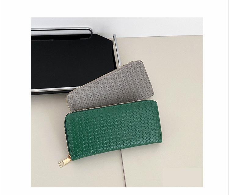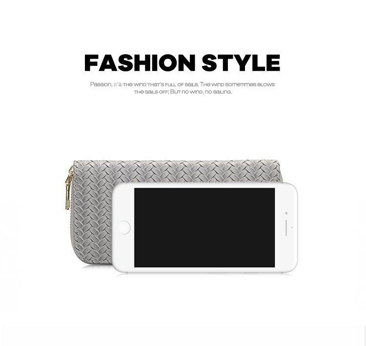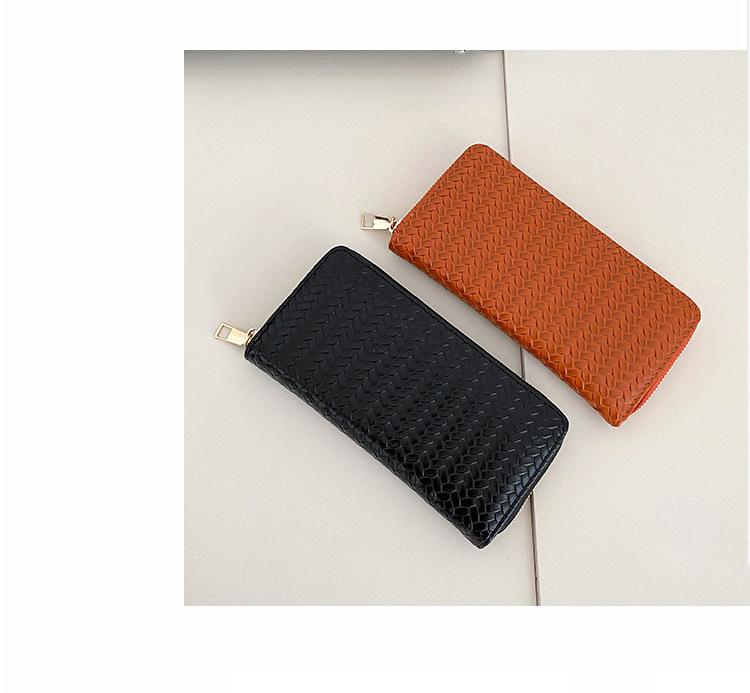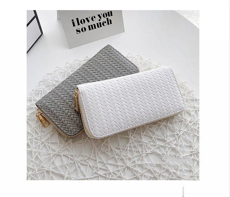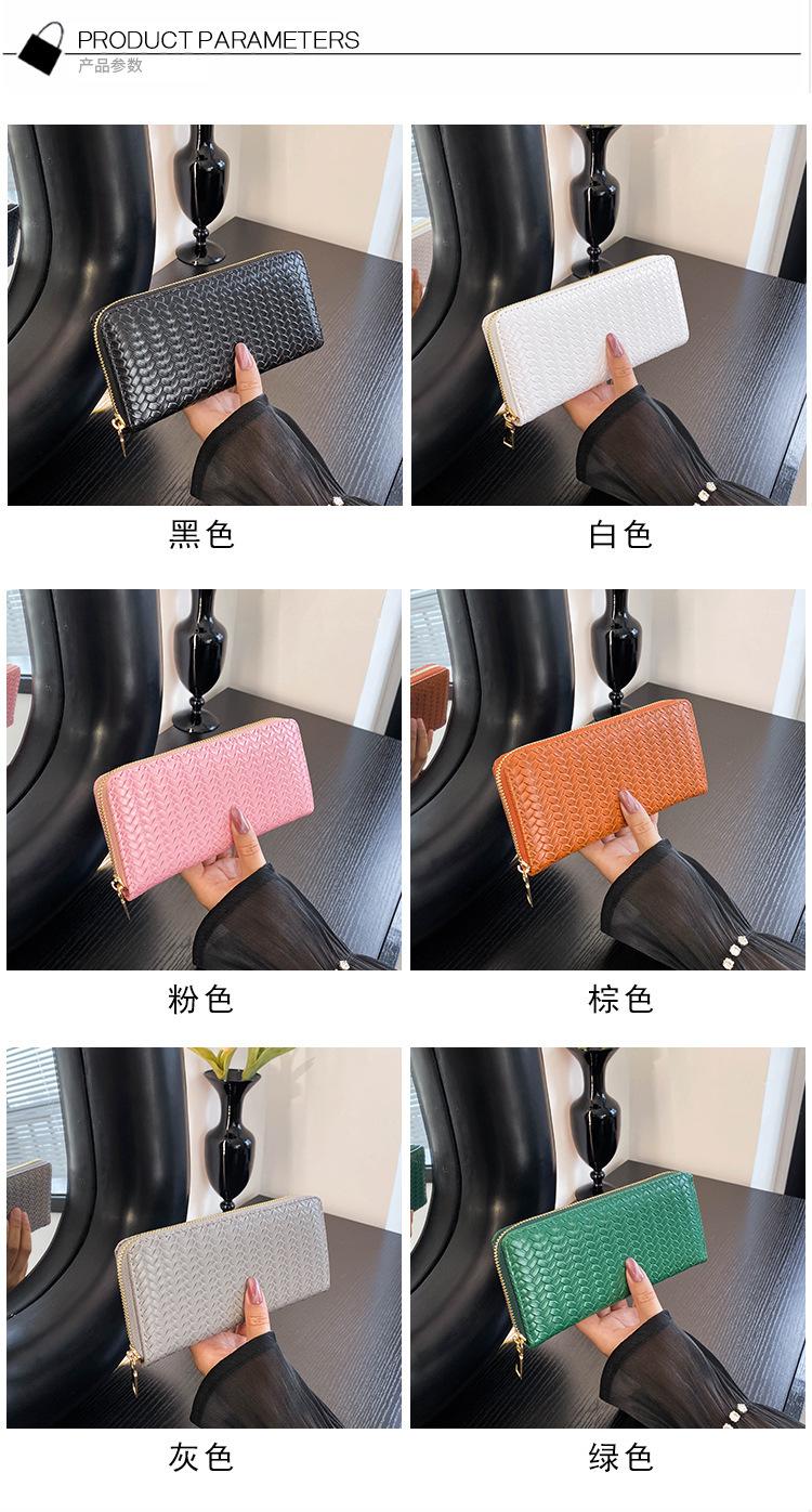 Nueva cartera de mujer de longitud media con cremallera, estilo europeo y americano, de moda de comercio exterior, de cuero PU, monedero tejido