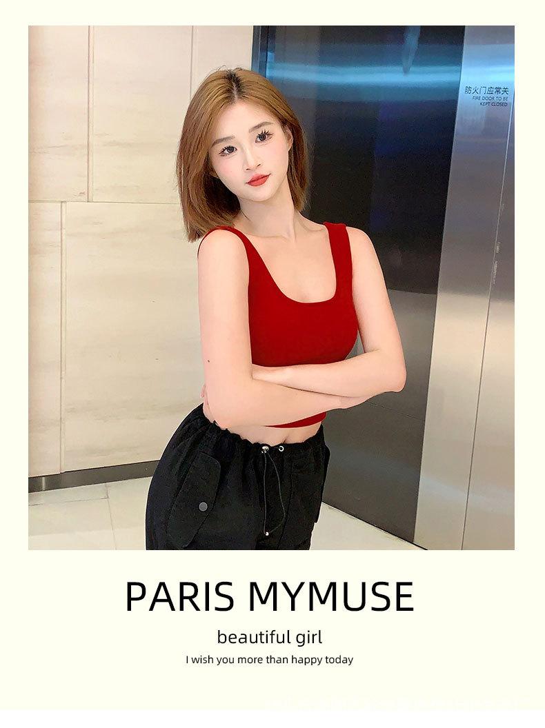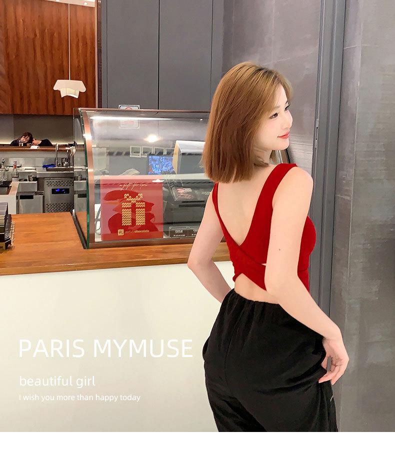 Top de verano para mujer, estilo coreano, con tirantes interiores, acolchado en el pecho y espalda cruzada, bonito chaleco pequeño.