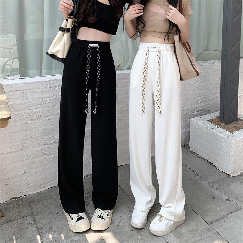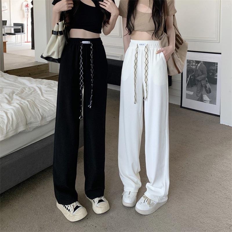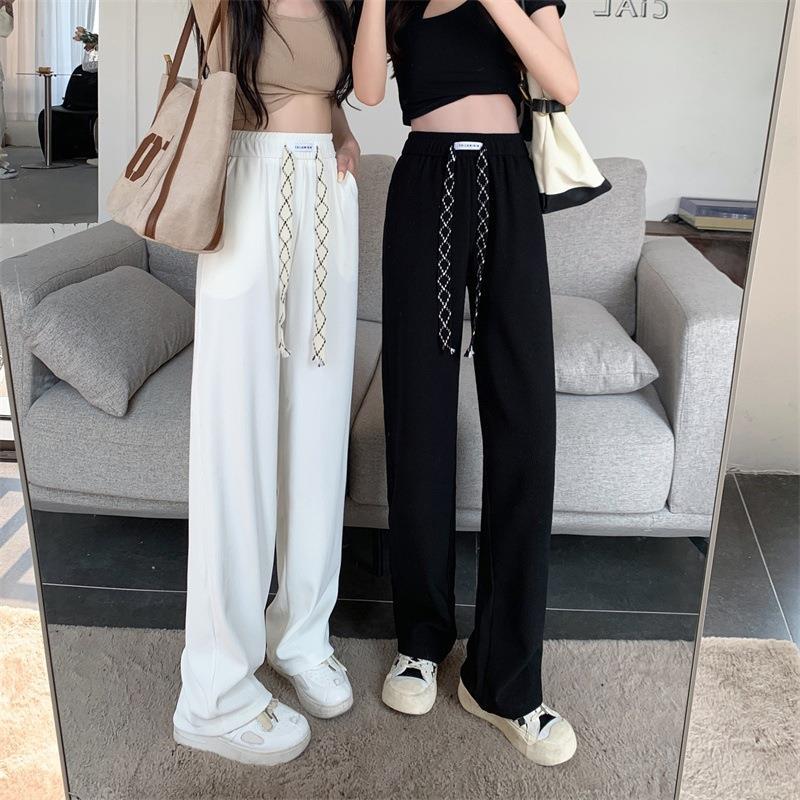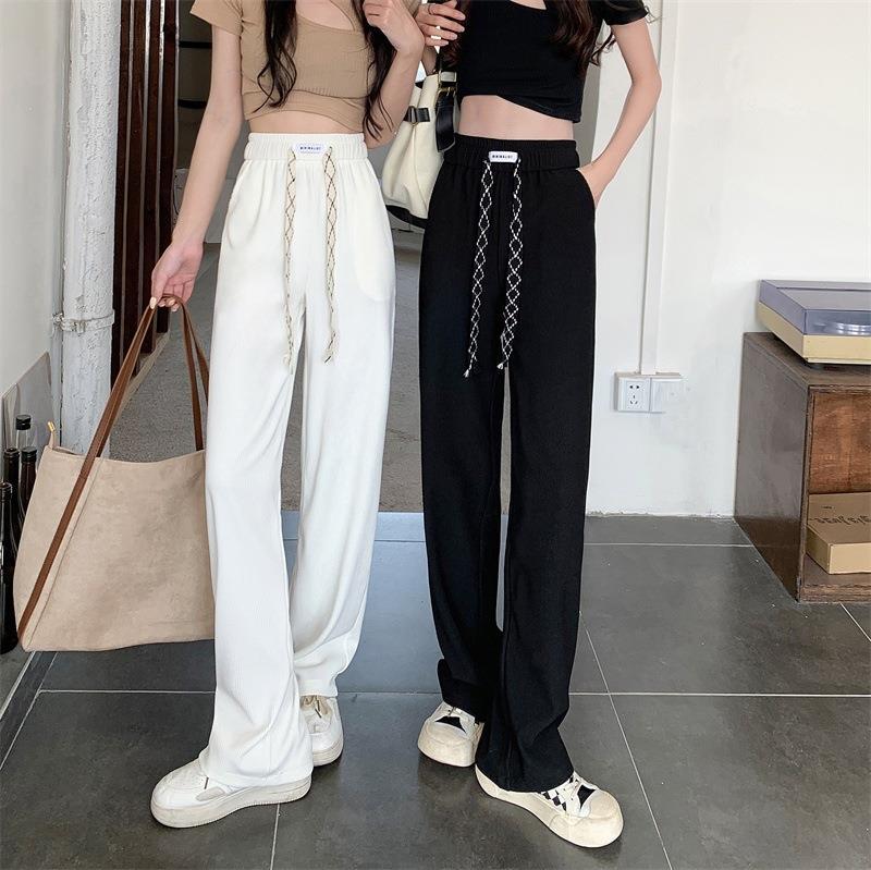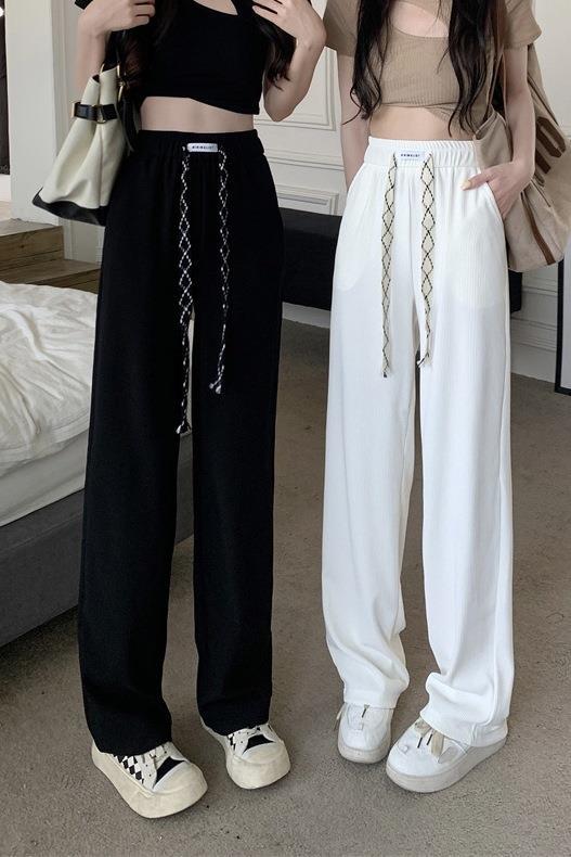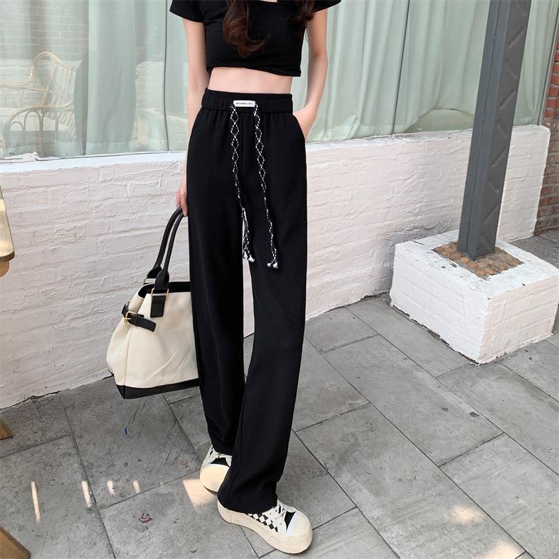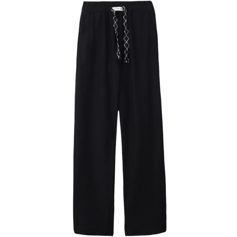 Compra Pantalones casuales con cordón elástico Design Sense para primavera y verano, estilo coreano, cintura alta, adelgazantes, negros, deportivos, de pierna ancha para mujer al por mayor en Joom.pro