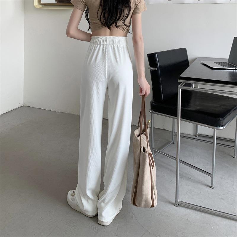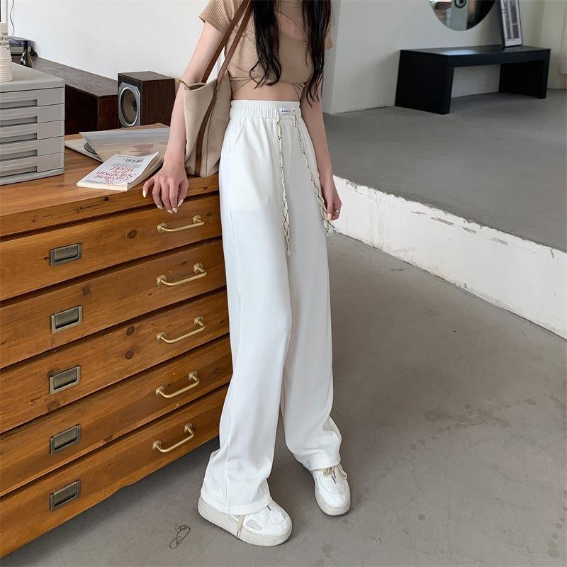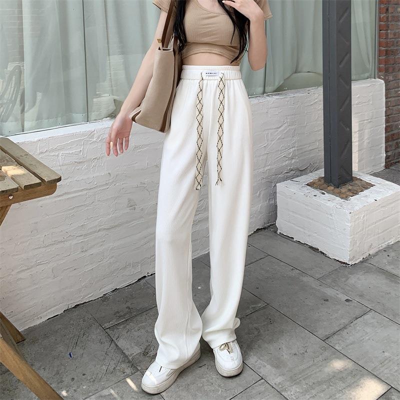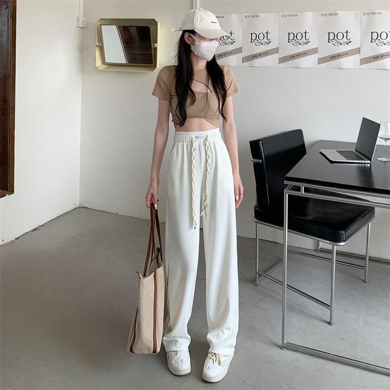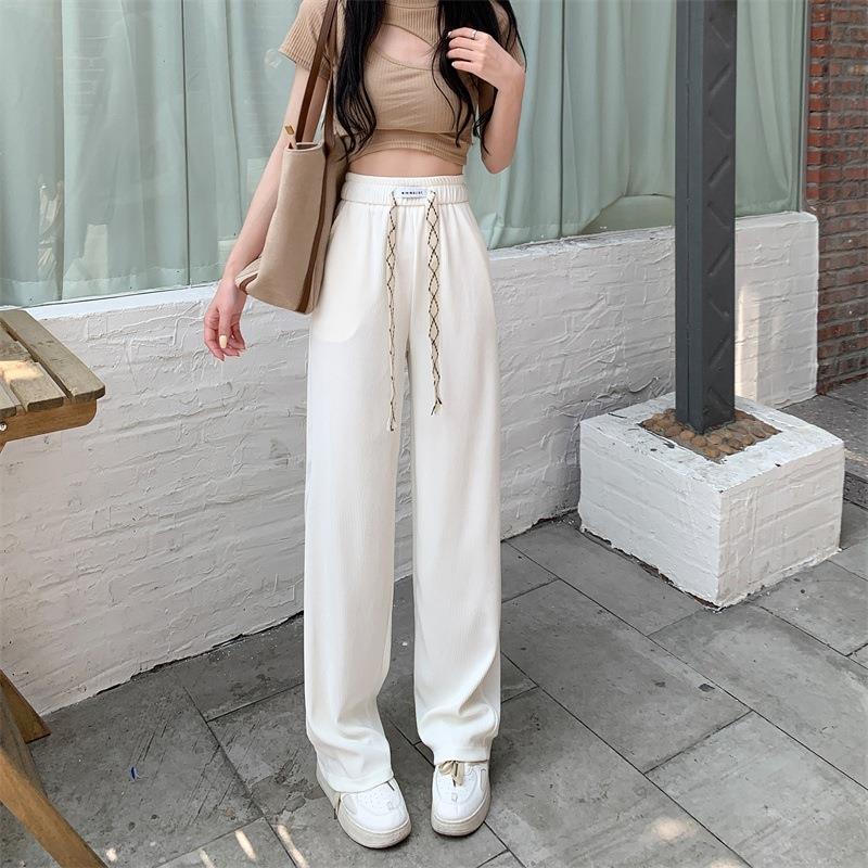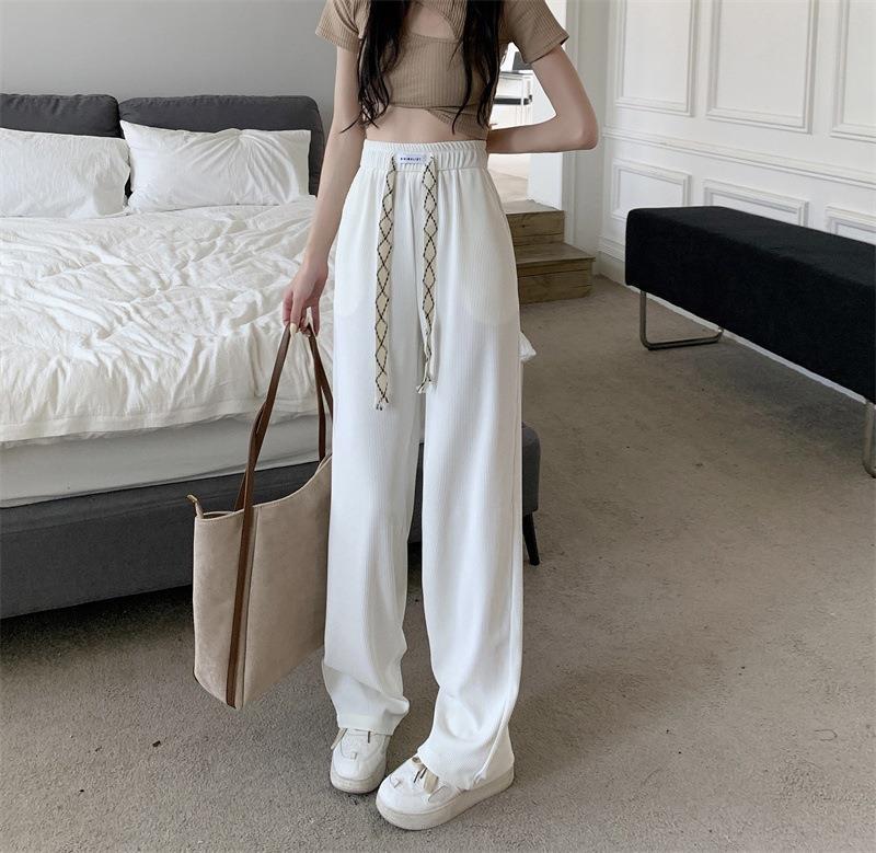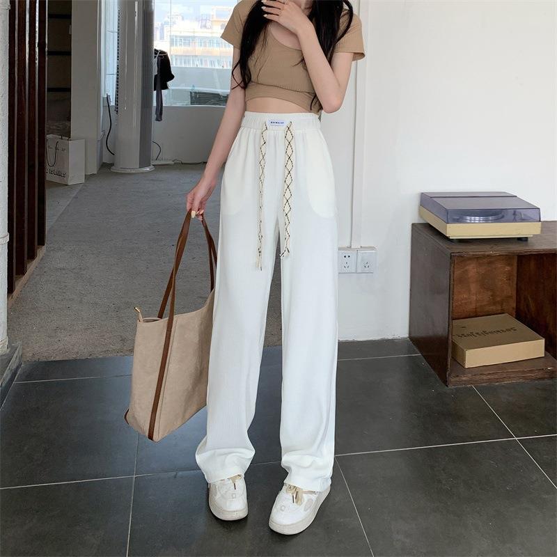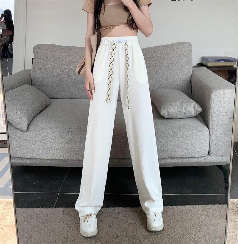 Compra Pantalones casuales con cordón elástico Design Sense para primavera y verano, estilo coreano, cintura alta, adelgazantes, negros, deportivos, de pierna ancha para mujer al por mayor en Joom.pro