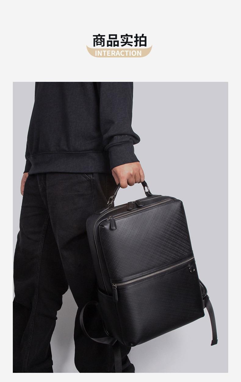 Mochila de Hombre de Cuero Genuino Mochila de Moda Capa Superior Cuero Vacuno Bolsa de Viaje Negocios Estudiante Universitario Mochila para Computadora