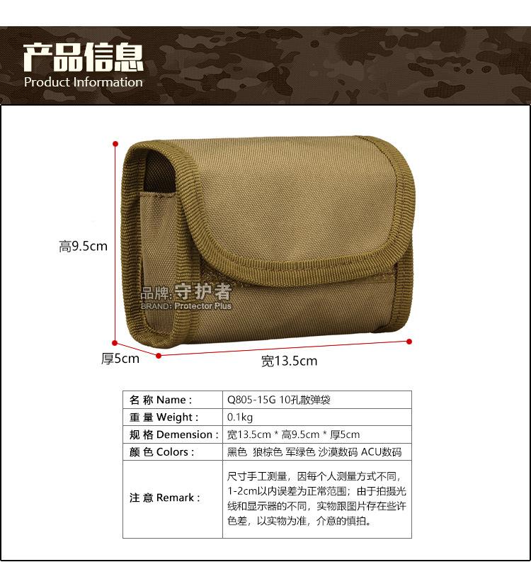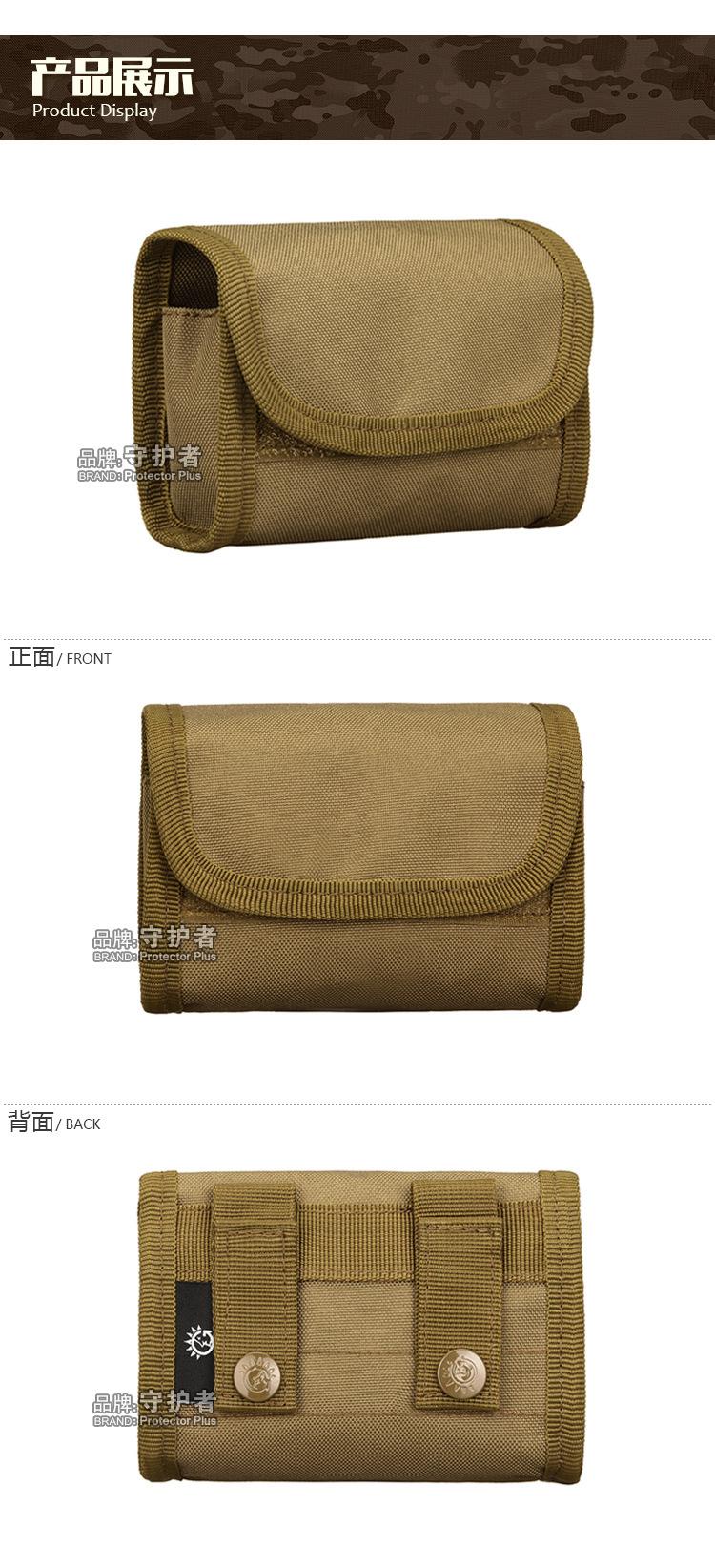 Las correas MOLLE compatibles están hechas de tela de nailon impermeable en la parte trasera. Es fácil de abrir y cerrar. Es pequeño y ligero. Es conveniente de llevar. Esta bolsa está especialmente diseñada para conectarse a chalecos, mochilas y otros artículos.