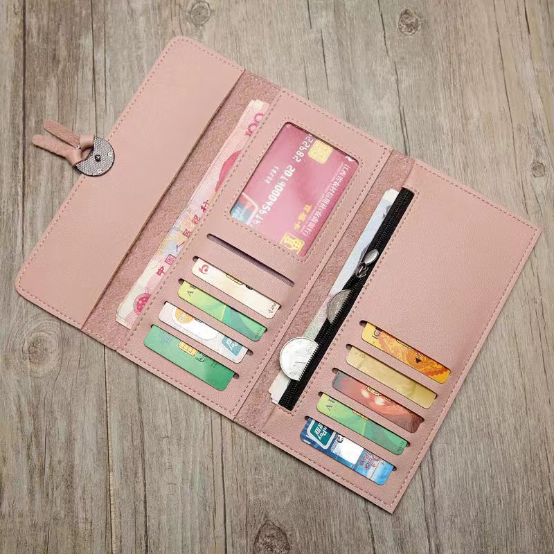Cartera de mujer al por mayor de fábrica transfronteriza, nueva cartera con hebilla larga y múltiples tarjetas, 30% de descuento, cartera para mujer, tarjetero, monedero