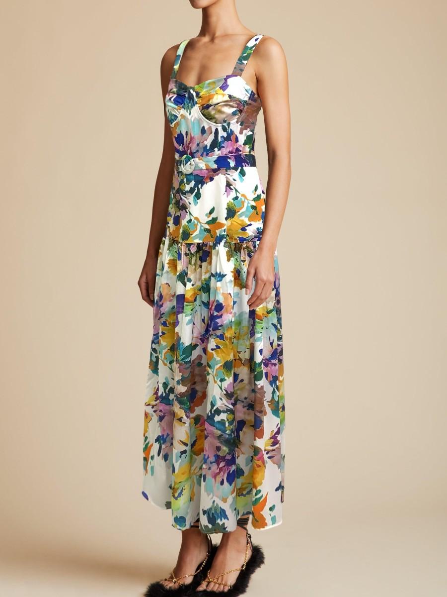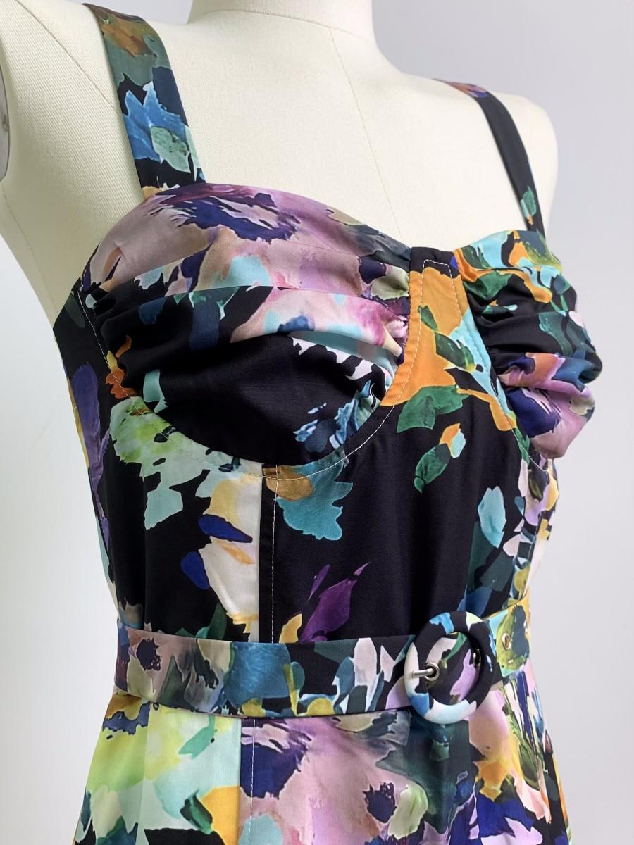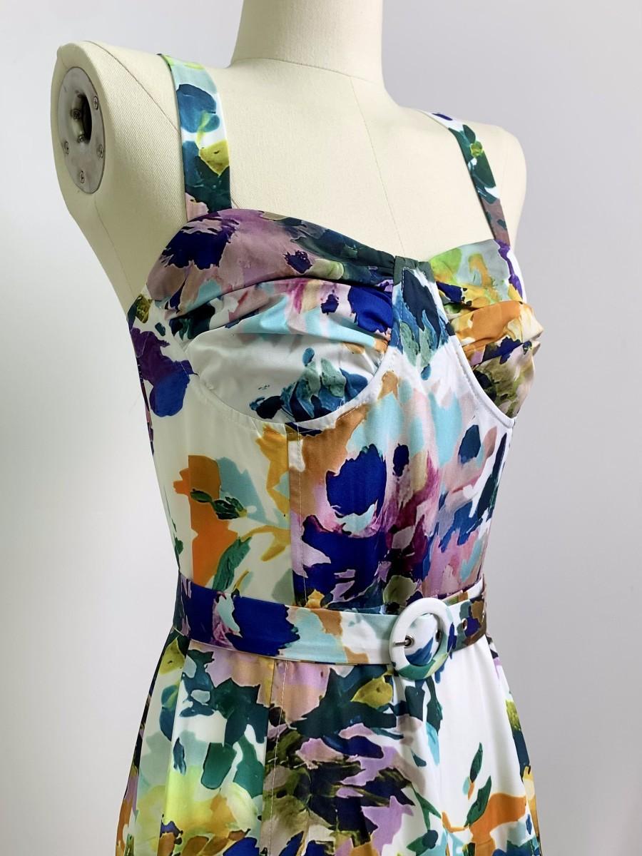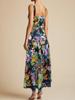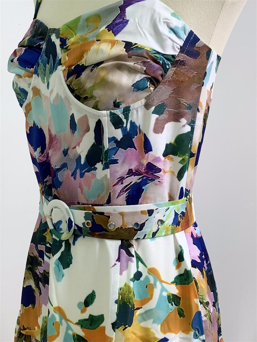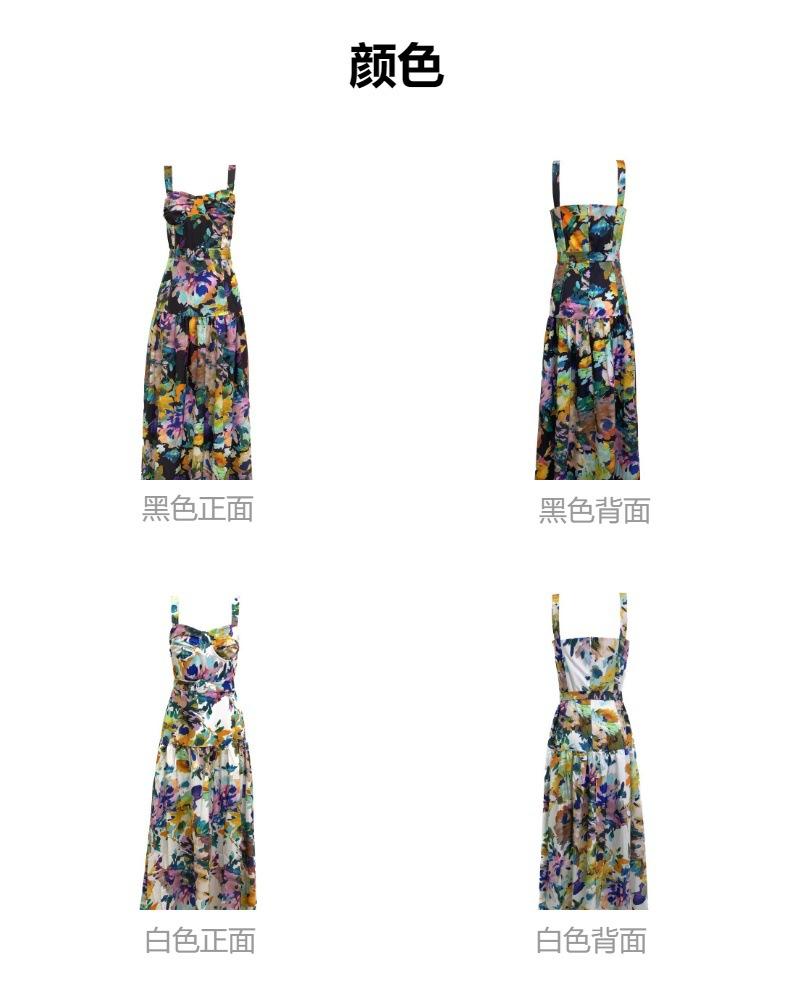 Verano 2023 Estilo Europeo y Americano Elegante Vestido de Tirantes Estampado para Oficina con Cinturón de Cintura Alta Vestido Largo Acampanado Estilo Europeo y Americano