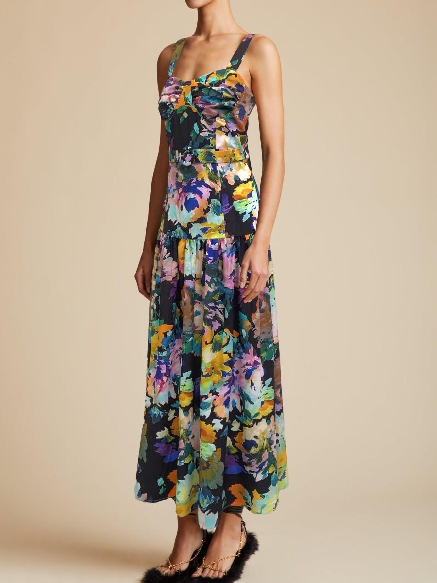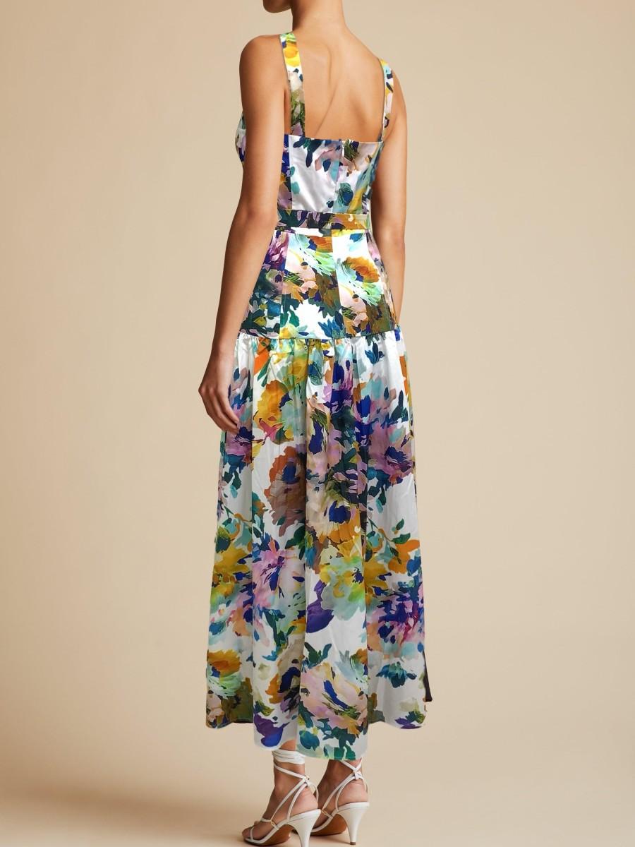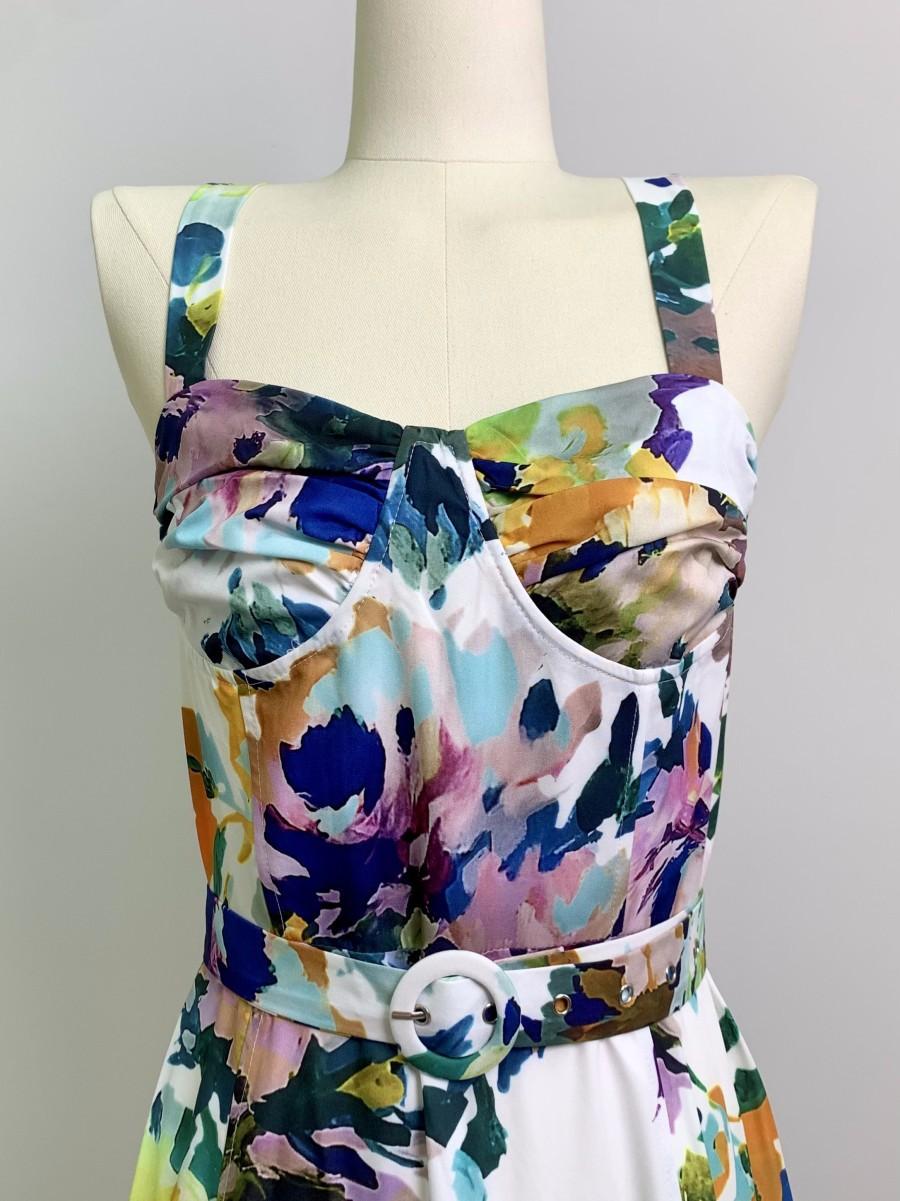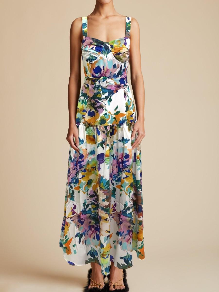 Verano 2023 Estilo Europeo y Americano Elegante Vestido de Tirantes Estampado para Oficina con Cinturón de Cintura Alta Vestido Largo Acampanado Estilo Europeo y Americano