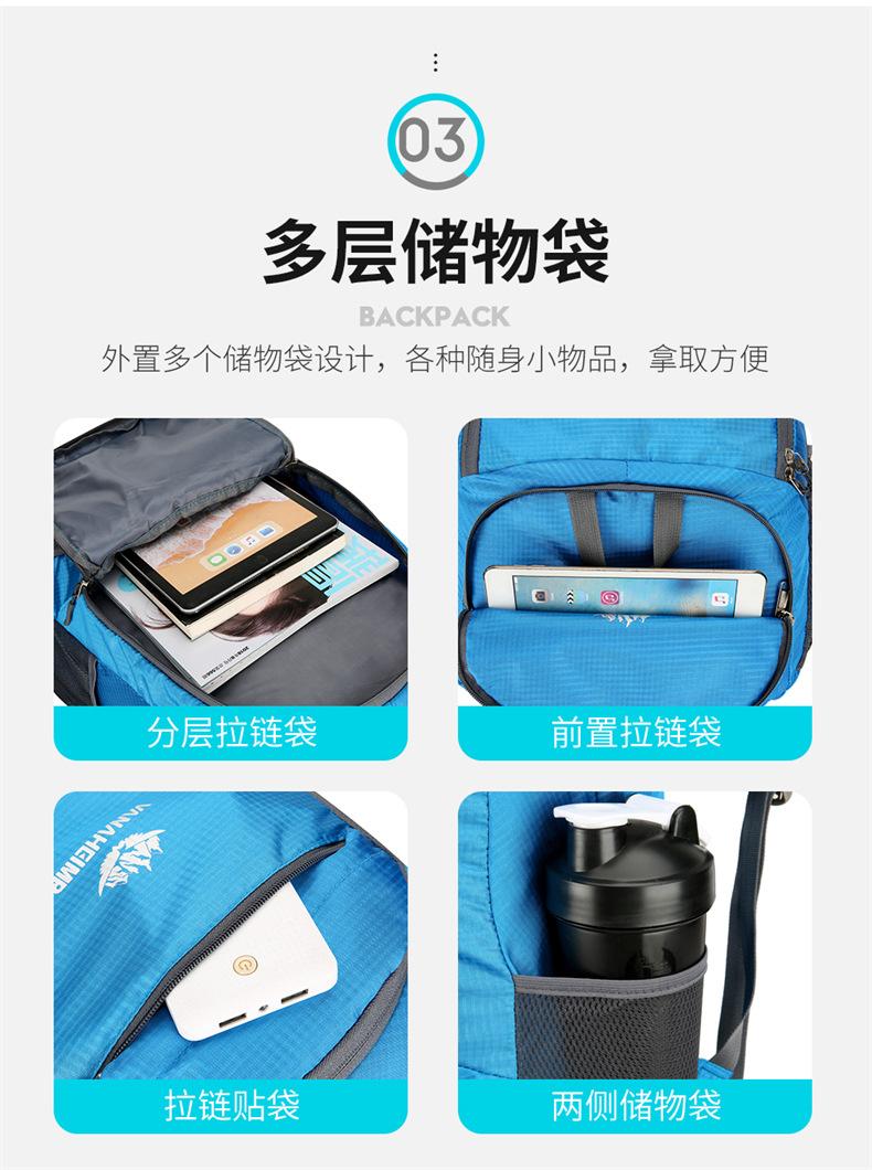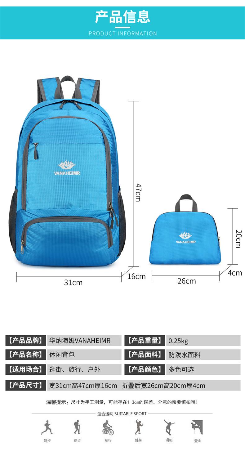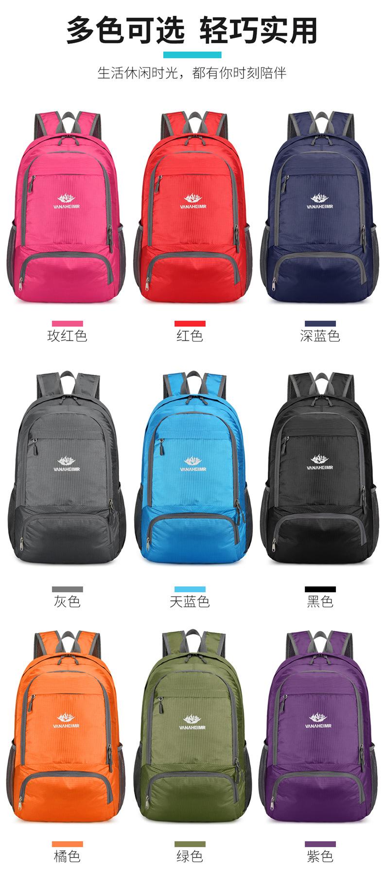 Mochila de gran capacidad para deportes al aire libre, viajes, unisex, ligera, plegable, con logotipo imprimible, mochila repelente al agua.
