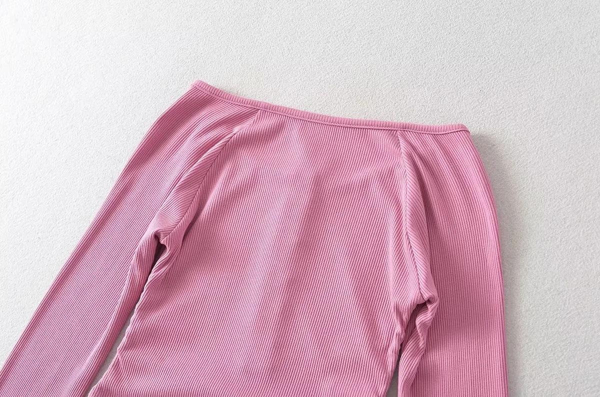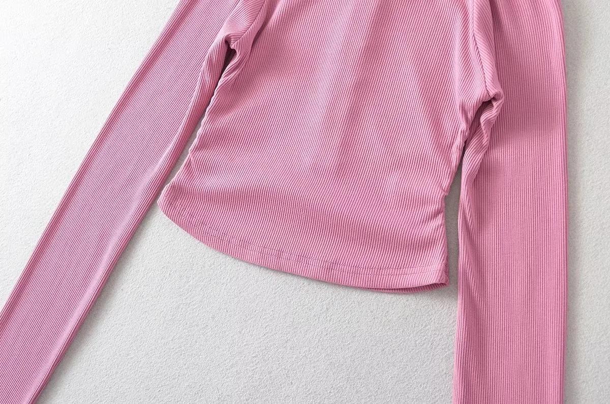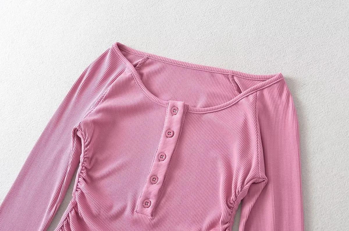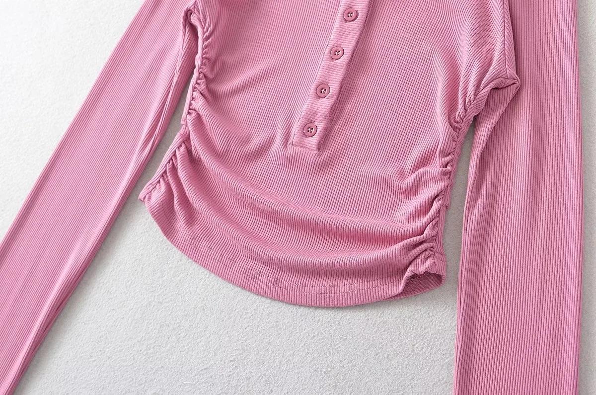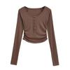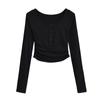 Camiseta de manga larga estilo Spice Girl estilo americano con cuello redondo y tapeta semiabierta de otoño, nueva camiseta ajustada con pliegues laterales.