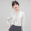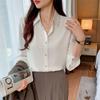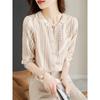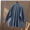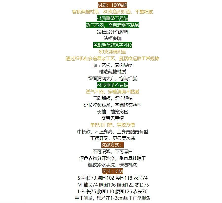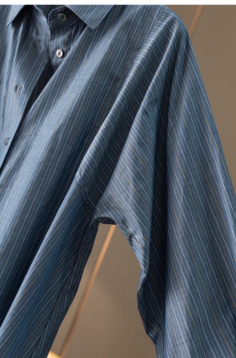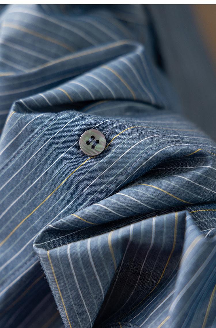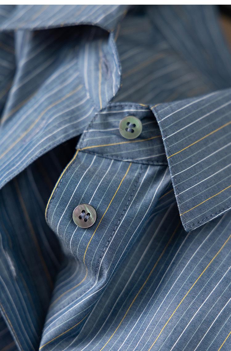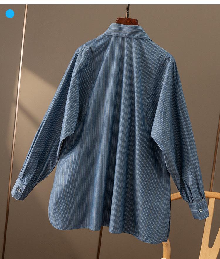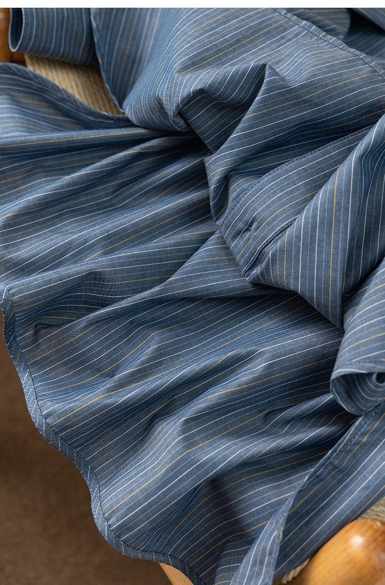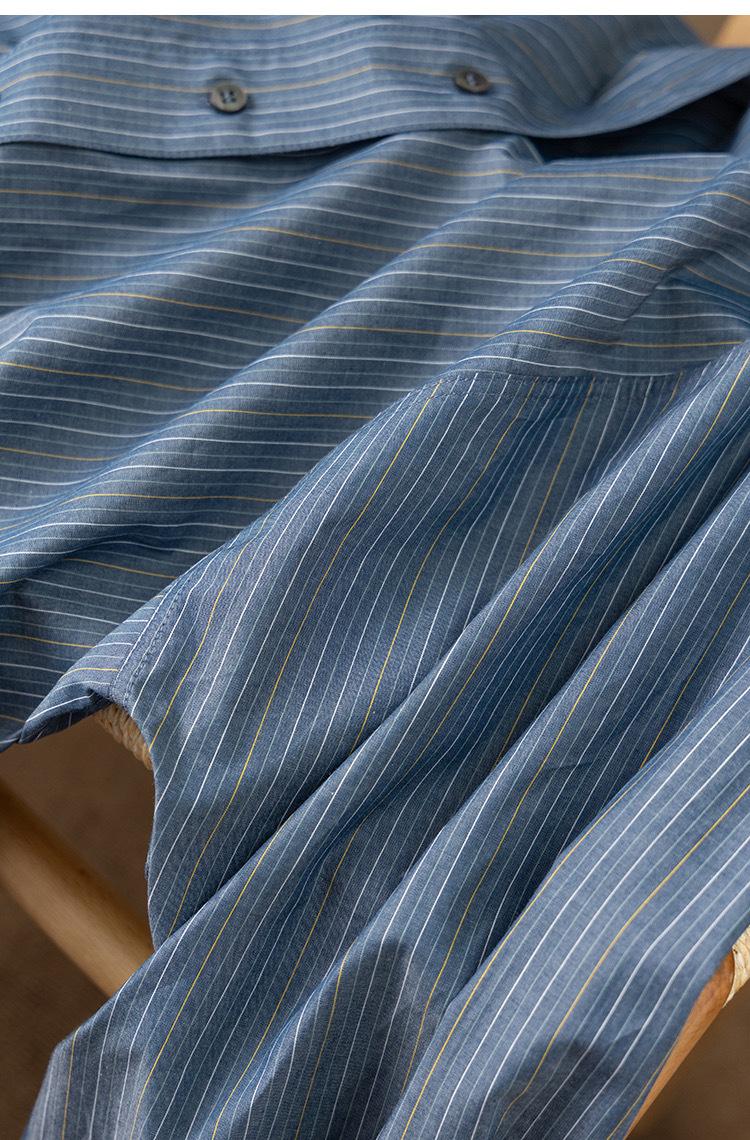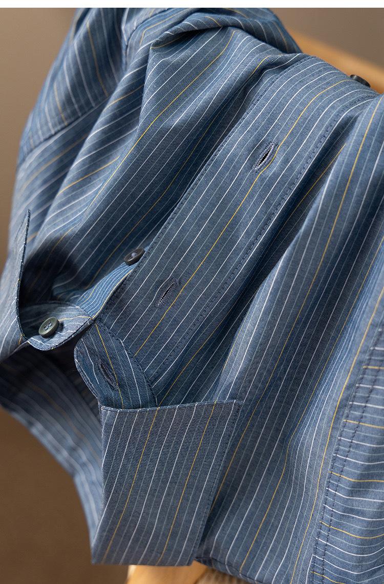 Camisa Top Elegante de Algodón Chunchun Individual a la Moda Vintage Diseño de Rayas Delgadas Sentido de Rayas Verticales Abertura Lateral Cuello Puntiagudo para Mujer