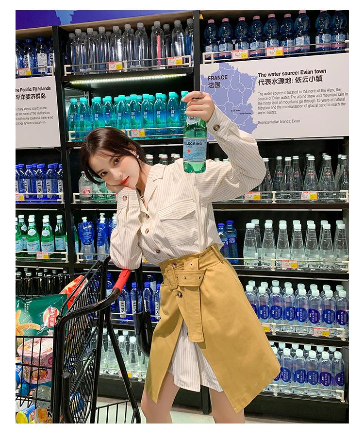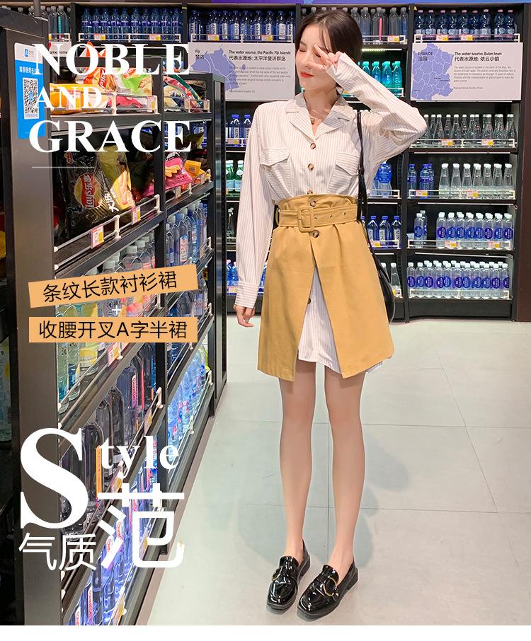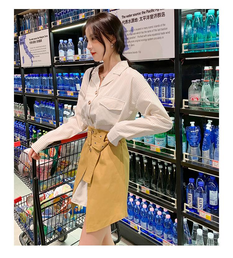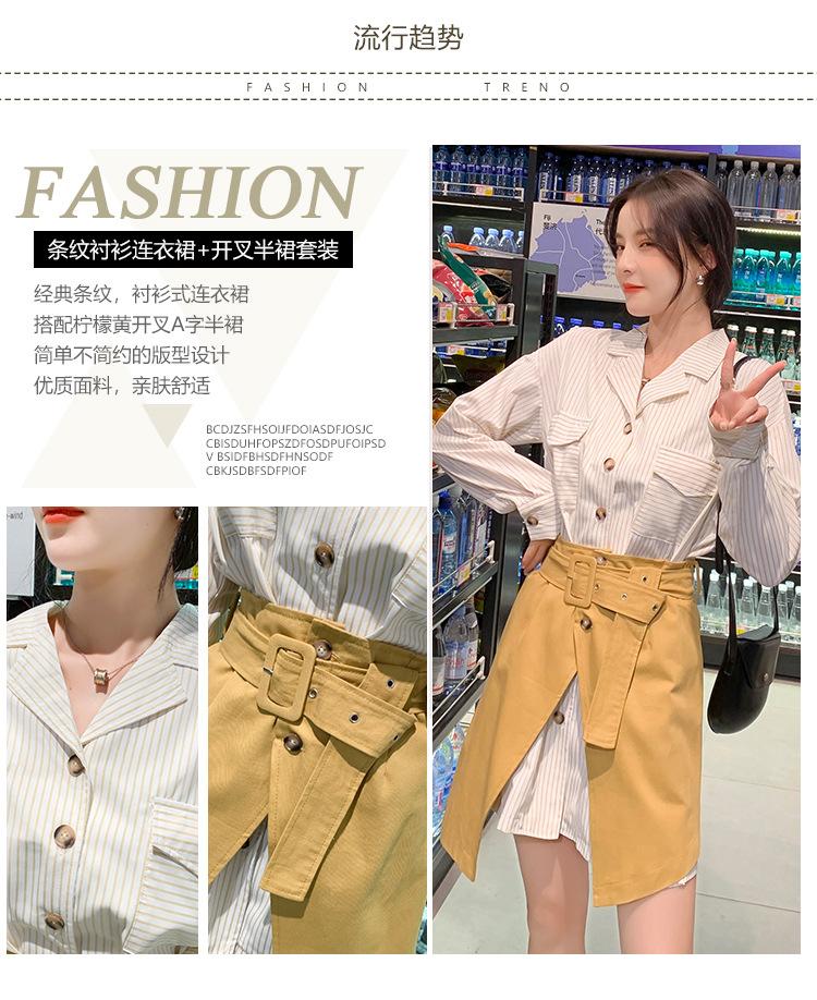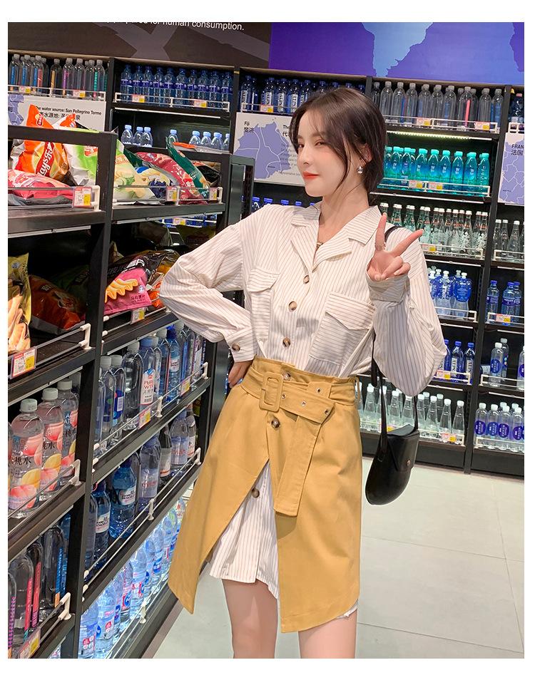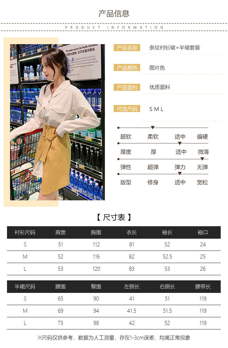 Leche de papaya nueva moda de primavera camisa a rayas falda conjunto de dos piezas personalidad pequeña personalidad traje casual marea