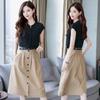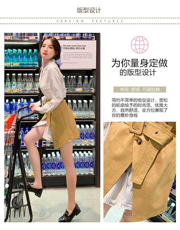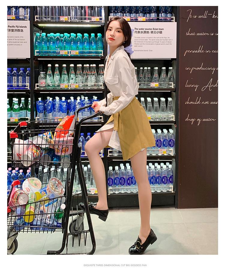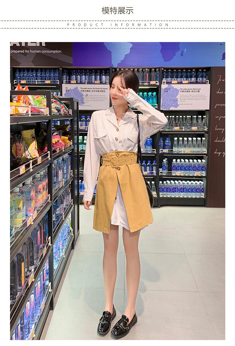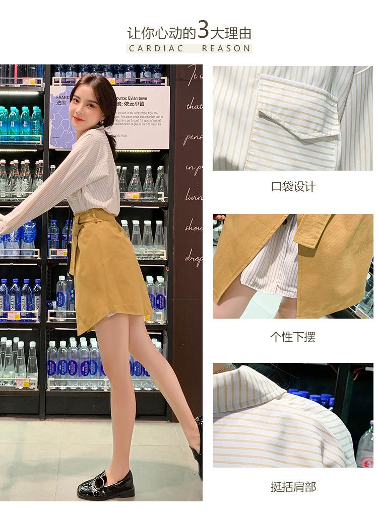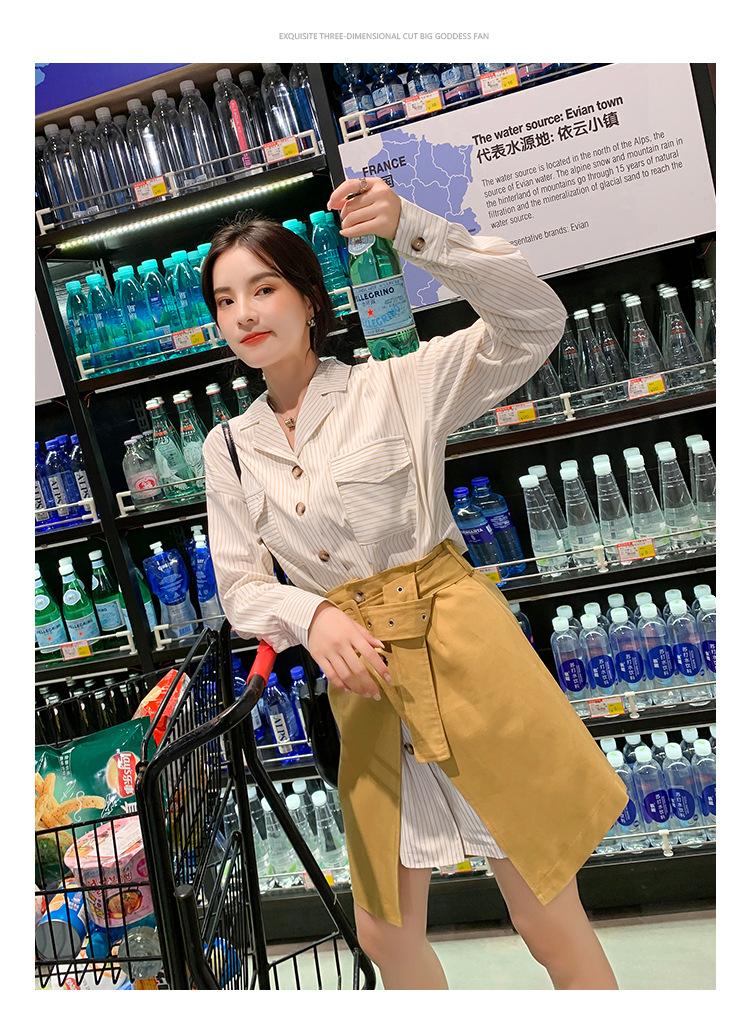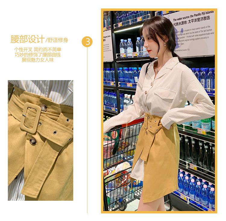 Leche de papaya nueva moda de primavera camisa a rayas falda conjunto de dos piezas personalidad pequeña personalidad traje casual marea