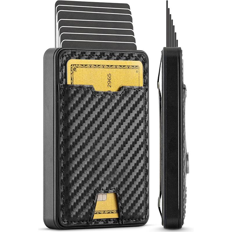 Tarjetero de hombre de moda transfronteriza, de cuero de fibra de carbono, al por mayor, con protección RFID, tarjetero multifunción, billetera para hombre
