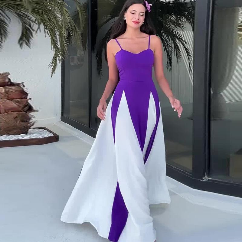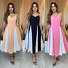 Compra Vestido ajustado con cintura y costuras de color, estilo transfronterizo de Amazon, estilo europeo y americano, novedad de verano de 2024 al por mayor en Joom.pro