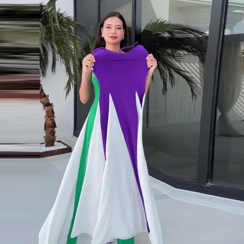 Vestido ajustado con cintura y costuras de color, estilo transfronterizo de Amazon, estilo europeo y americano, novedad de verano de 2024