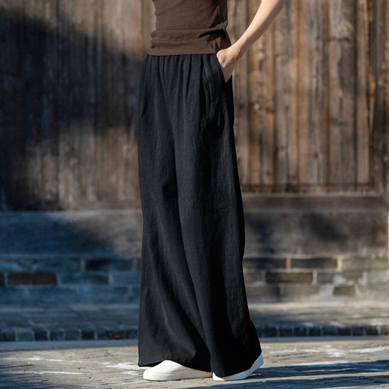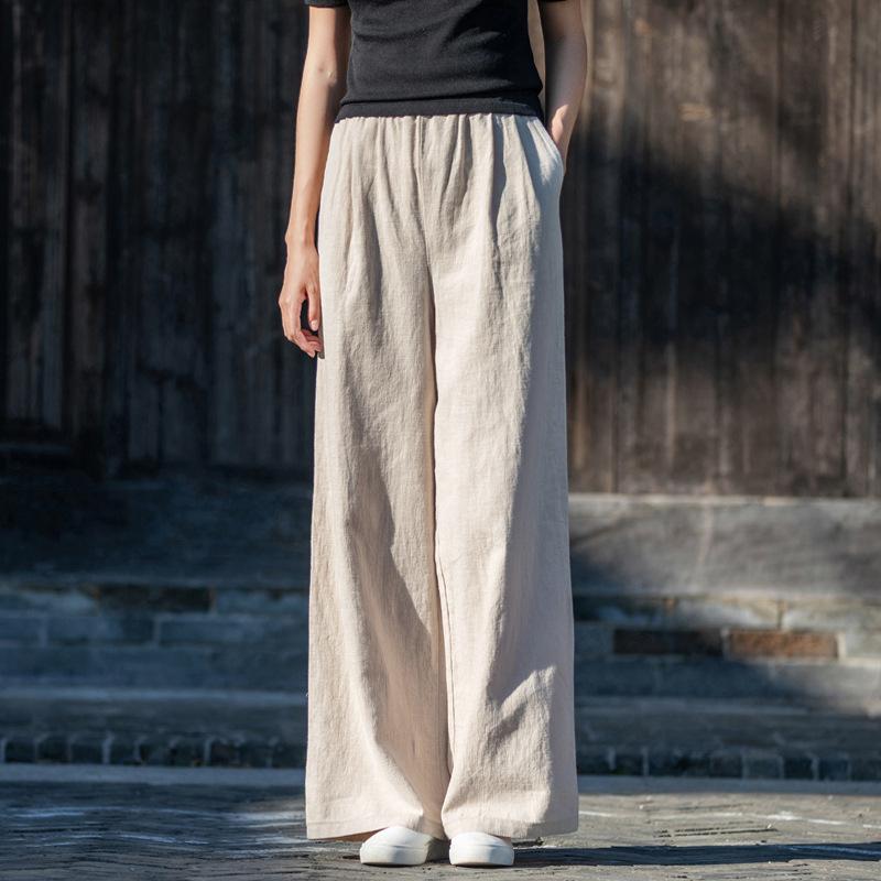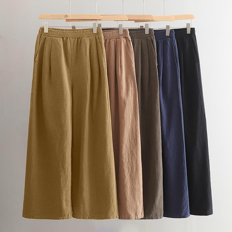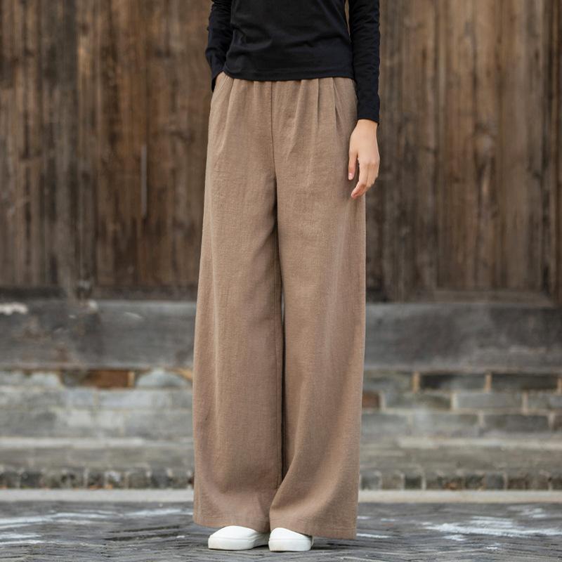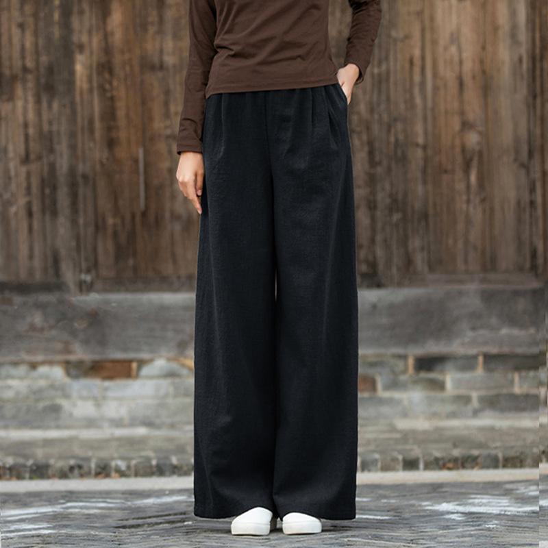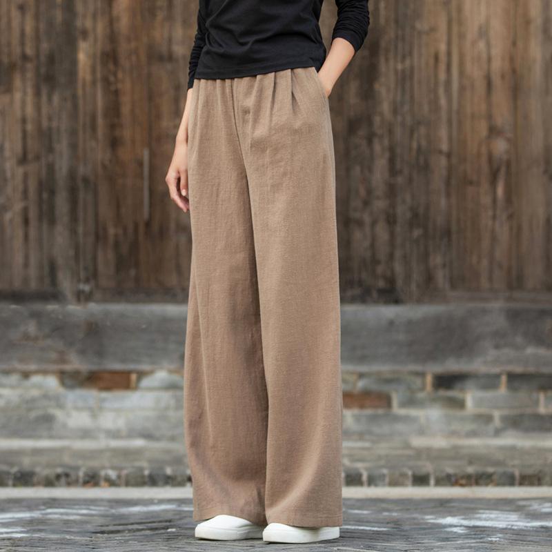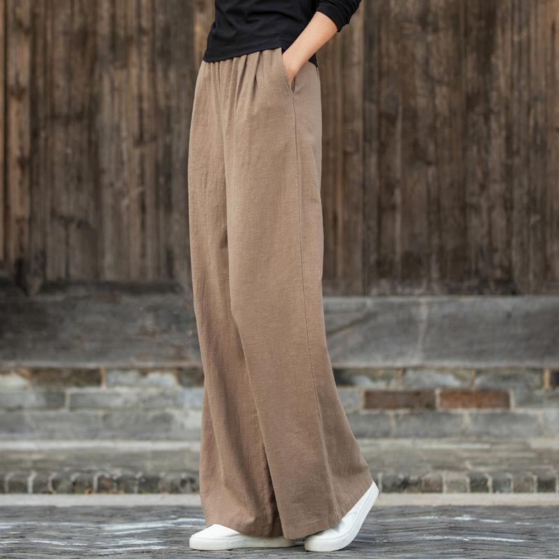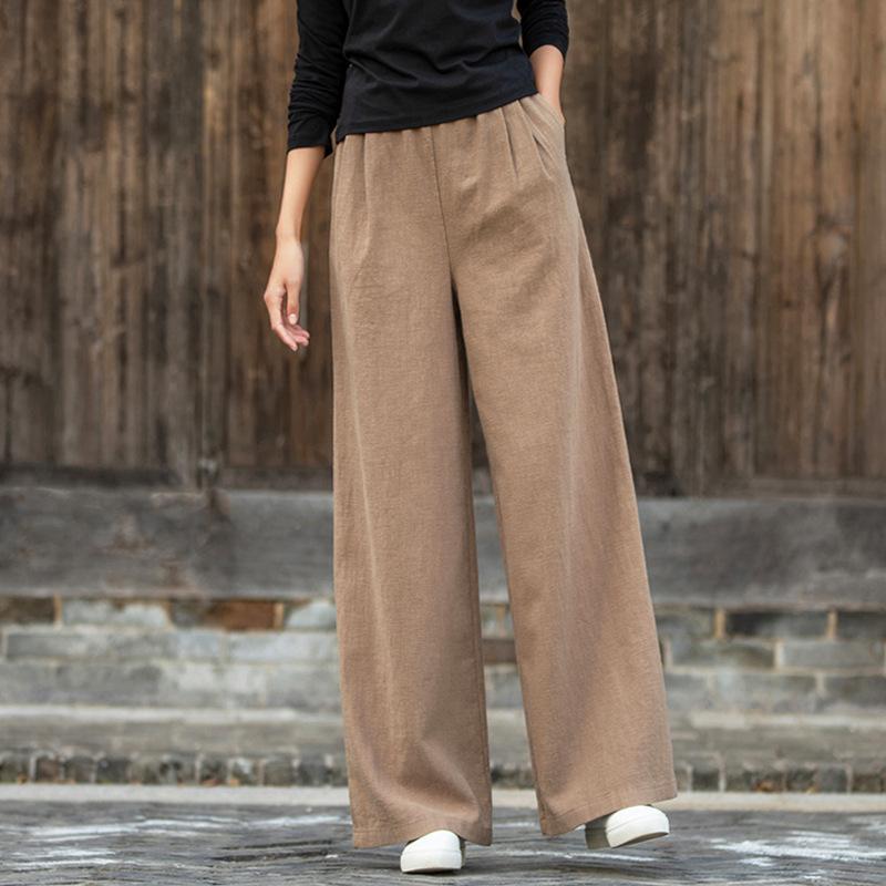 Pantalones de Pierna Ancha de Algodón y Lino 2025 Nuevo Otoño Pantalones Casuales Artísticos Pantalones Grandes de Pierna Ancha Lino Versátil Pantalones Largos de Mujer