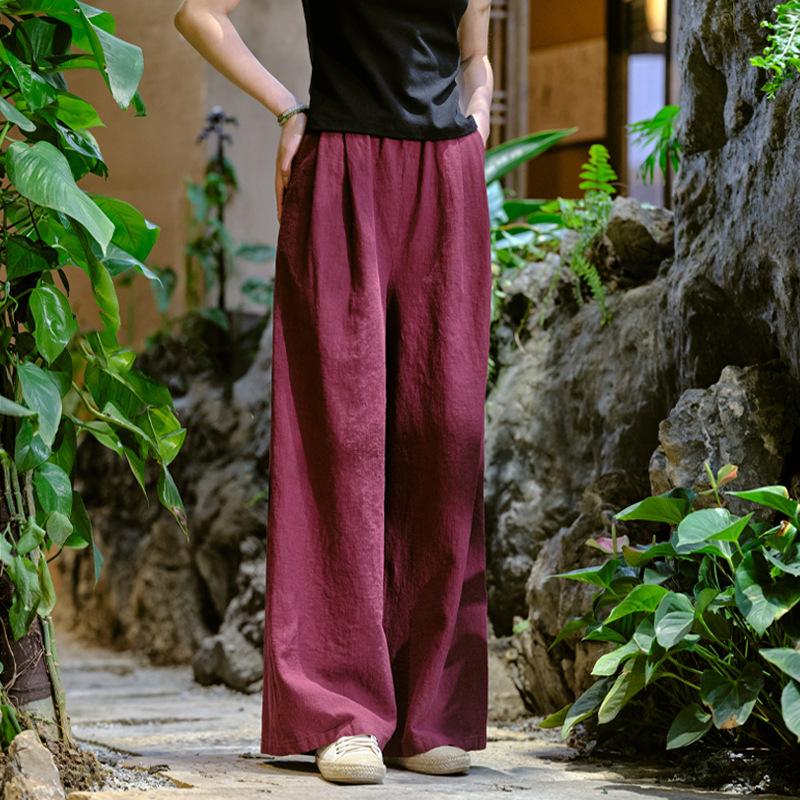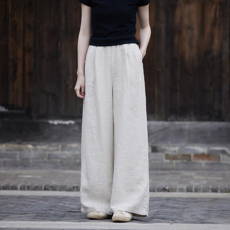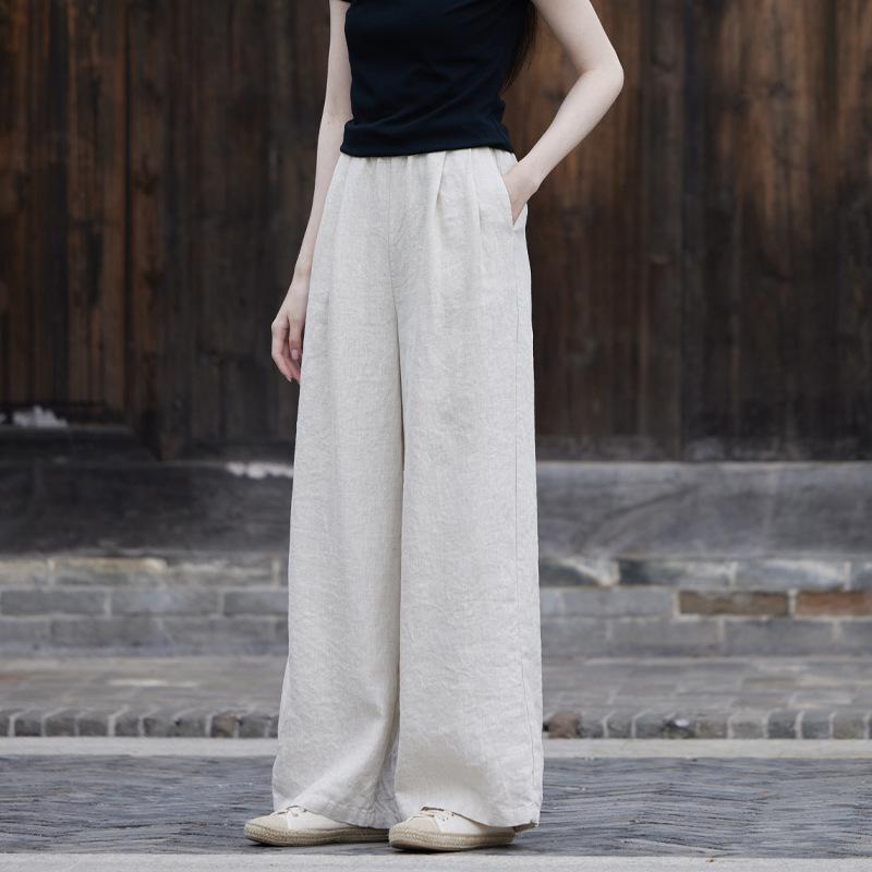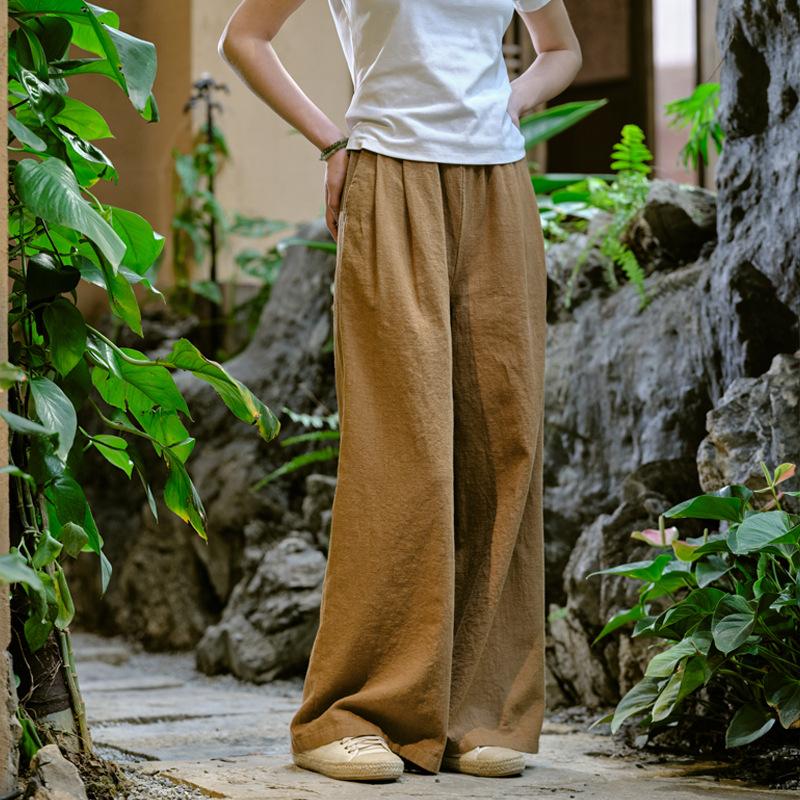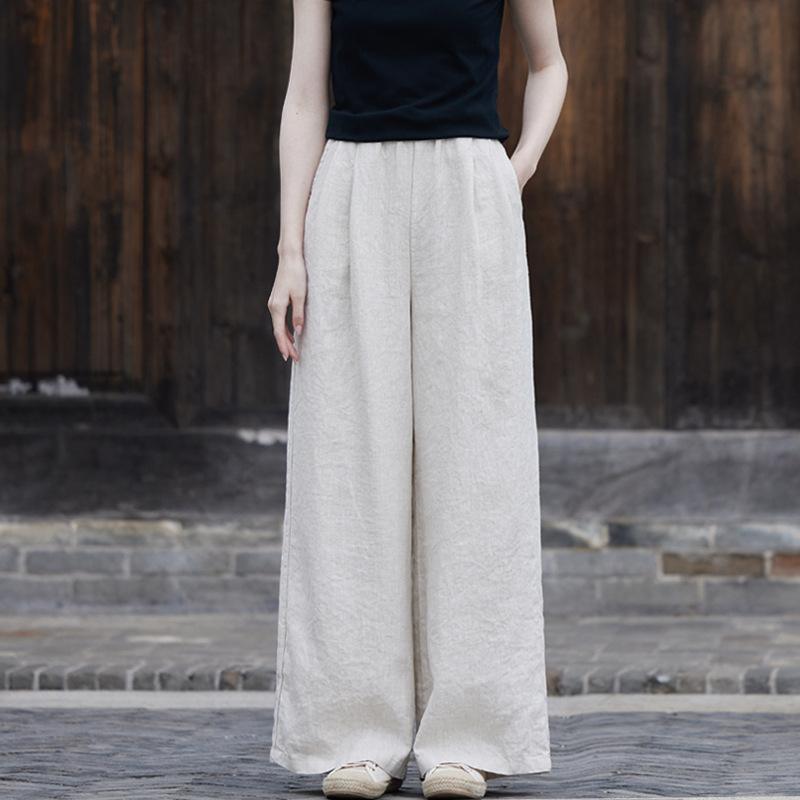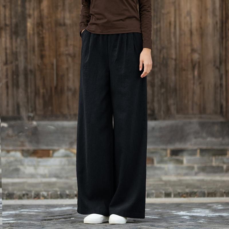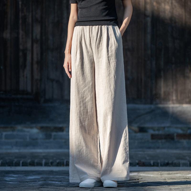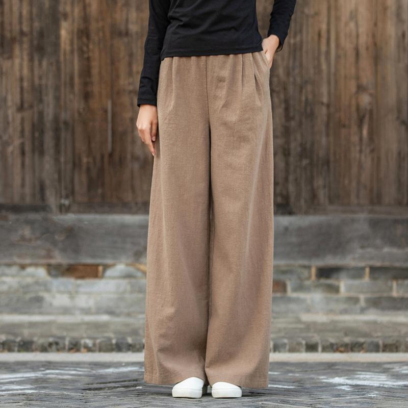 Pantalones de Pierna Ancha de Algodón y Lino 2025 Nuevo Otoño Pantalones Casuales Artísticos Pantalones Grandes de Pierna Ancha Lino Versátil Pantalones Largos de Mujer