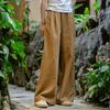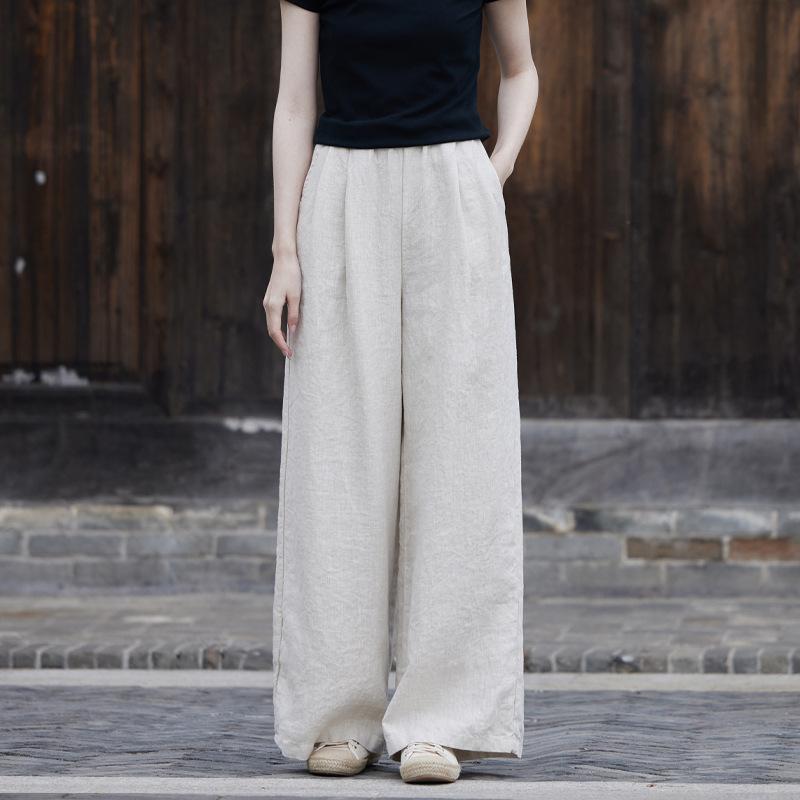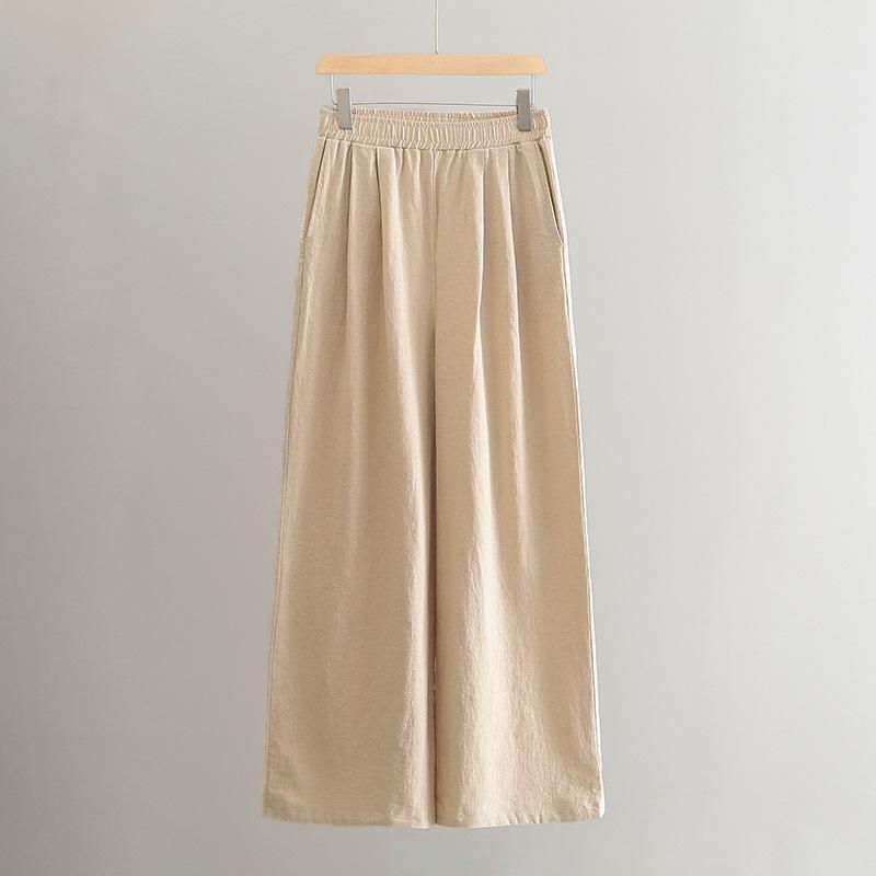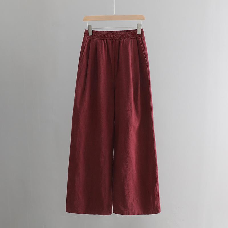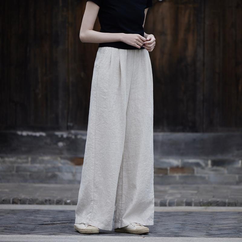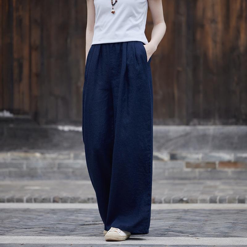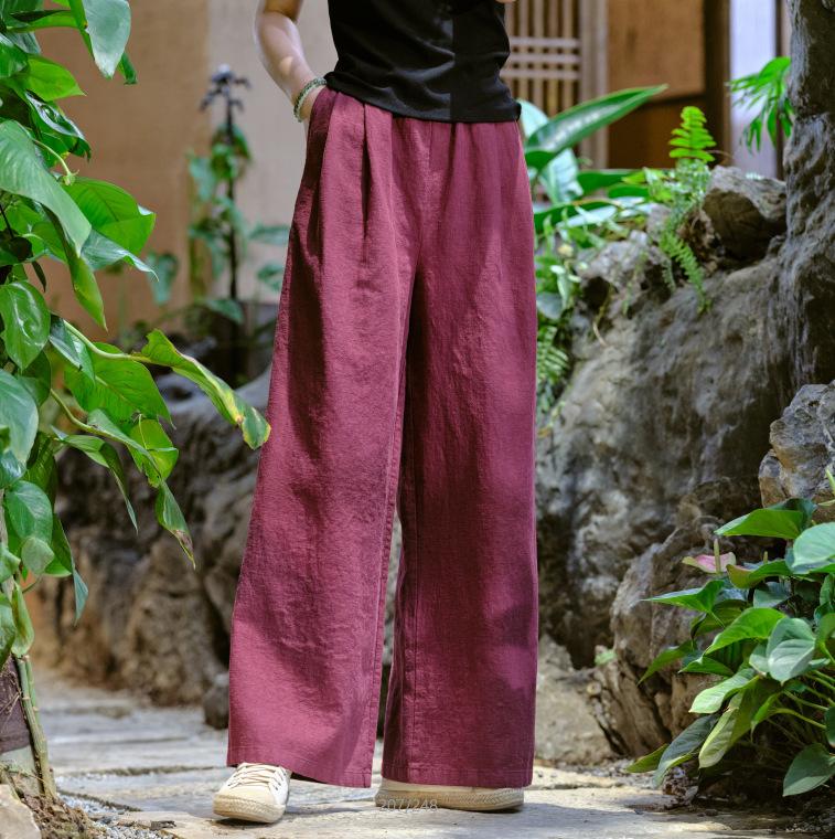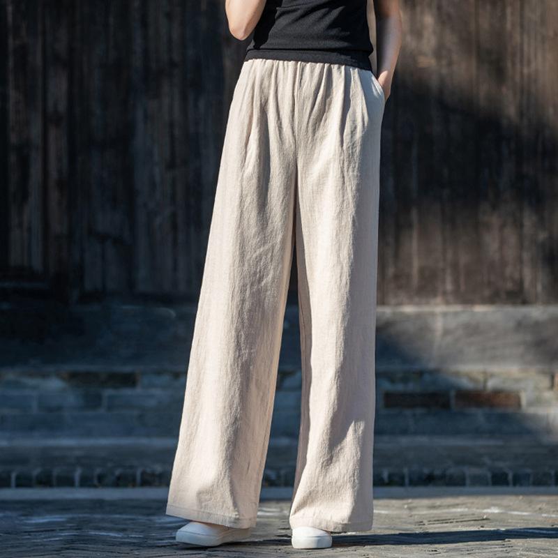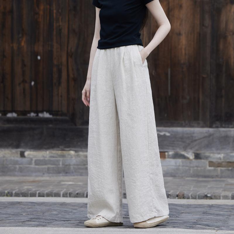 Pantalones de Pierna Ancha de Algodón y Lino 2025 Nuevo Otoño Pantalones Casuales Artísticos Pantalones Grandes de Pierna Ancha Lino Versátil Pantalones Largos de Mujer