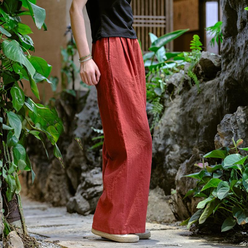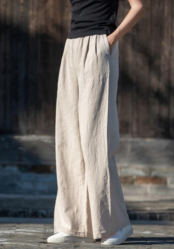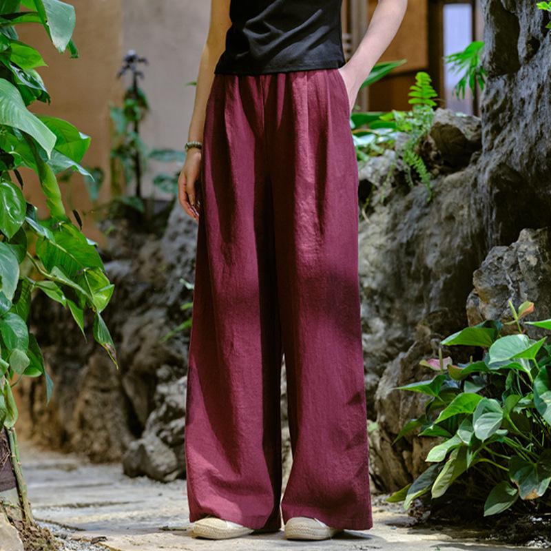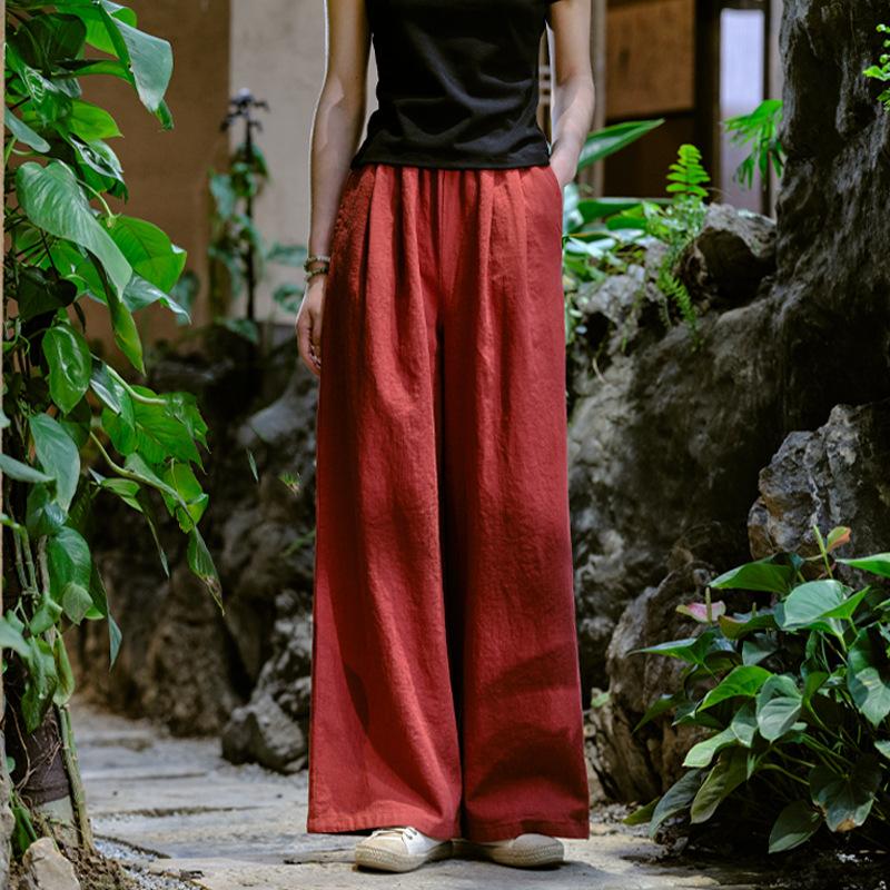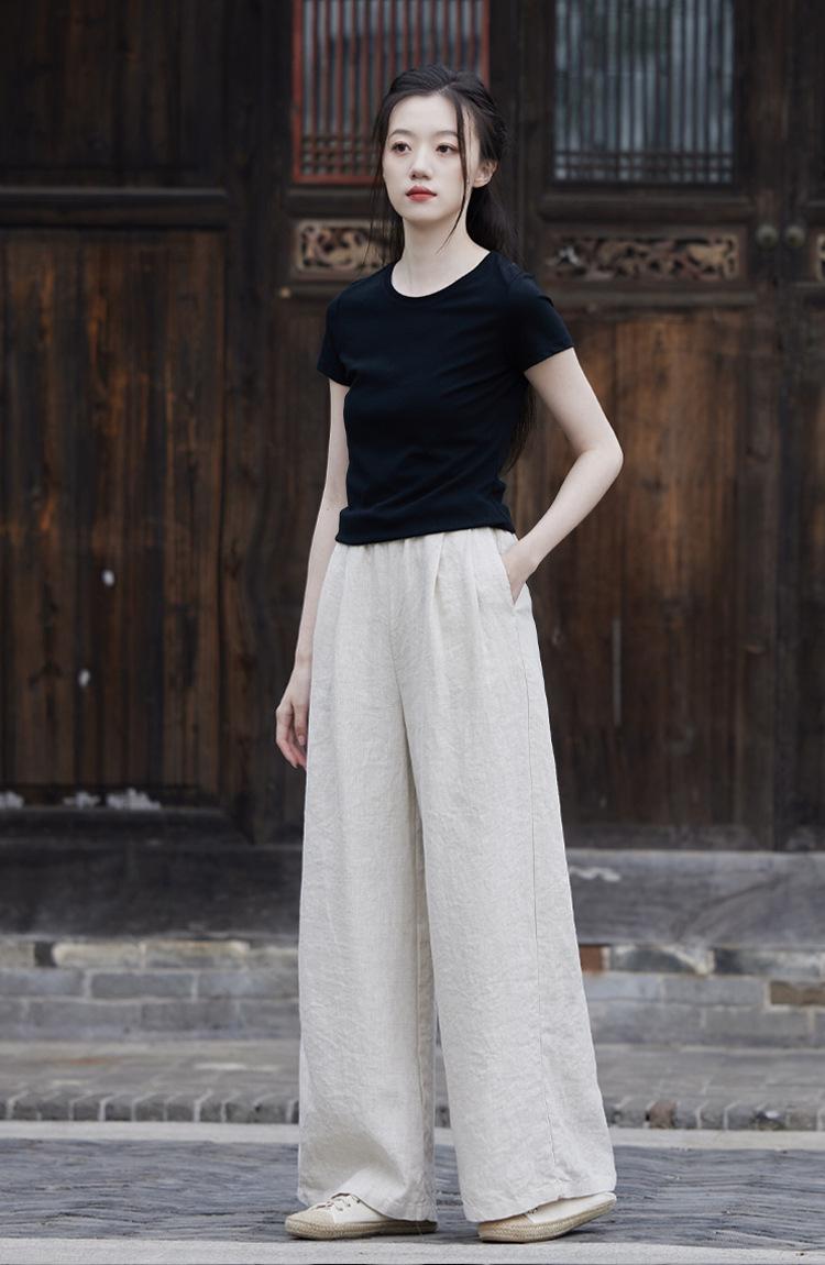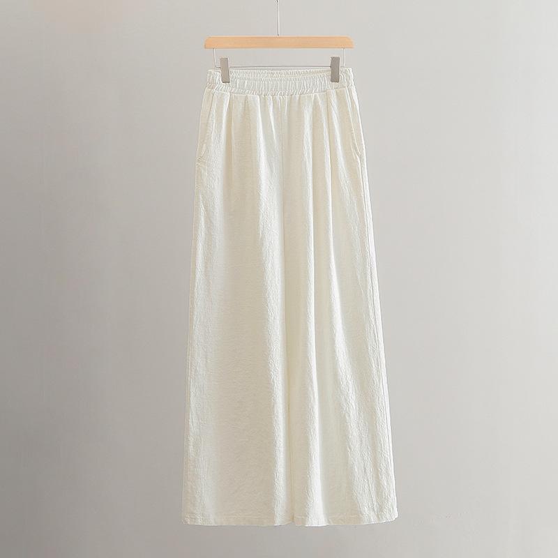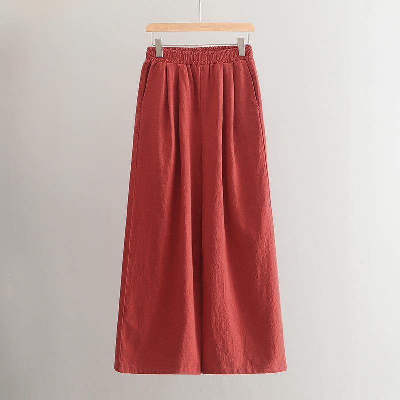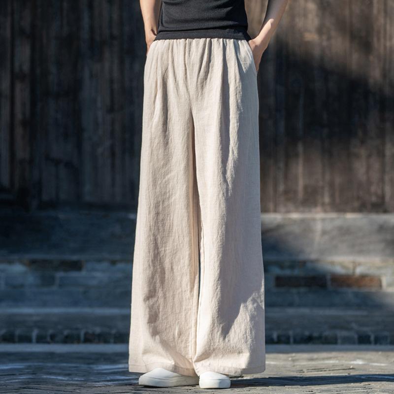 Pantalones de Pierna Ancha de Algodón y Lino 2025 Nuevo Otoño Pantalones Casuales Artísticos Pantalones Grandes de Pierna Ancha Lino Versátil Pantalones Largos de Mujer