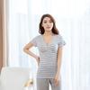 Top de lactancia para mujer de fibra reciclada modal, mangas cortas cruzadas, limpio y pulcro, se puede usar como capa base o como ropa de casa con bajo en A, se puede usar durante el embarazo, la almohadilla para el pecho del sujetador es removible,