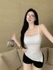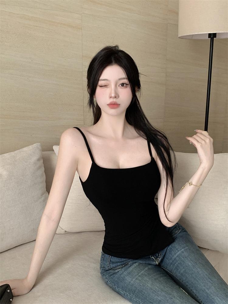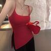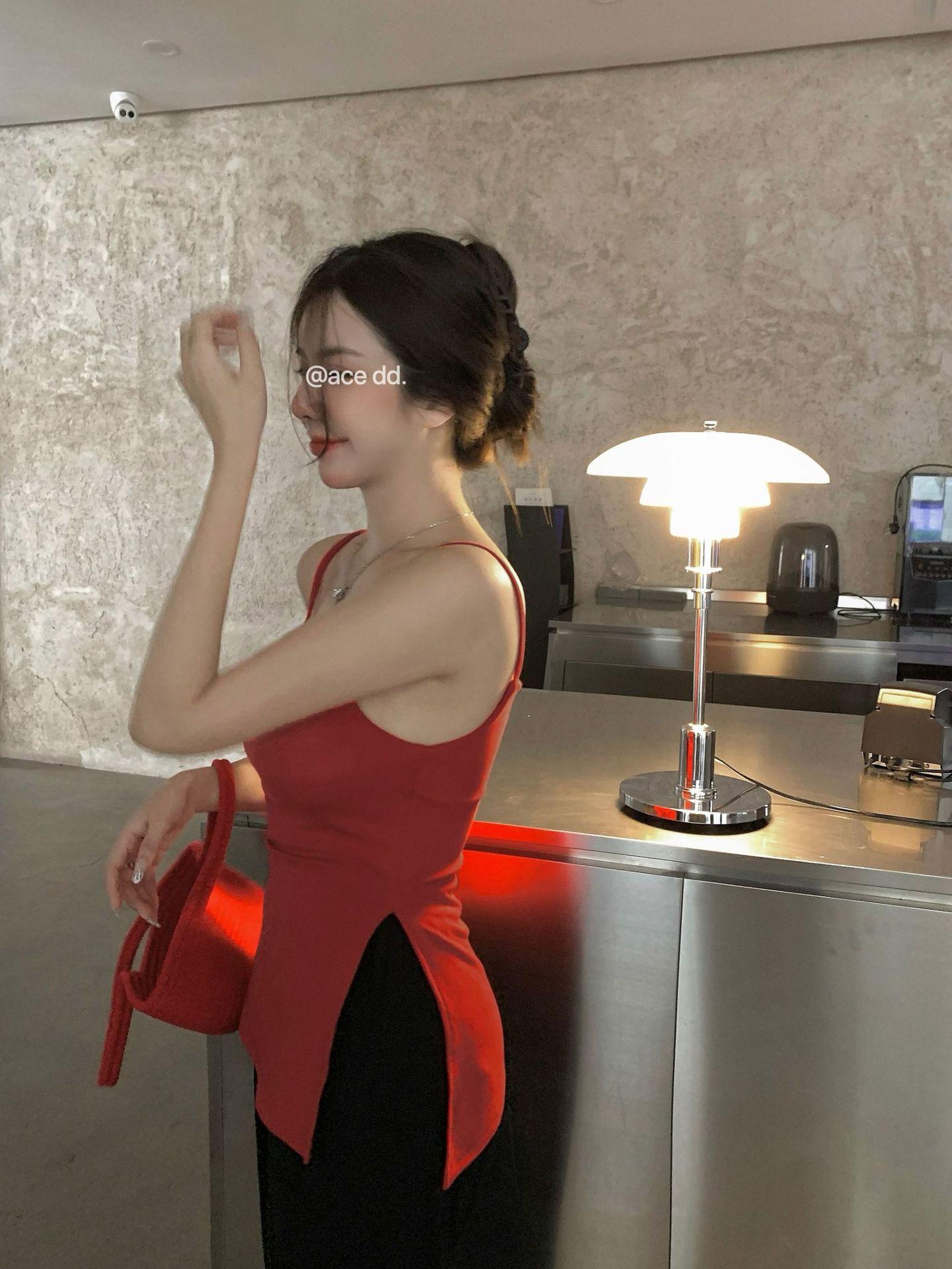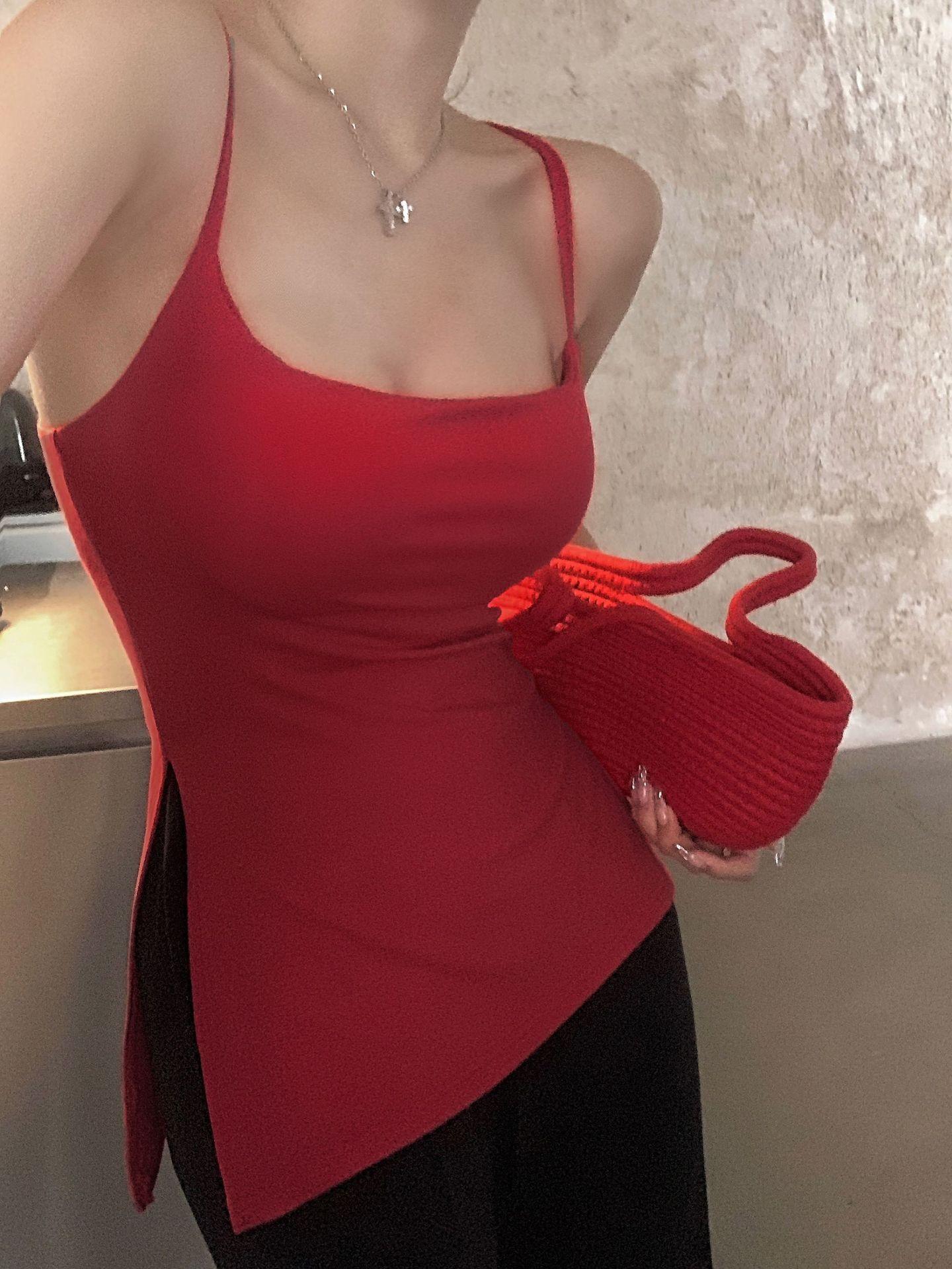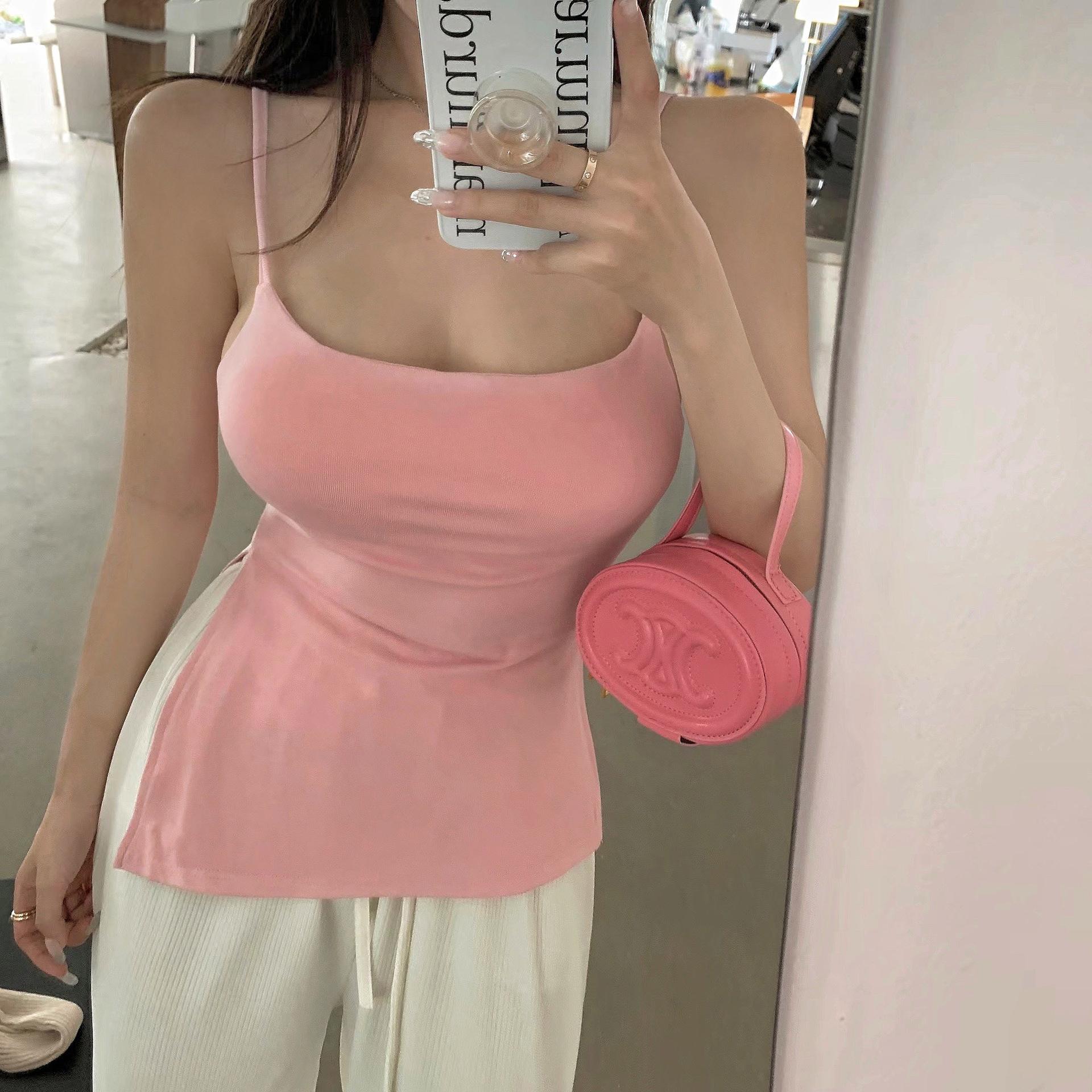 Sexy Spice Girl con Almohadilla en el Pecho Camisola Interior Ropa Exterior Verano Color Sólido Abertura Lateral Puro Deseo Ajustado Top Base